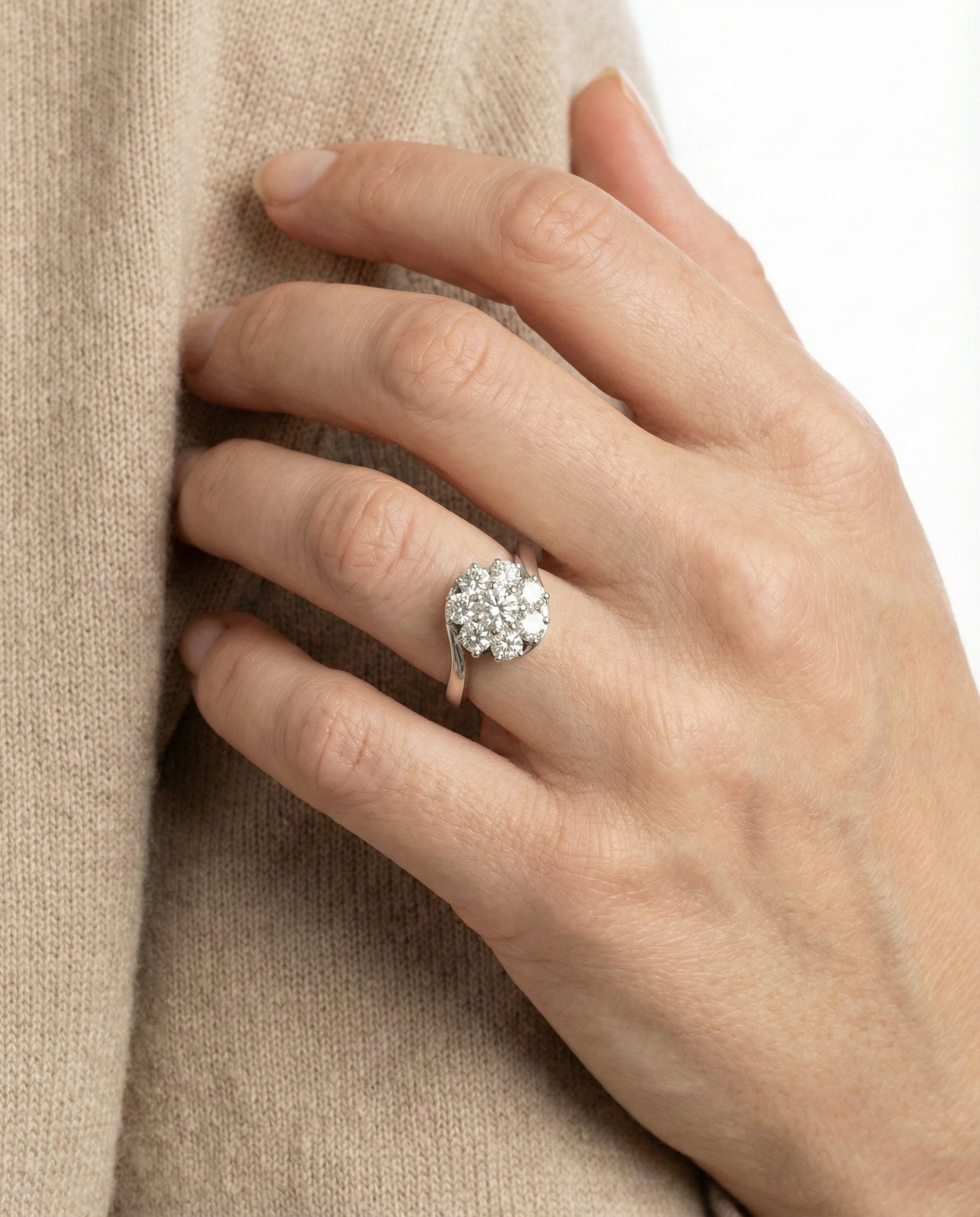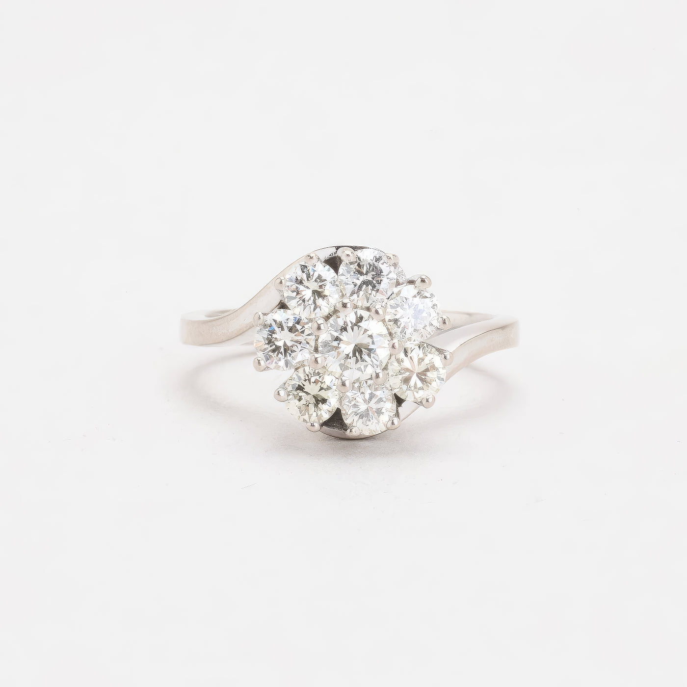 Illusionring i 14K hvidguld med diamanter (0.98 ct), Str. 50, 4.6 g