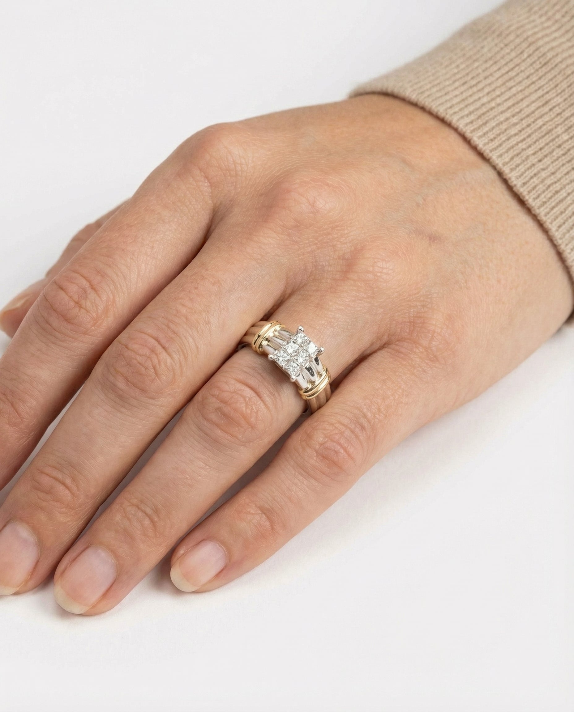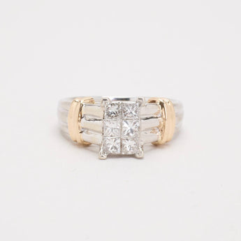Illusion ring i 14K guld og hvidguld med flere diamanter (0.90 ct), Str. 54, 6.6 g