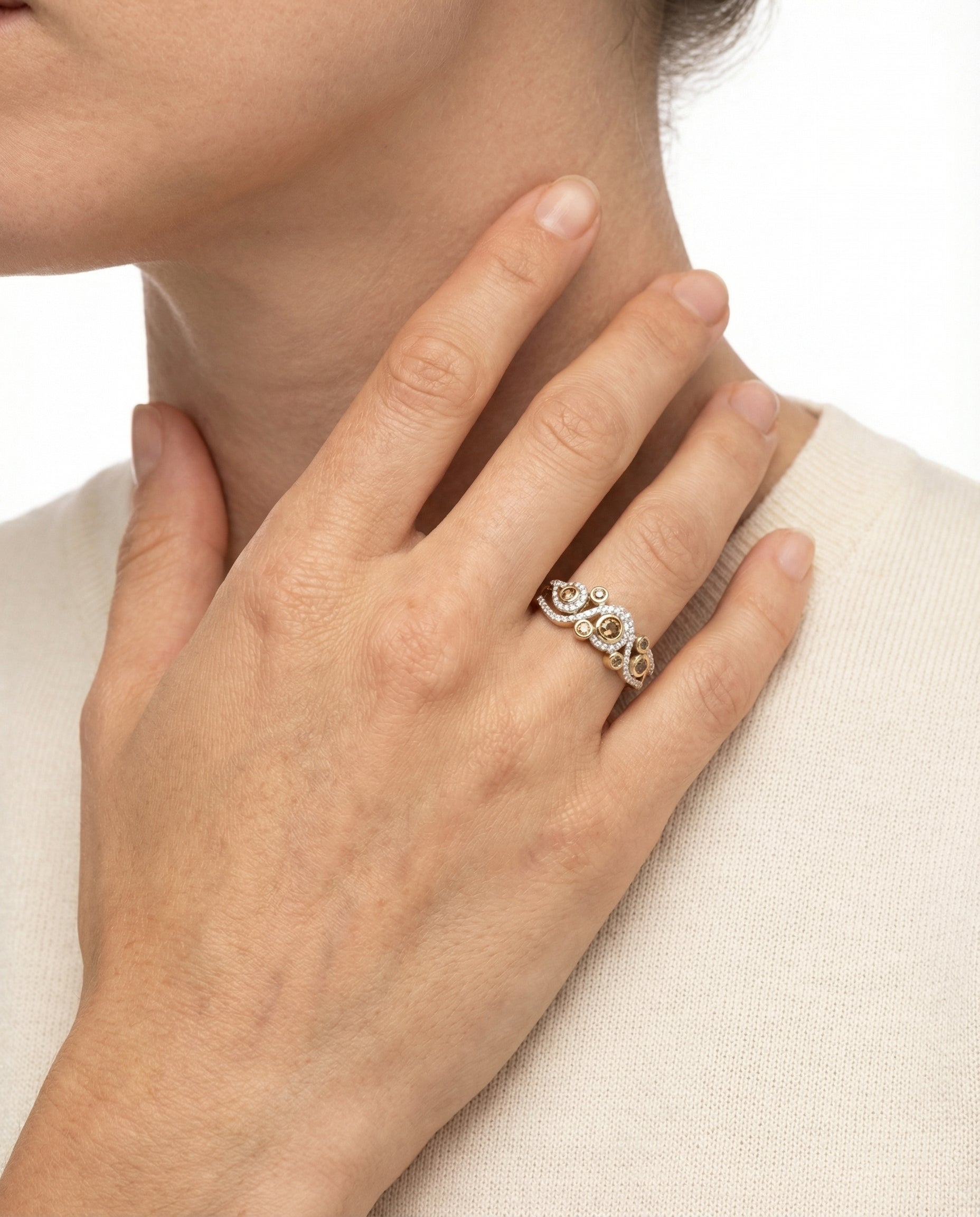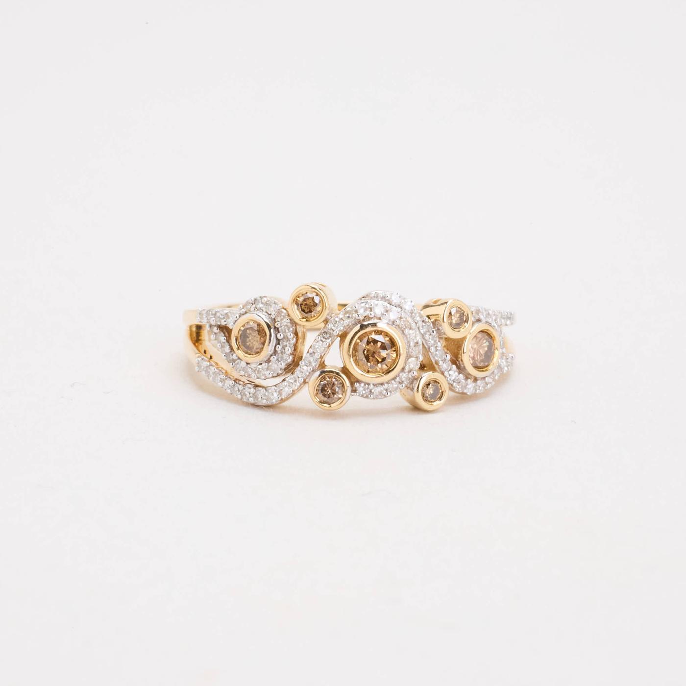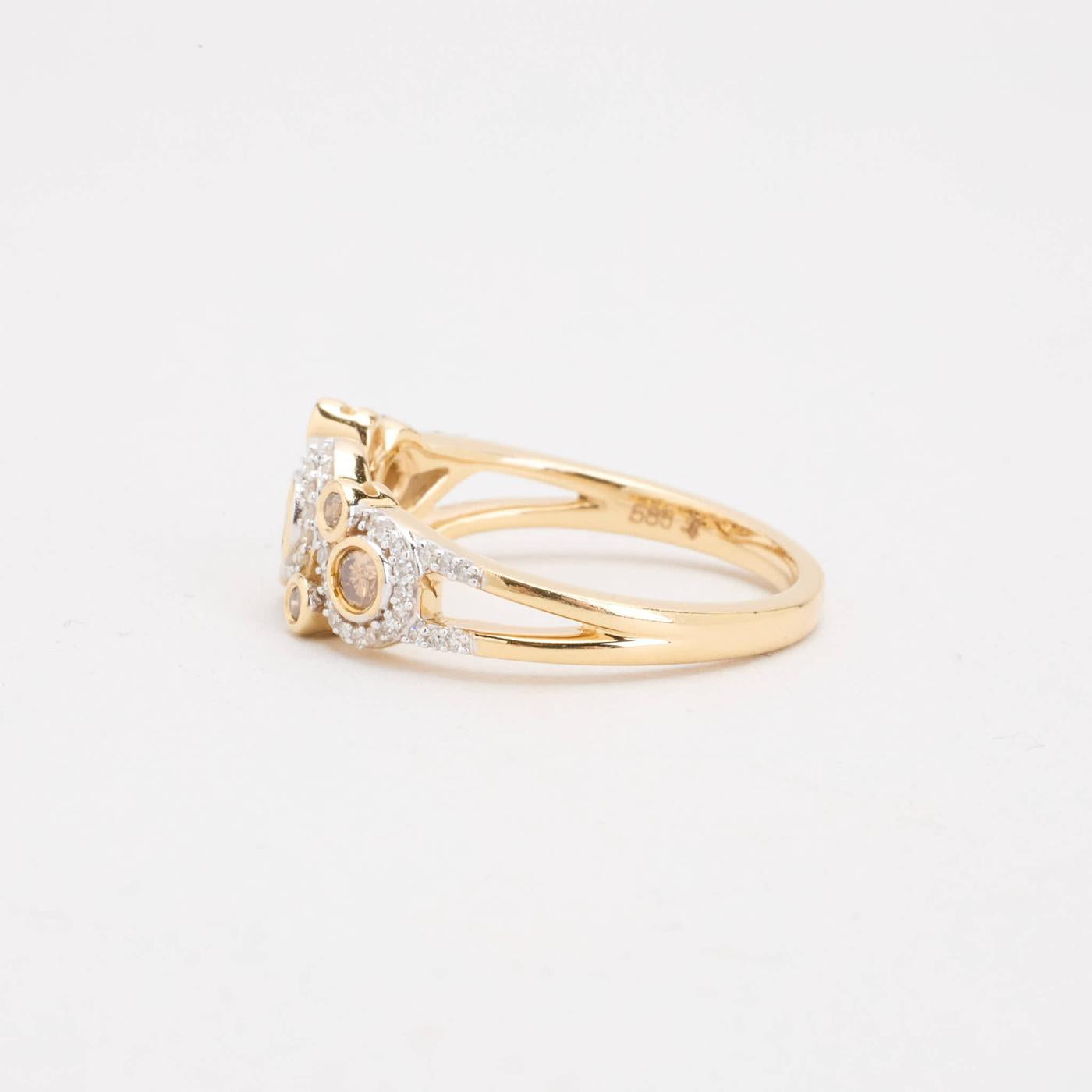 Clusterring med diamant (0.75 ct) i 14K guld og hvidguld str. 57, 4.41 g