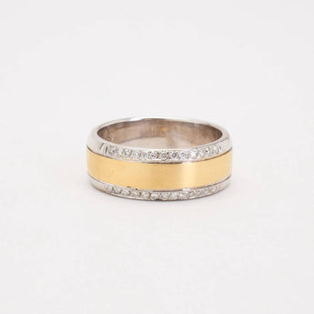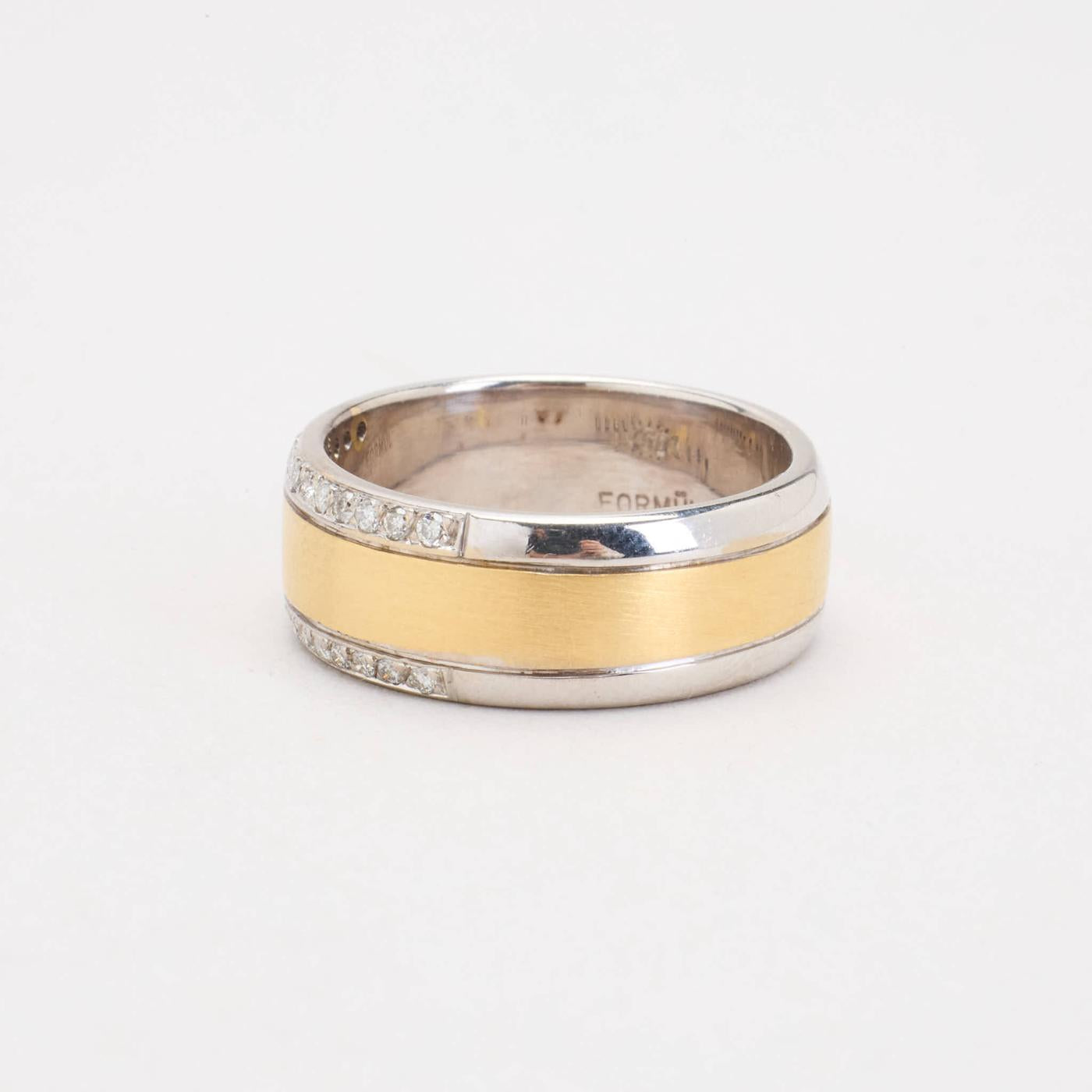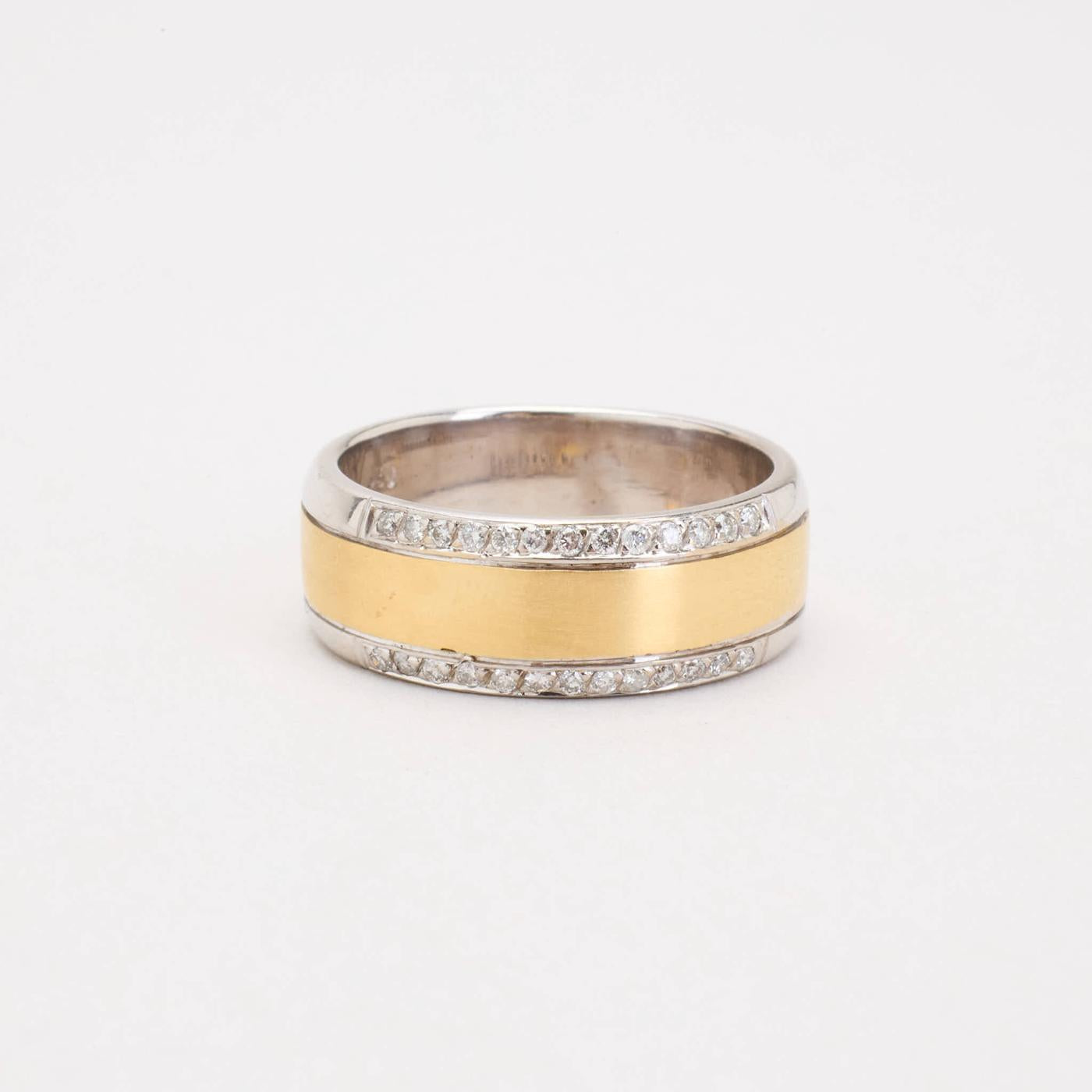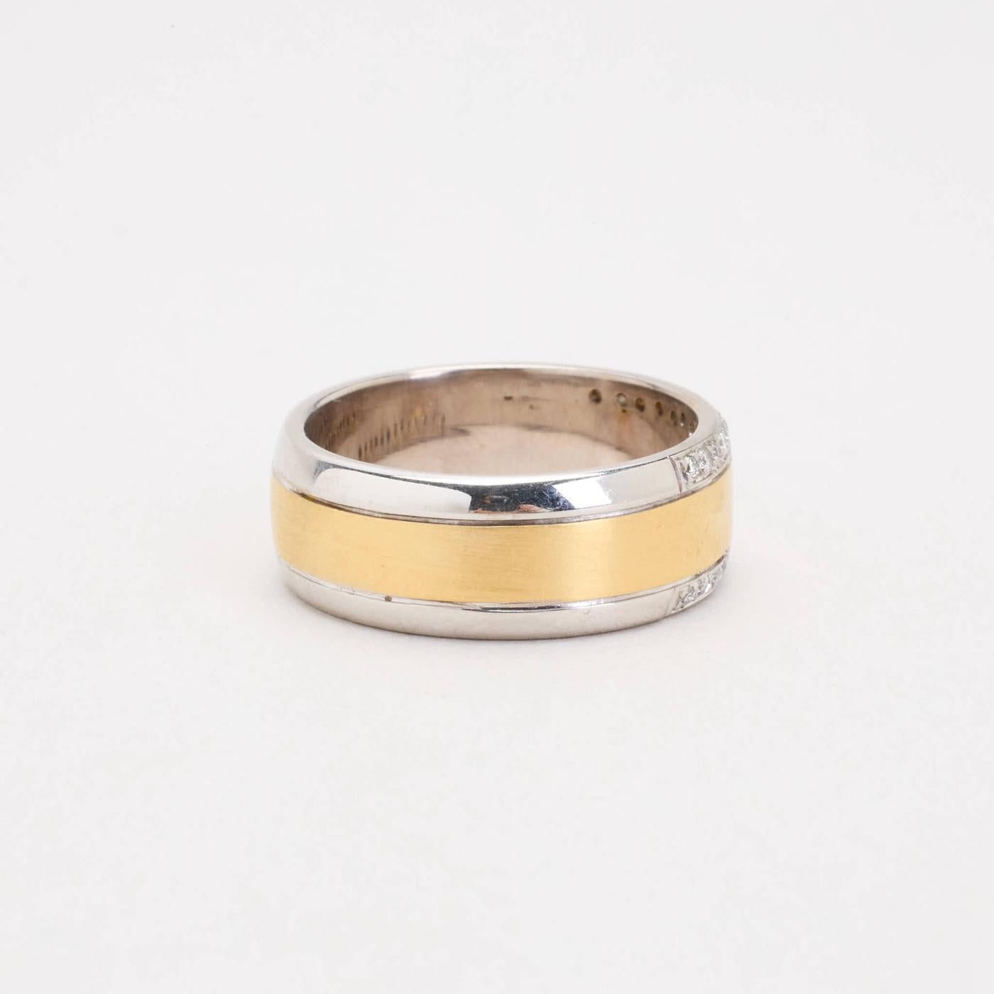 Ring med diamant (0.14 ct) i 18K guld og hvidguld str. 60, 13.36 g