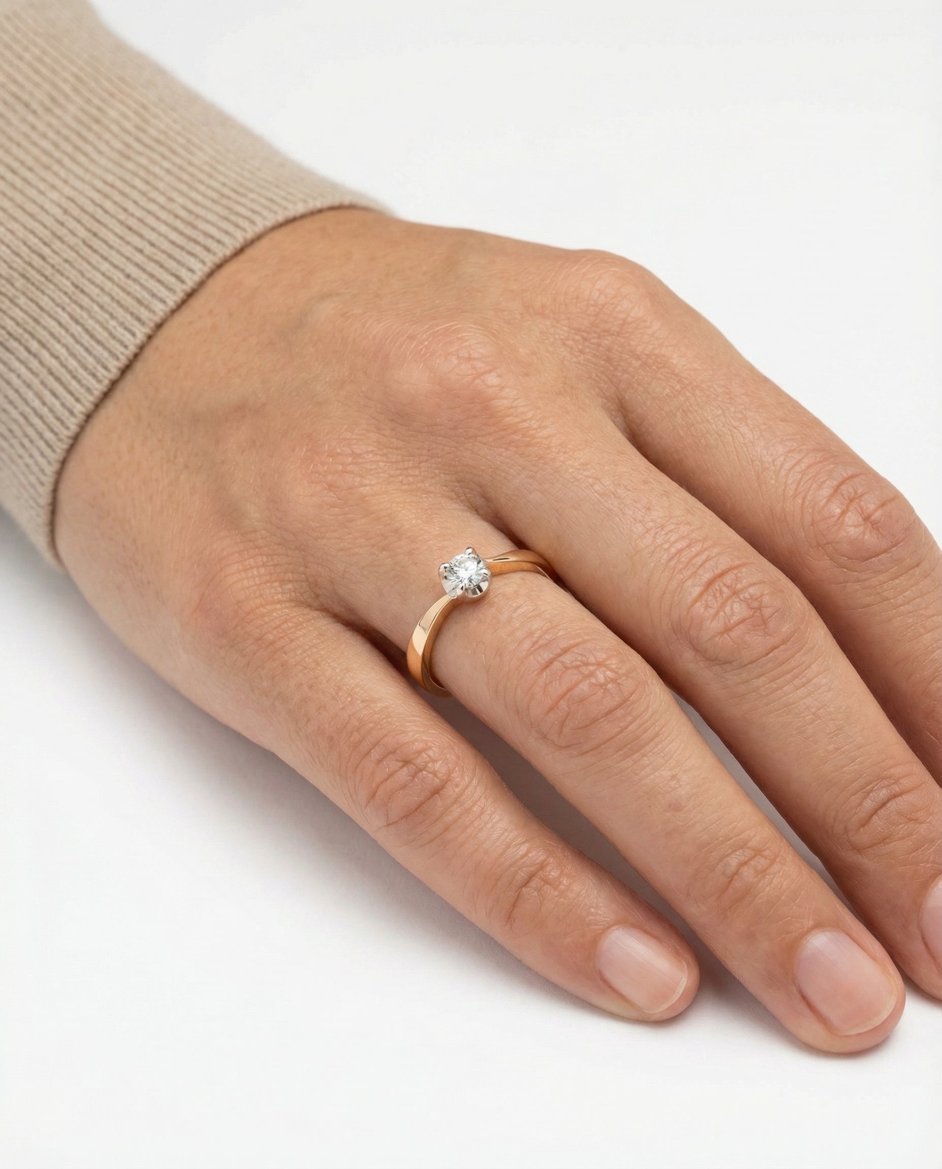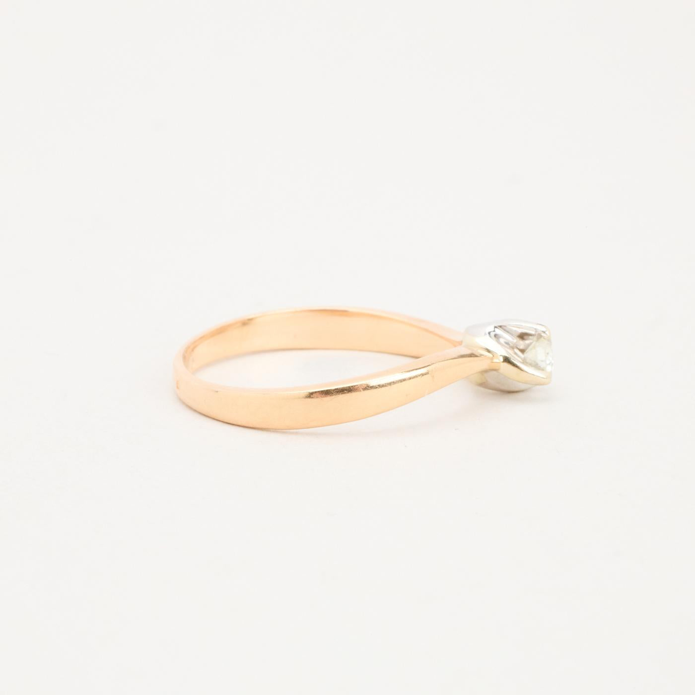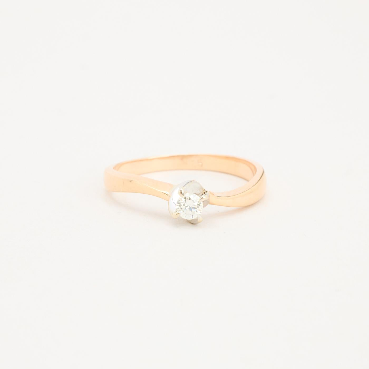 Solitairering med diamant (0.13 ct) i 14K guld og hvidguld str. 56, 2.52 g