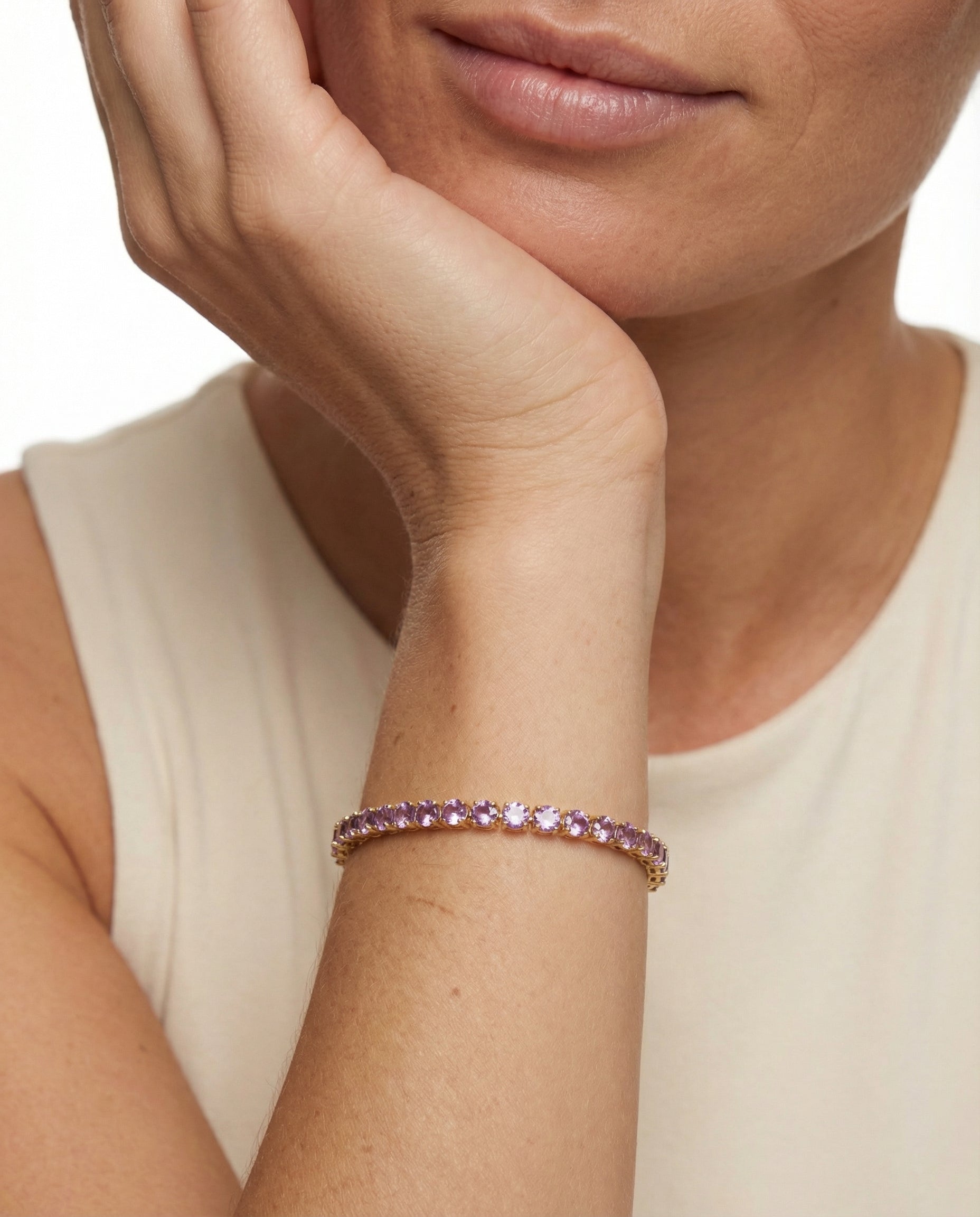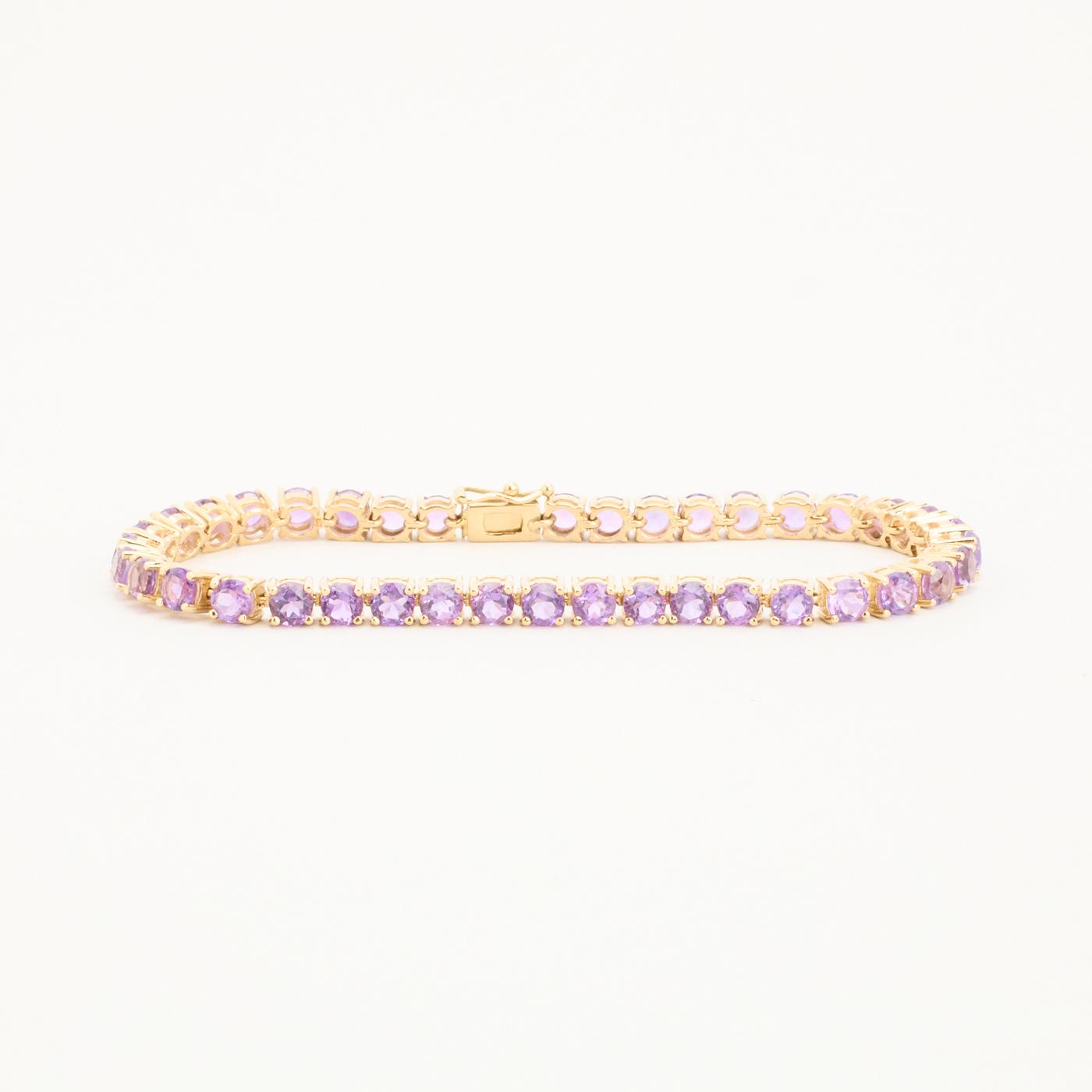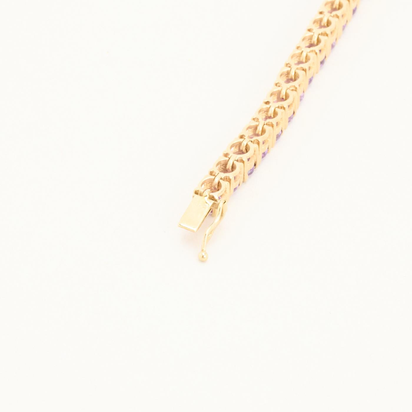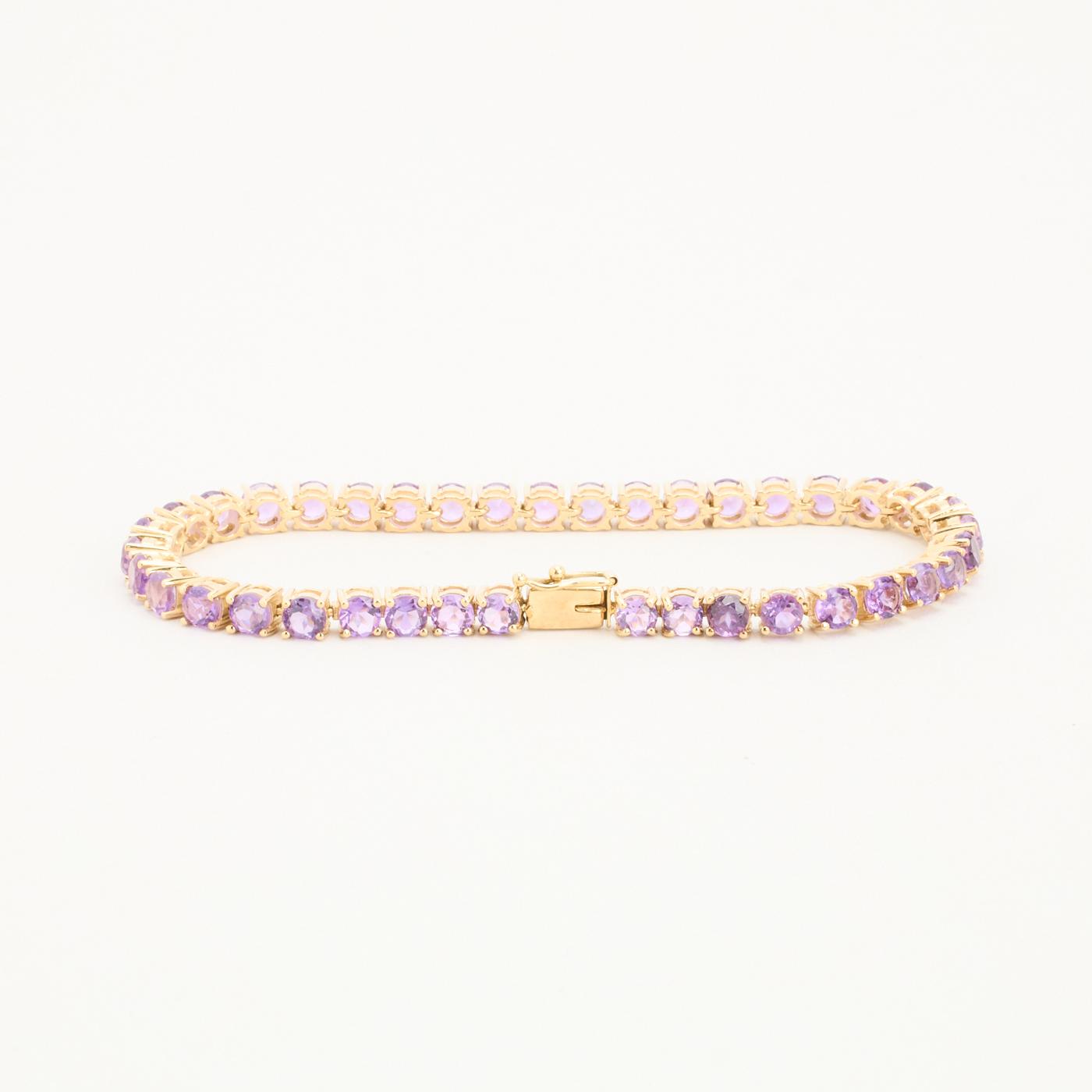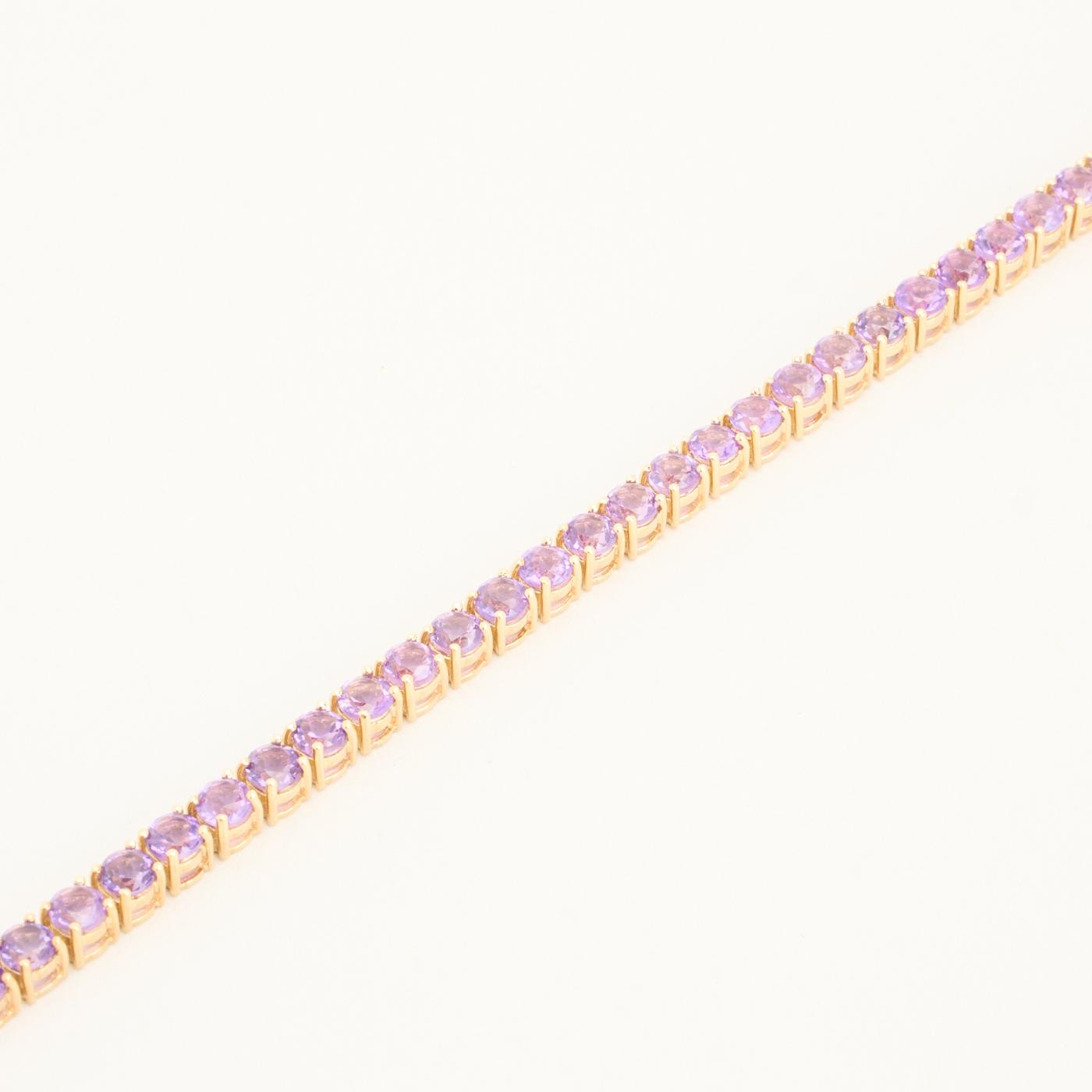 Tennisarmbånd i 9K guld med flere lilla sten, 19 cm, 13.45 g