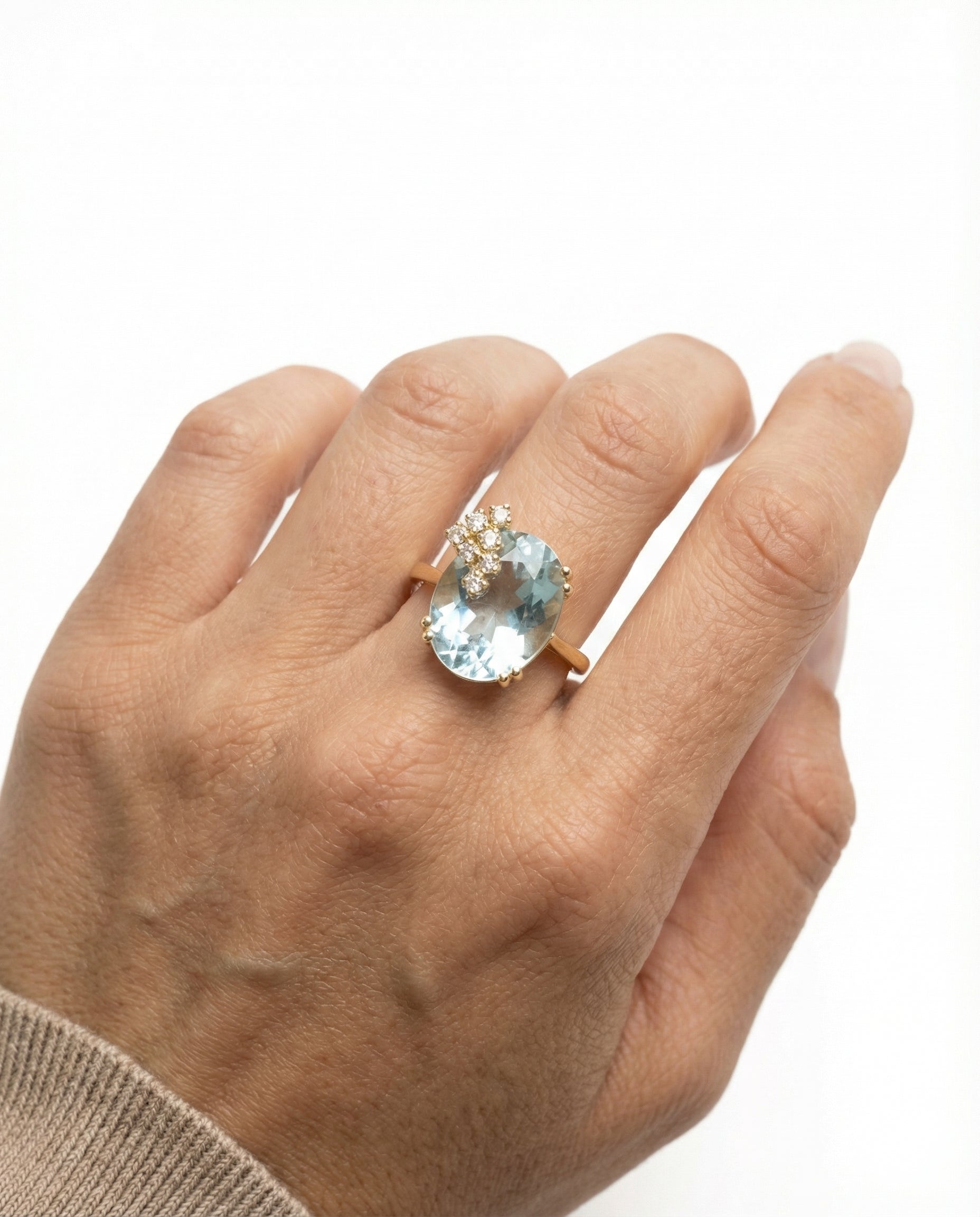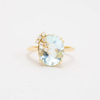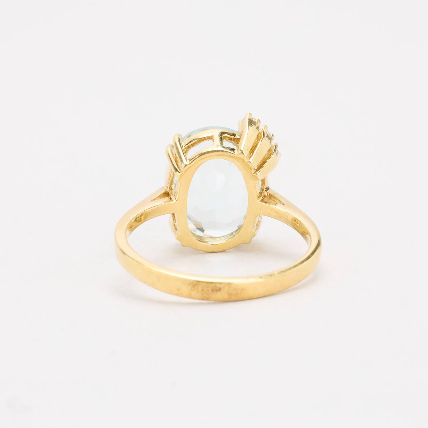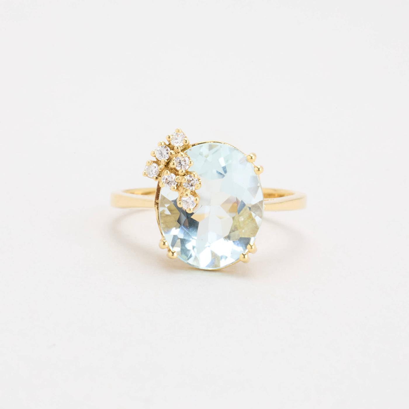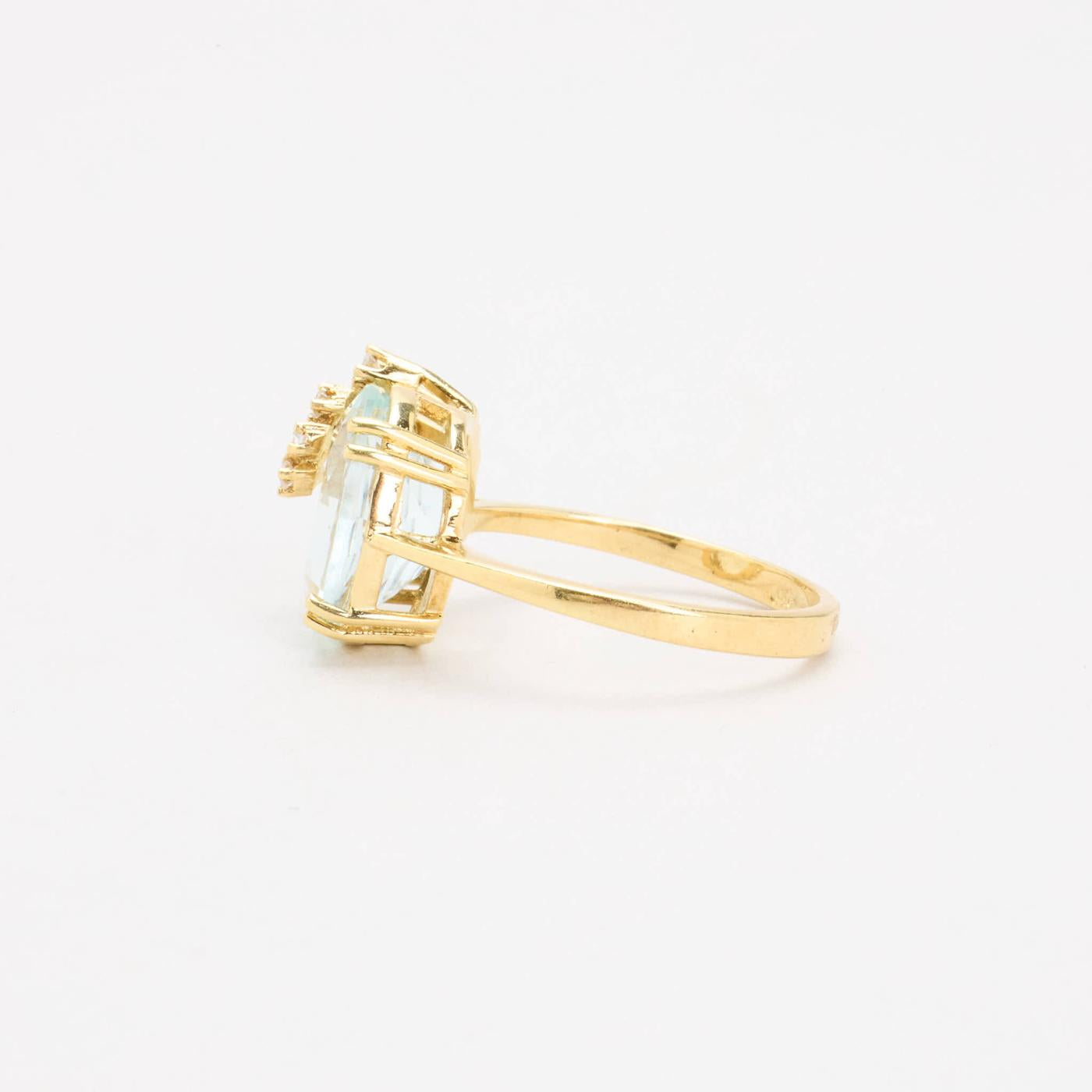 Cocktail ring med diamant (0.11 ct) i 14K guld med en akvamarin, str. 55, 4.03 g
