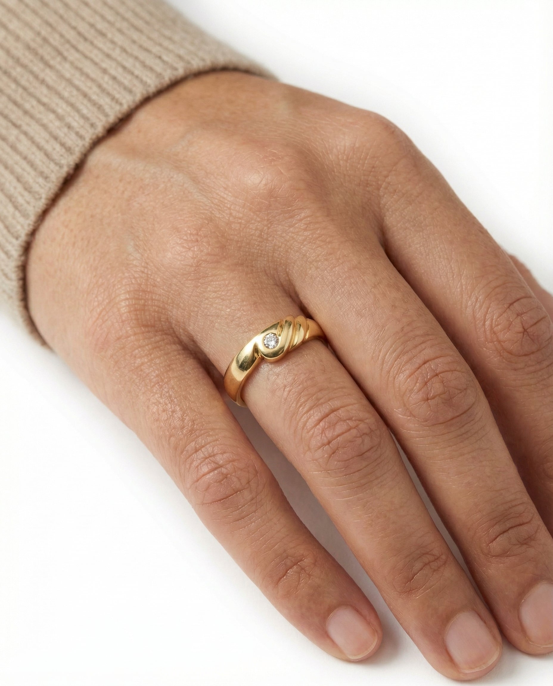 Crossoverring med diamant (0.04 ct) i 14K guld str. 55, 2.02 g