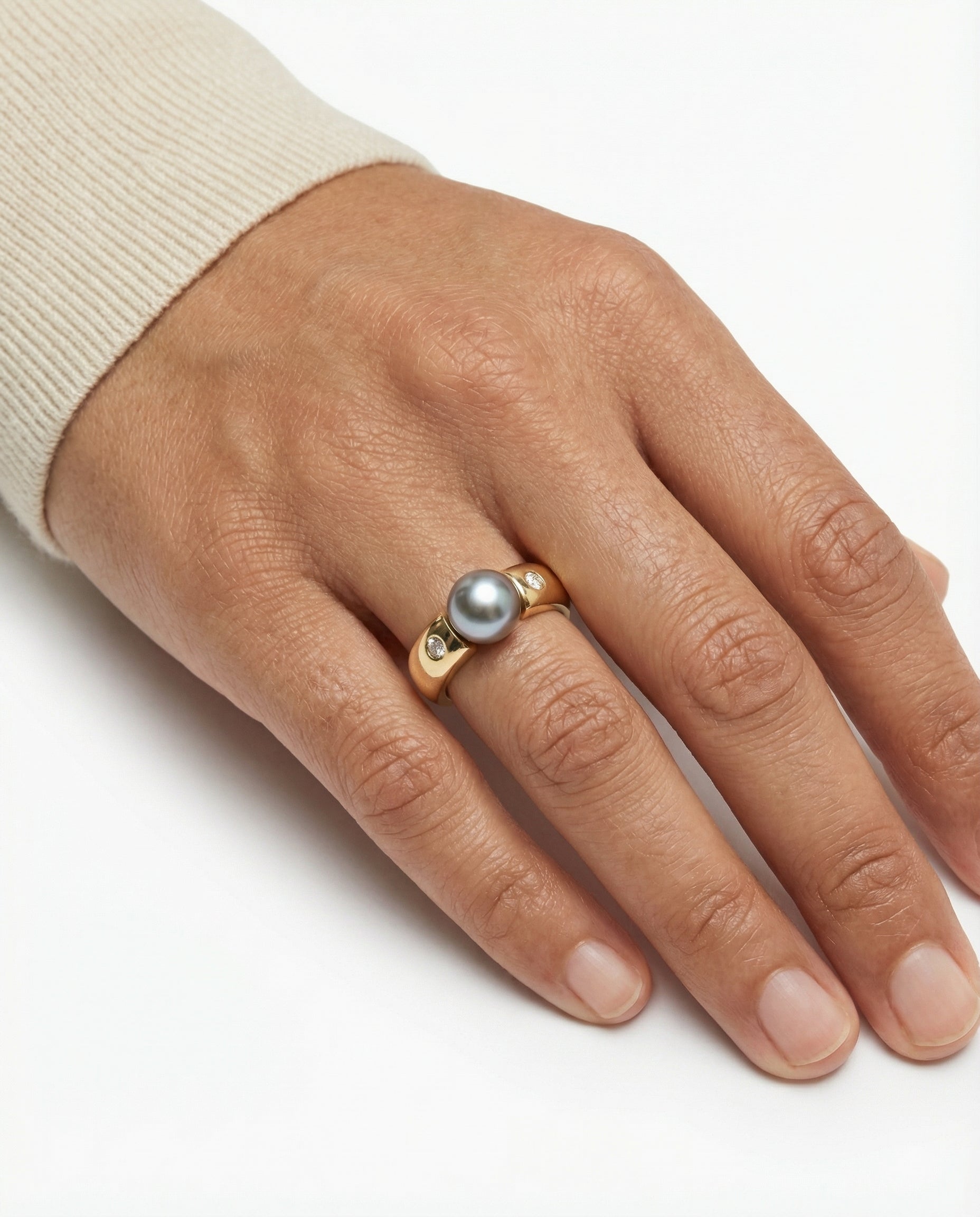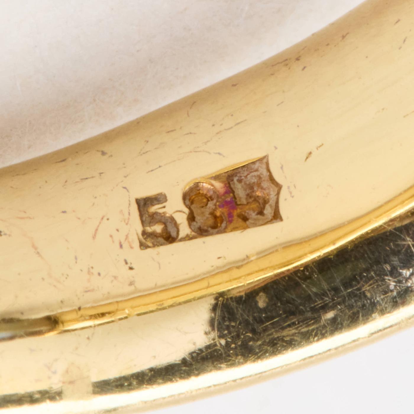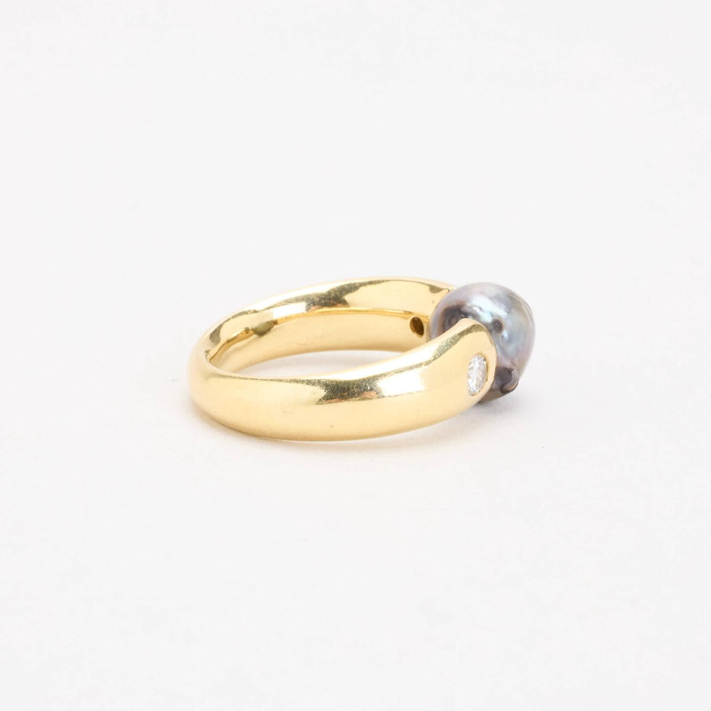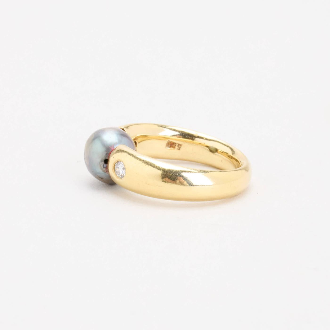 Perlering med diamant (0.17 ct) i 14K guld med en perle, str. 54, 9.04 g