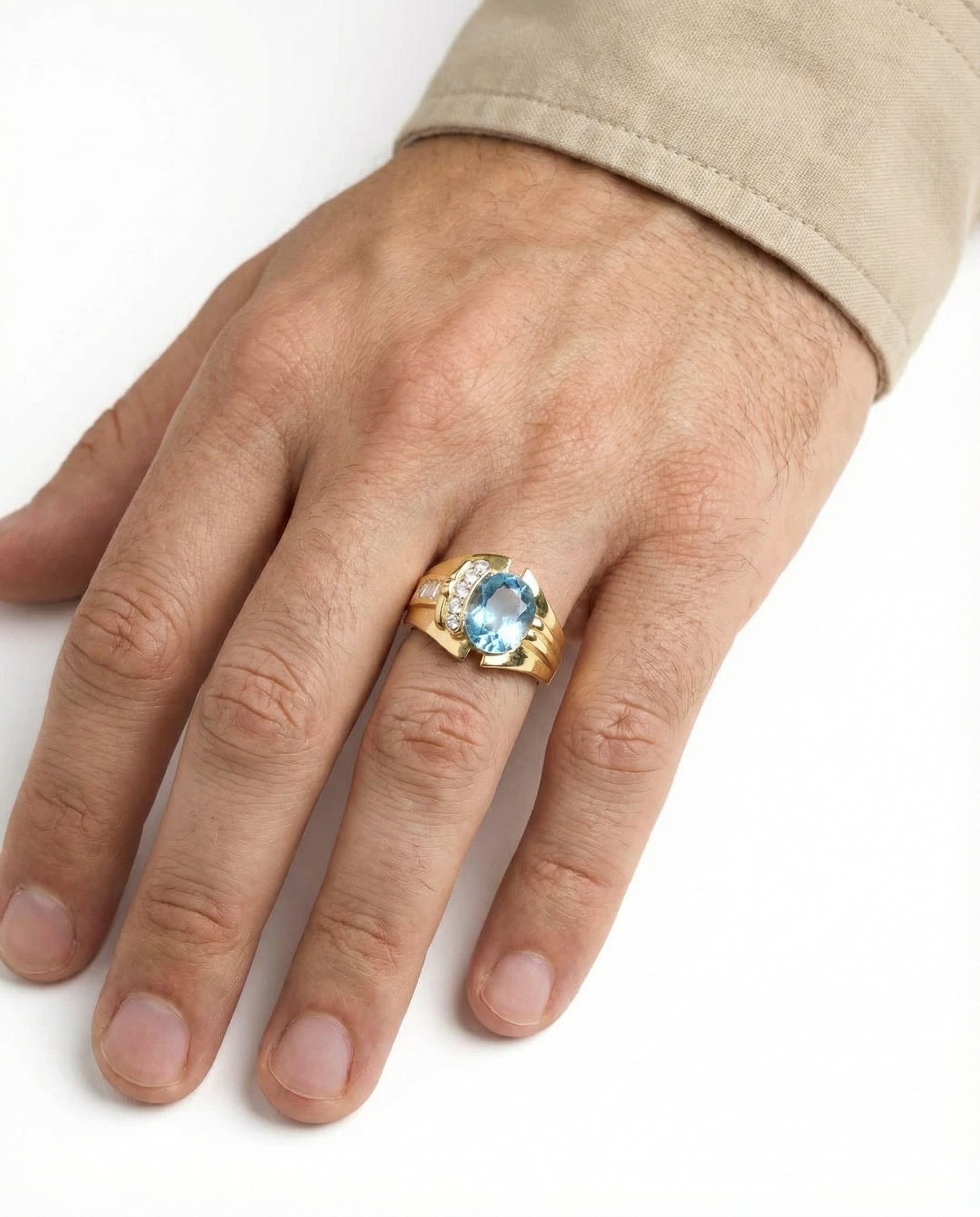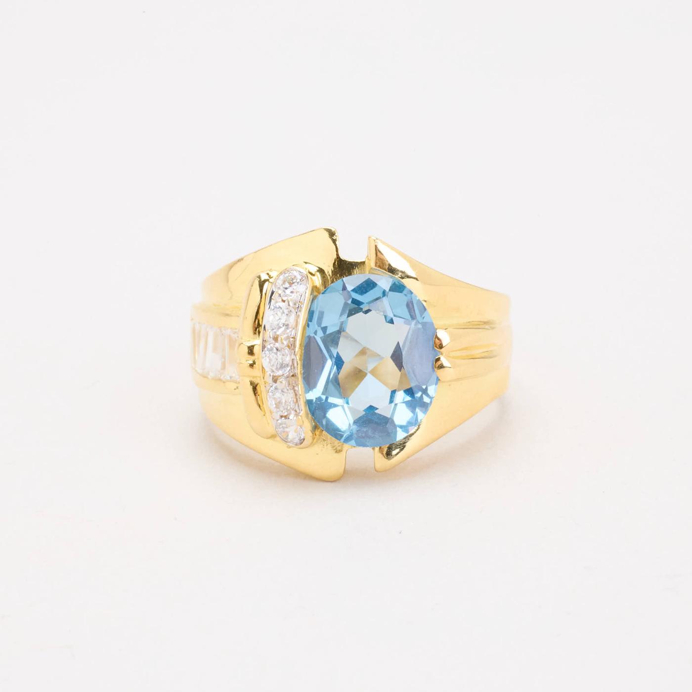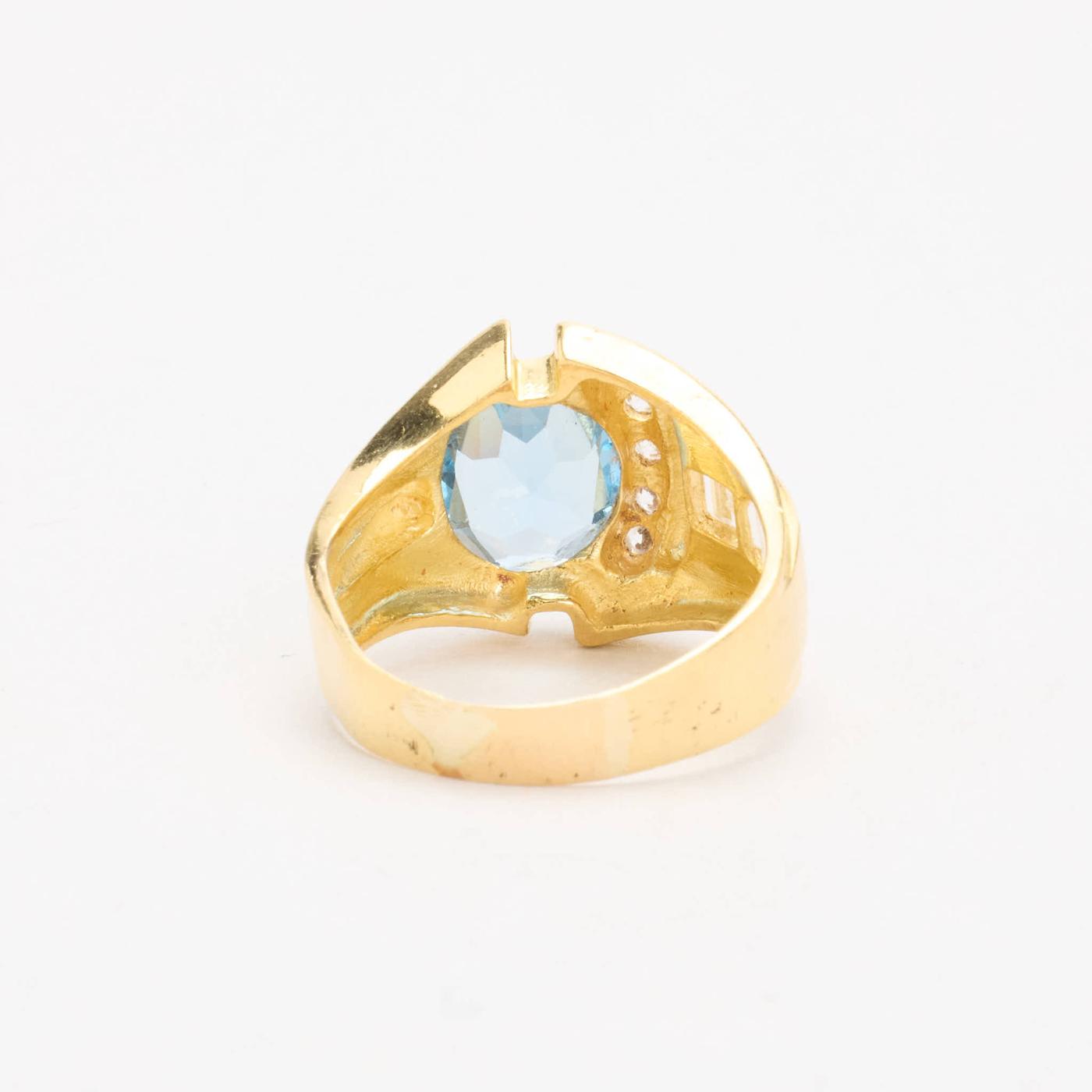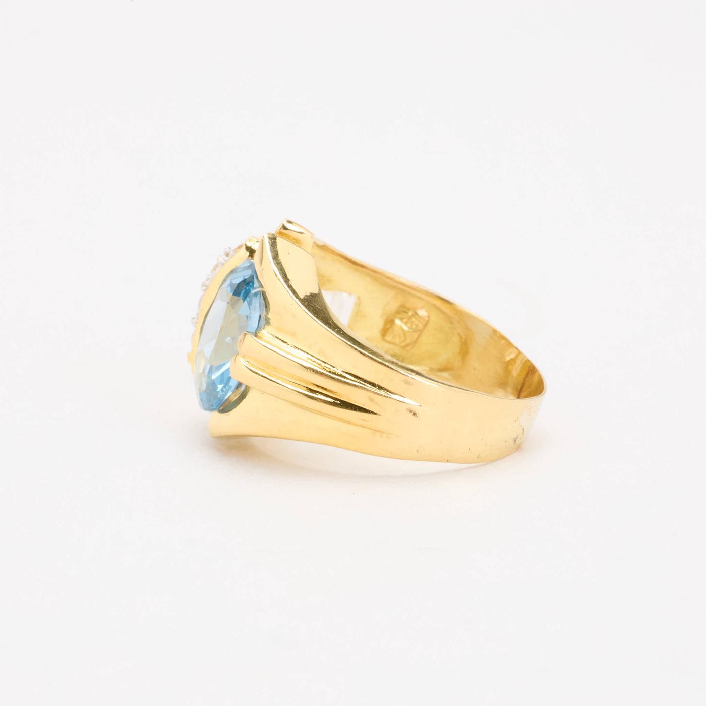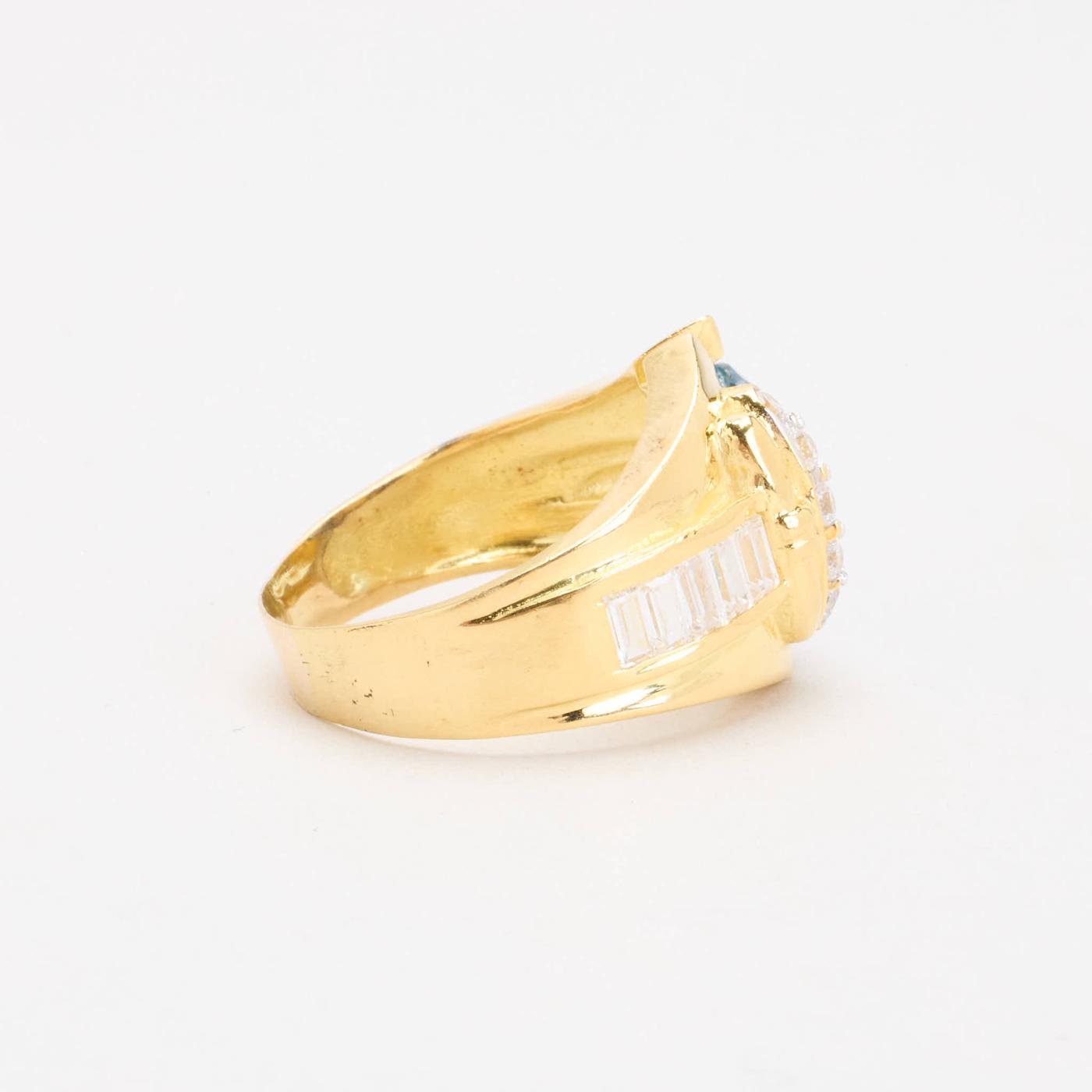 Signetring med diamant i 18K guld med flerfarvede sten str. 63, 9.99 g