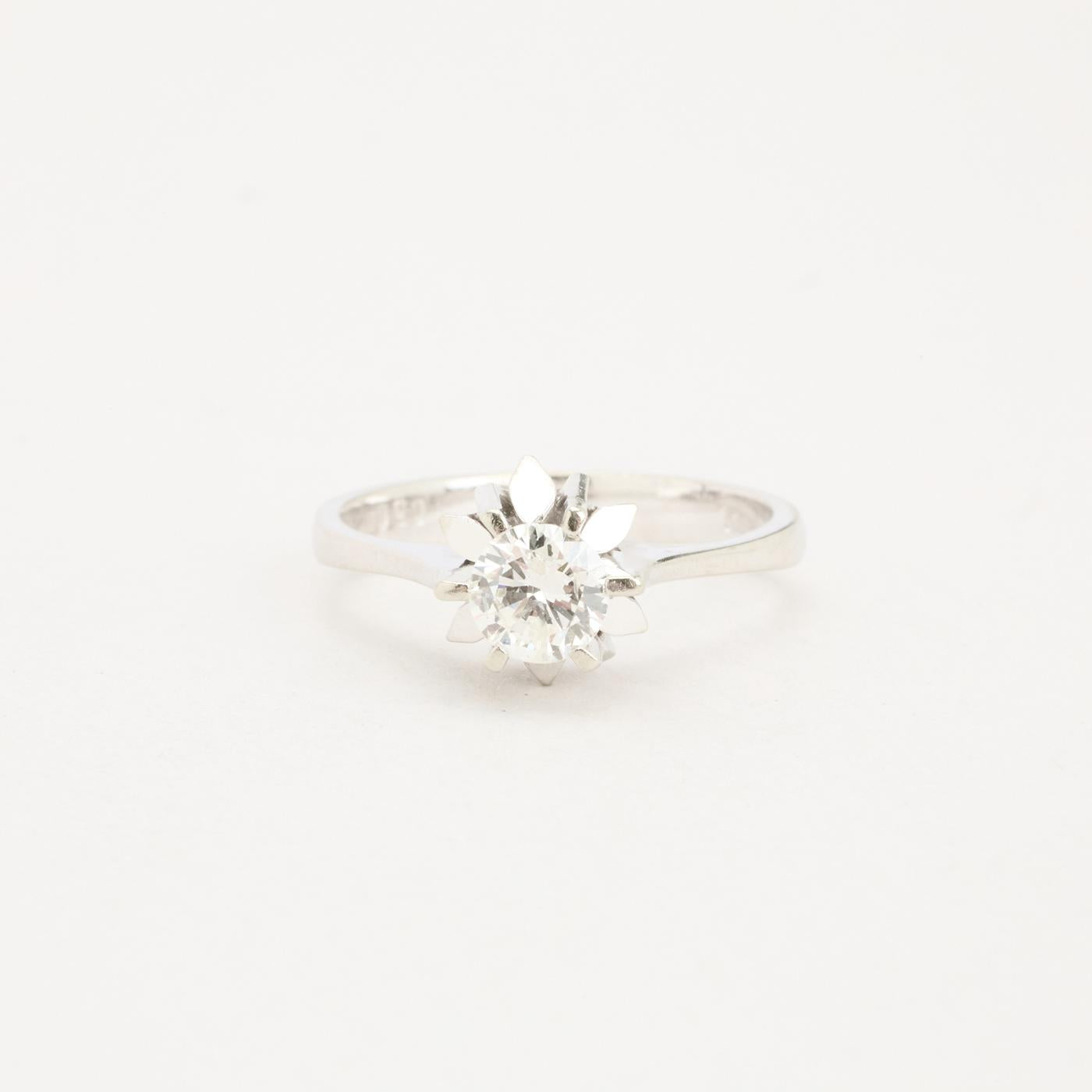 Solitairering med diamant (0.59 ct) i 14K hvidguld str. 54, 3.49 g