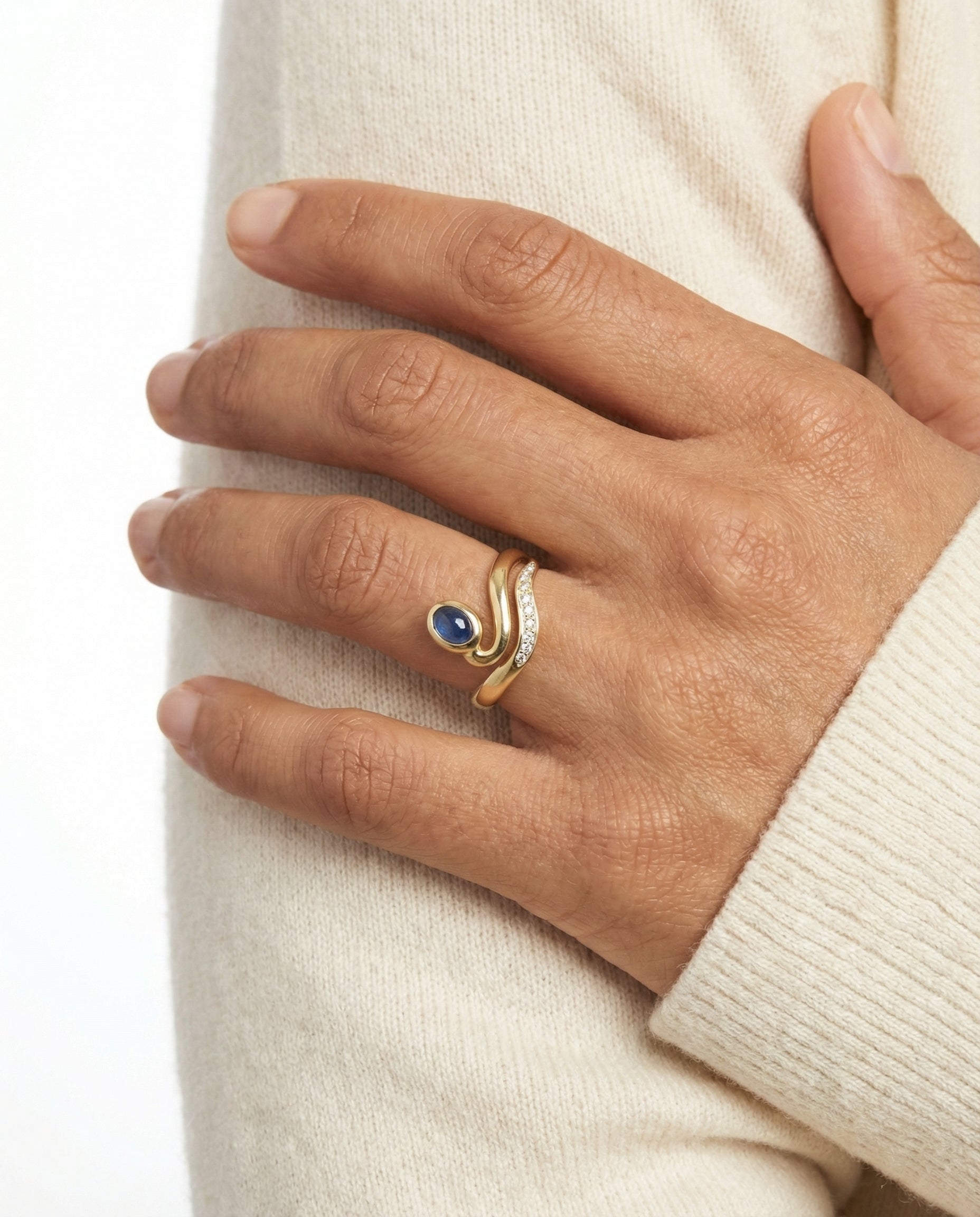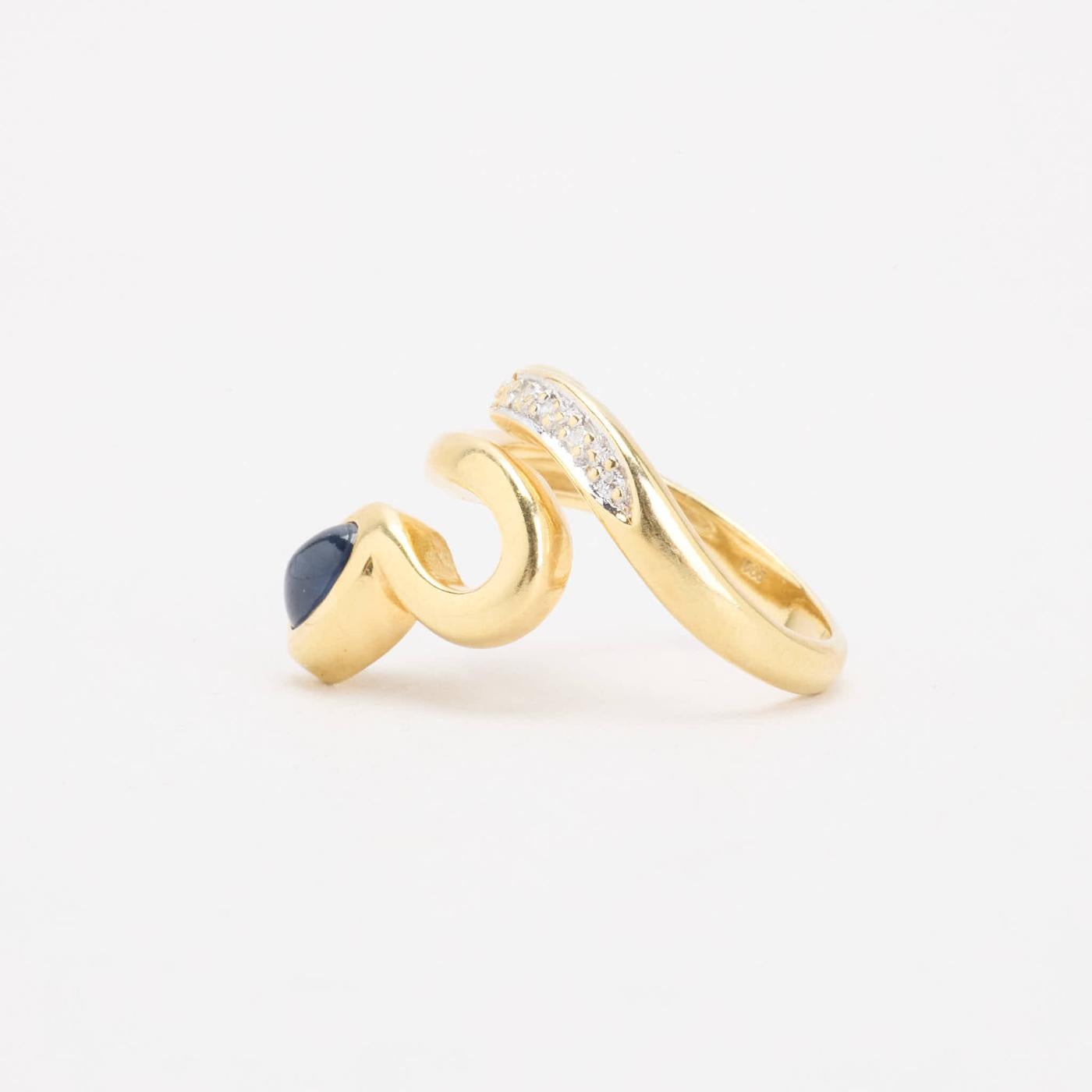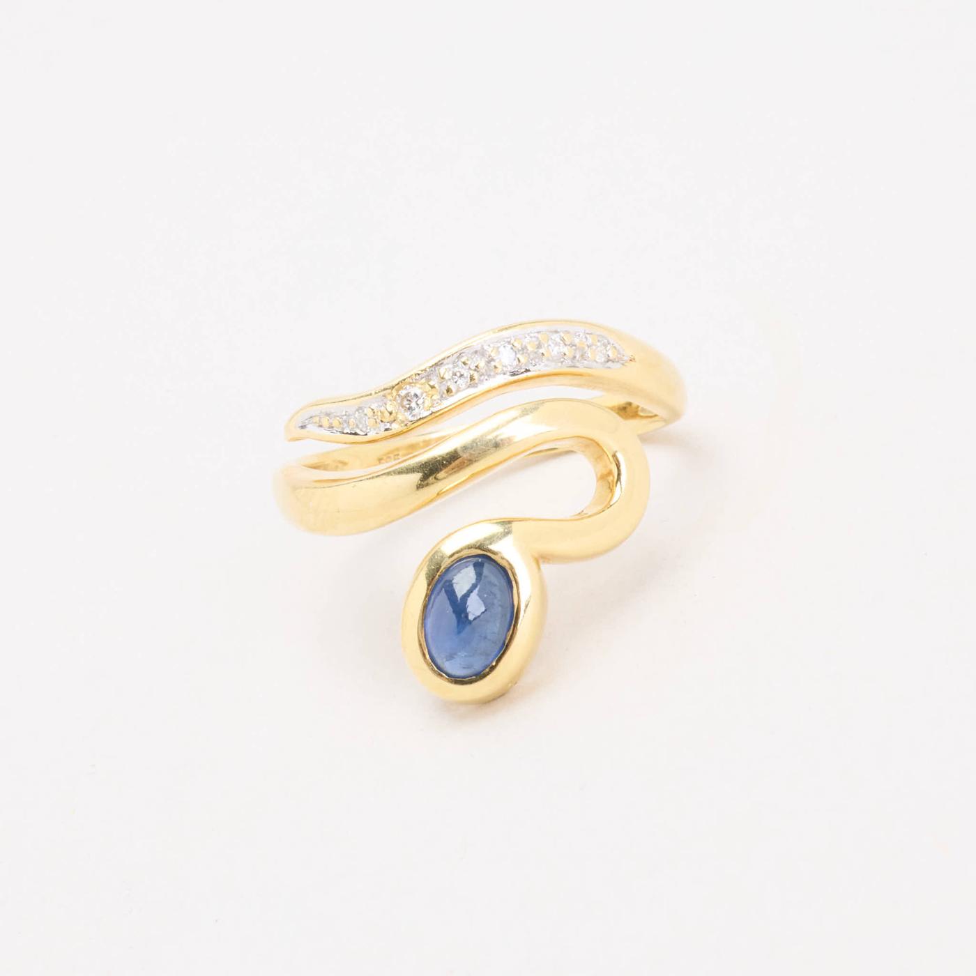 Slangering i 14K guld med diamanter (0.03 ct) og én safir, Str. 47