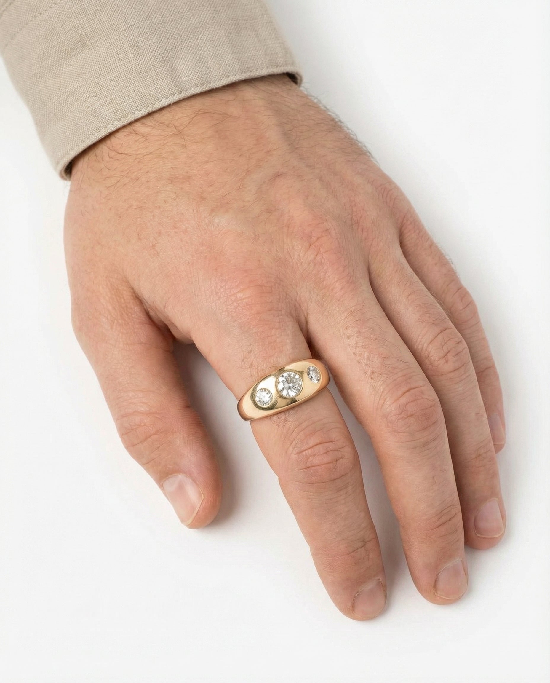 Gypsyring i 14K guld med en diamant (1.02 ct), Str. 67