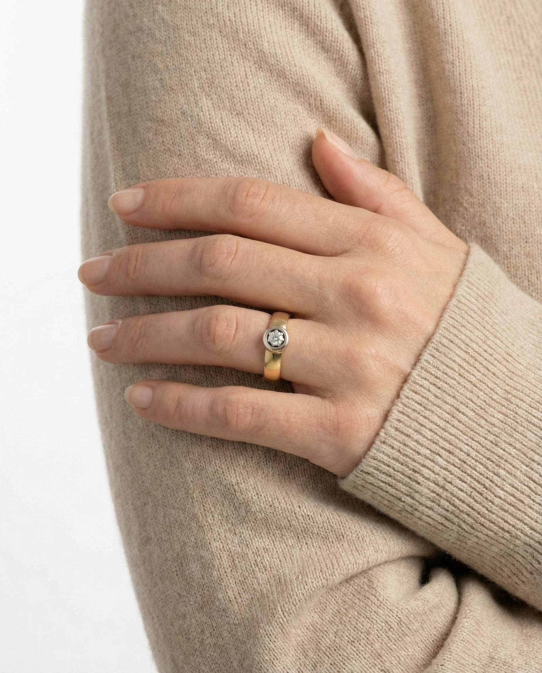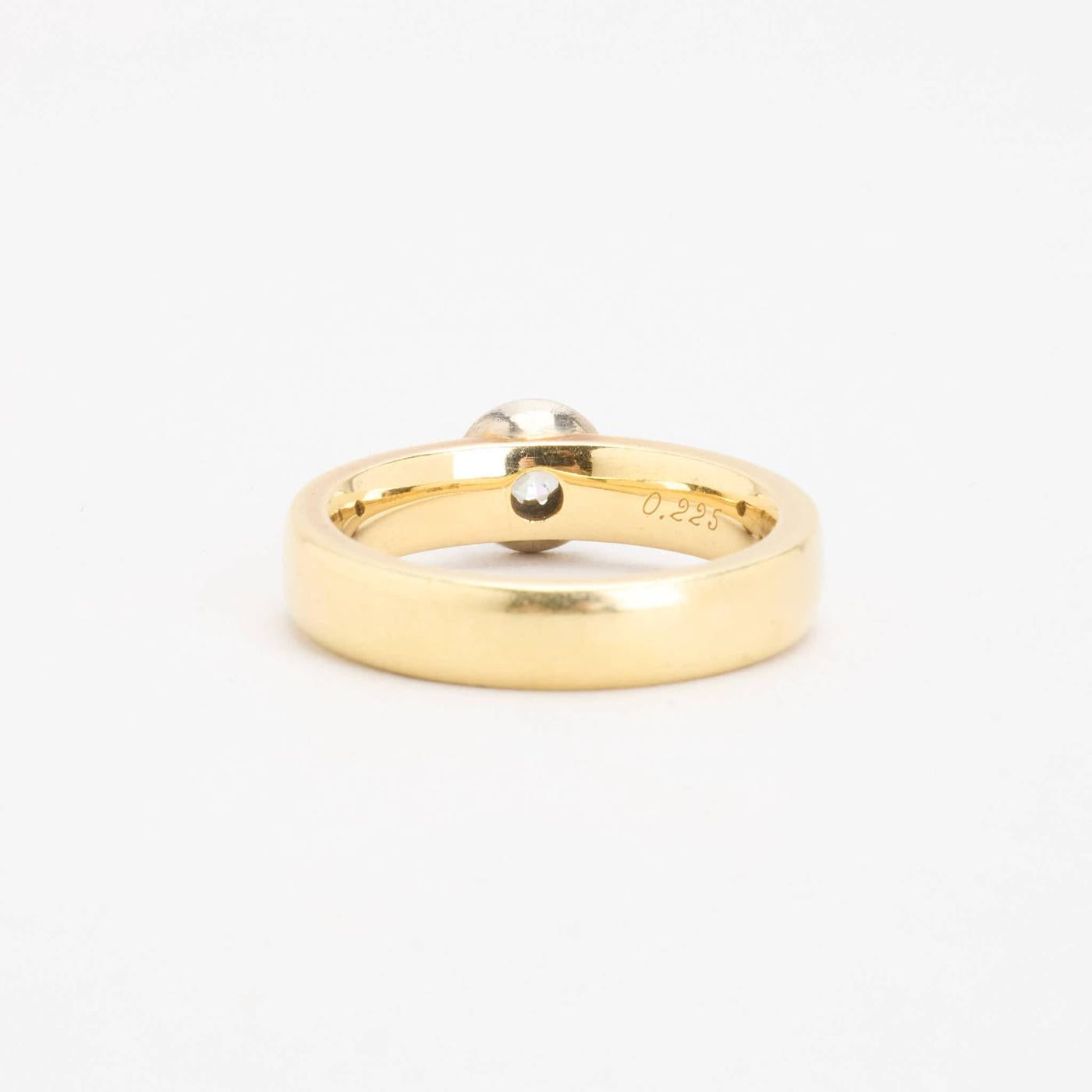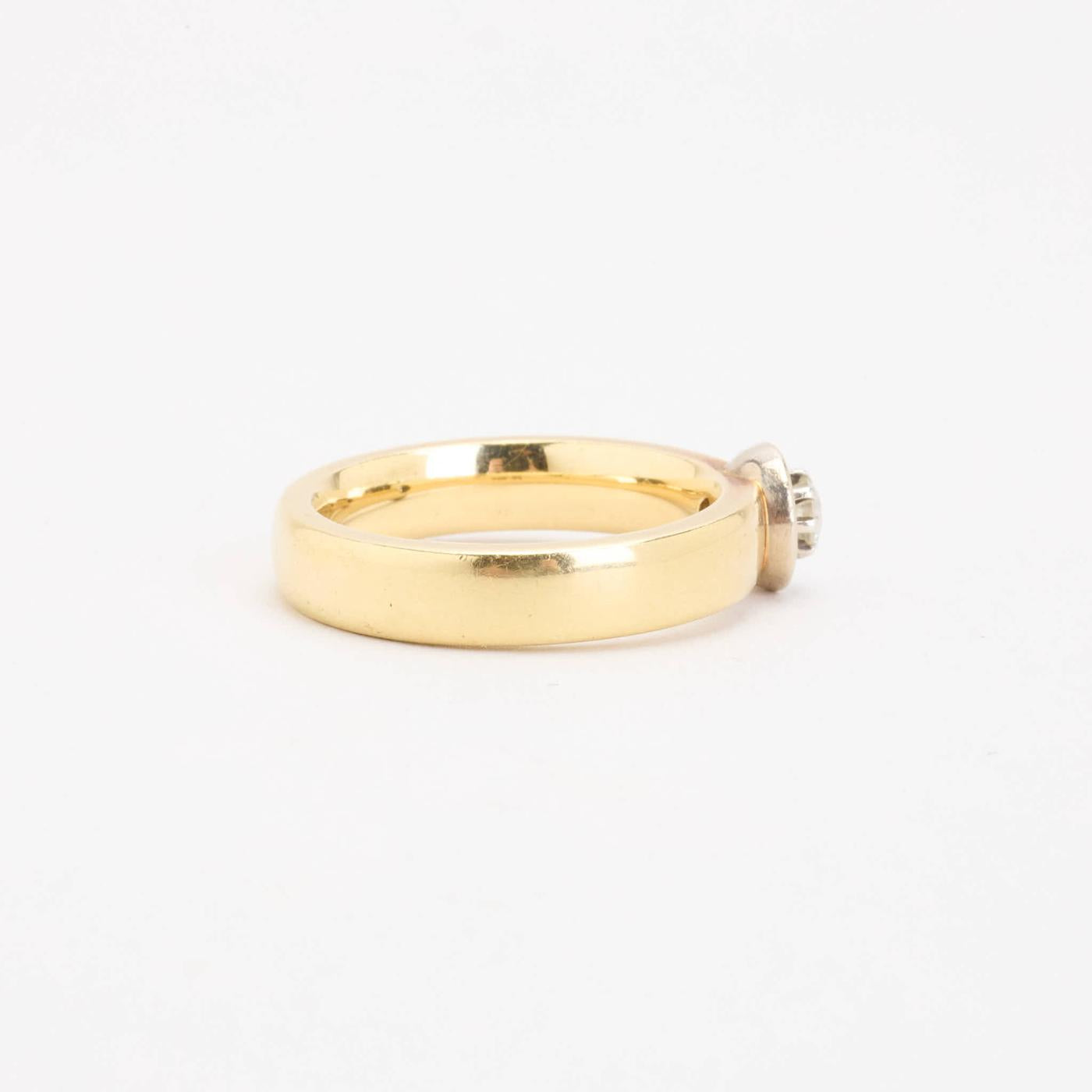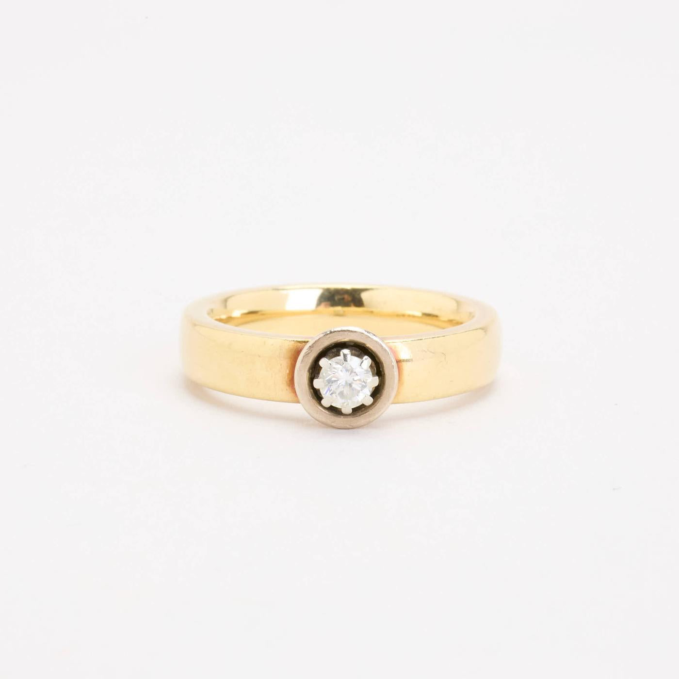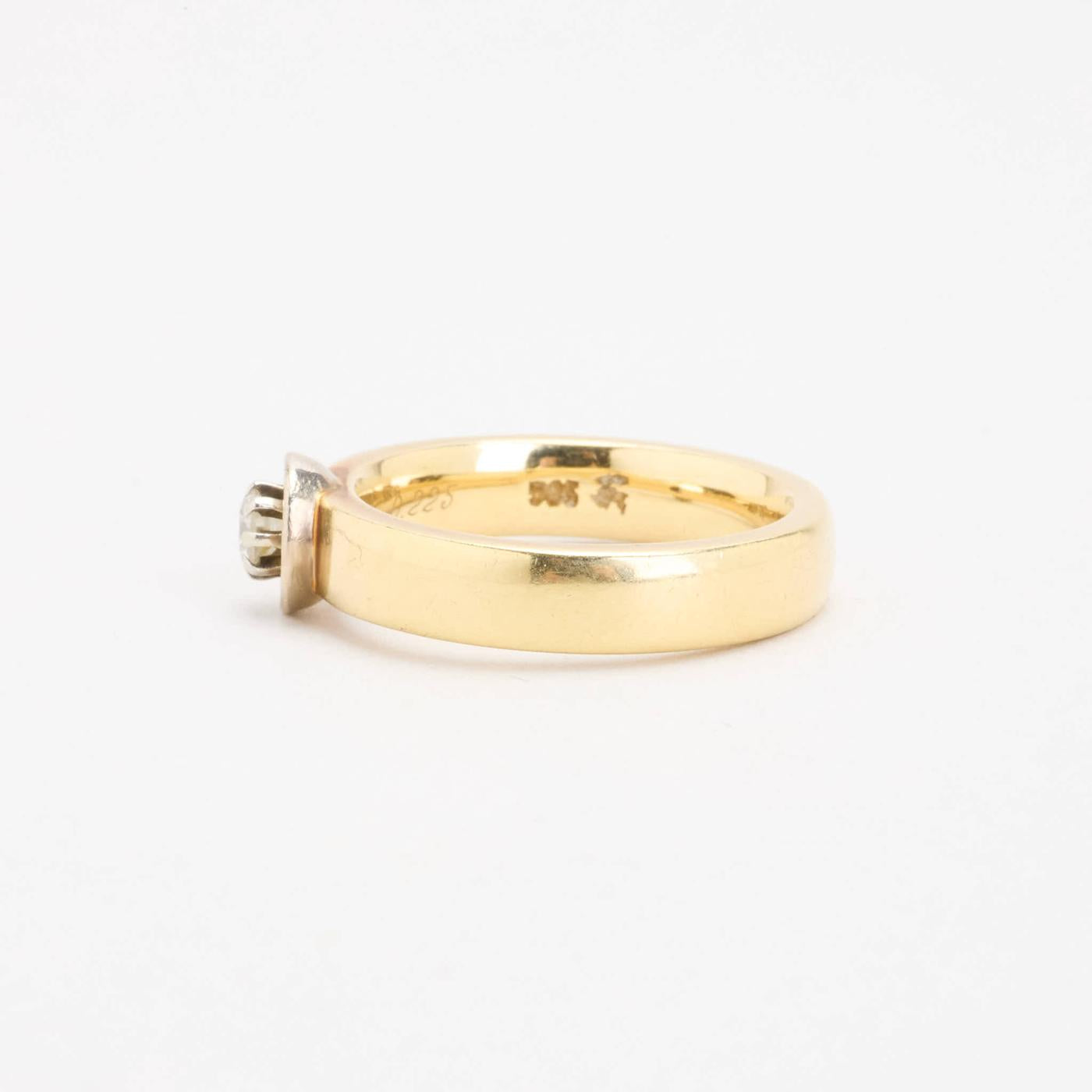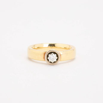 Solitairering i 14K guld og hvidguld med diamant (0.22 ct), Str. 59