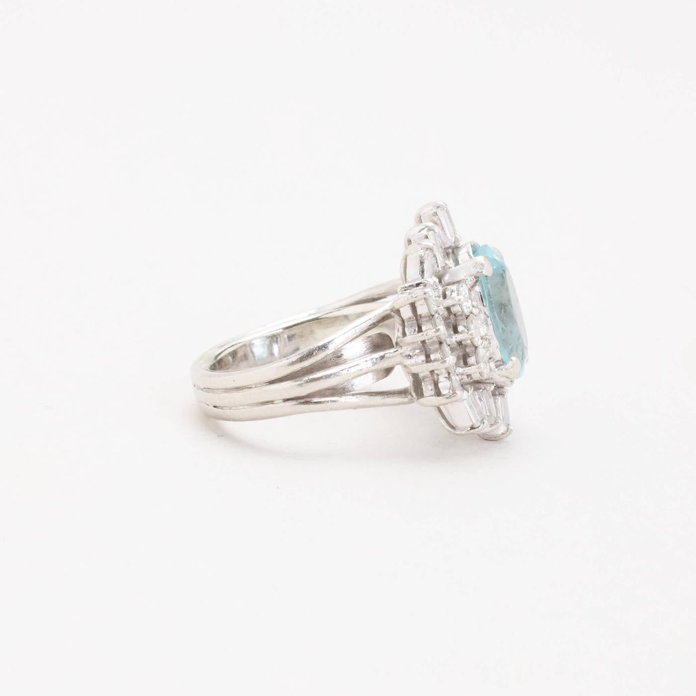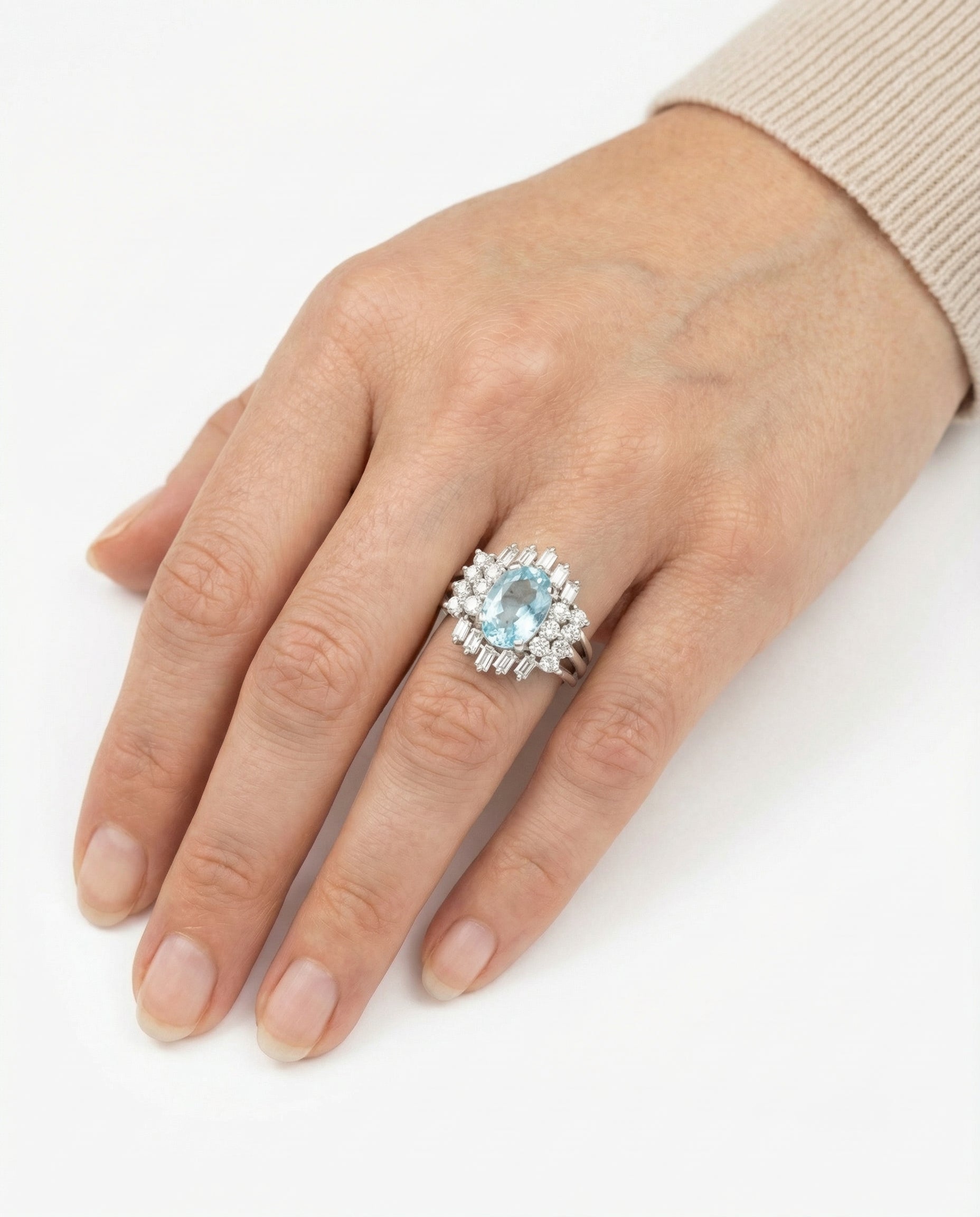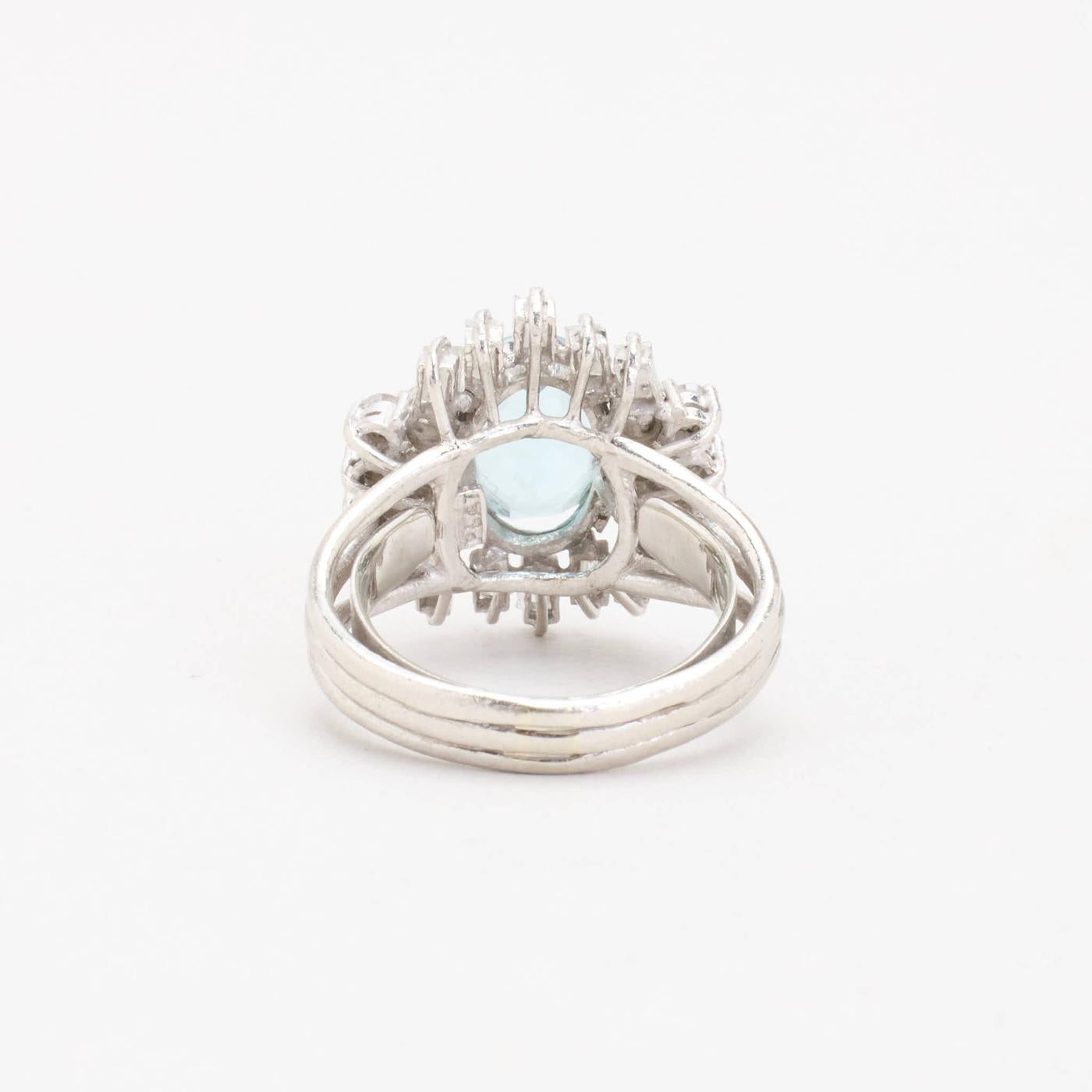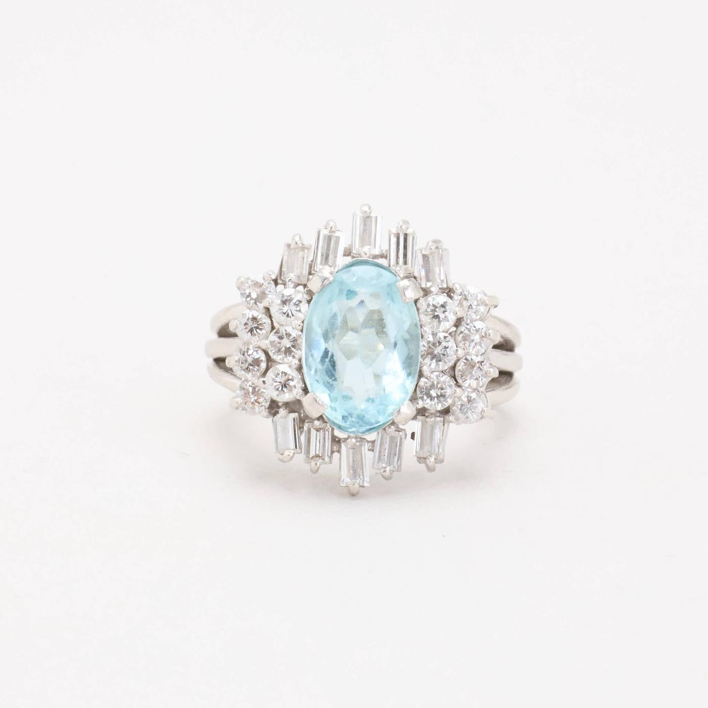 Cocktail ring med diamant (0.81 ct) i 18K hvidguld med en akvamarin, str. 54, 12.22 g