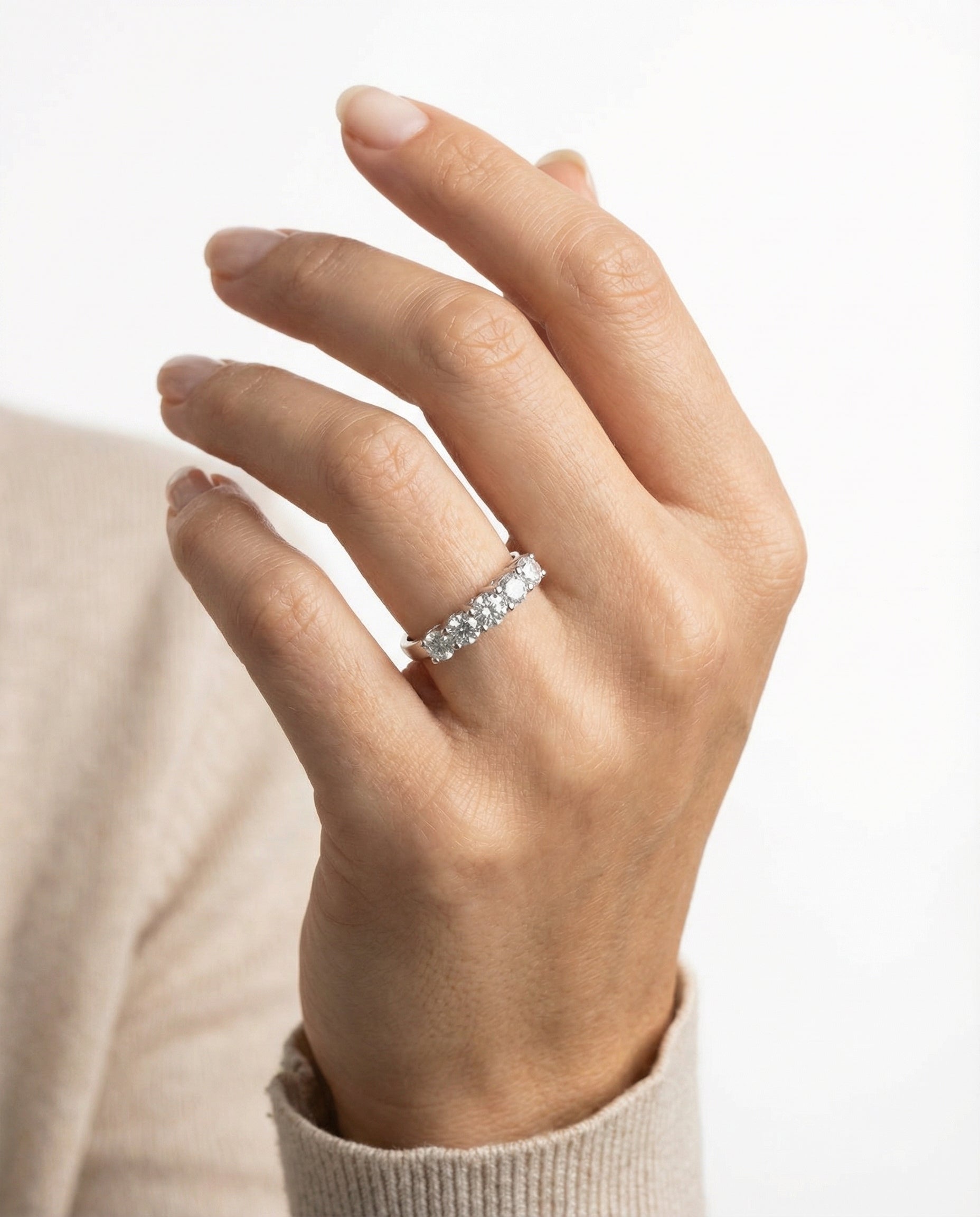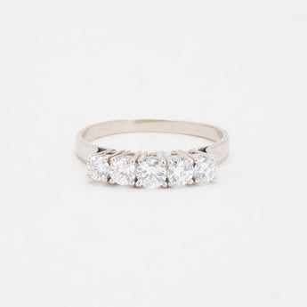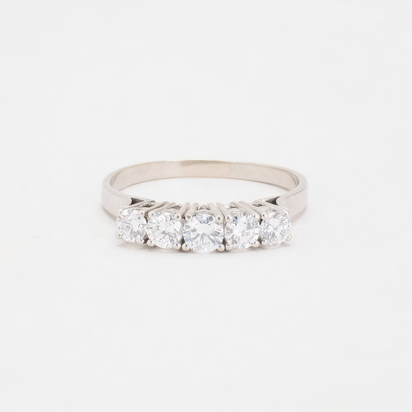 Femstensring i 14K hvidguld med diamanter (1.16 ct), Str. 64, 3.6 g