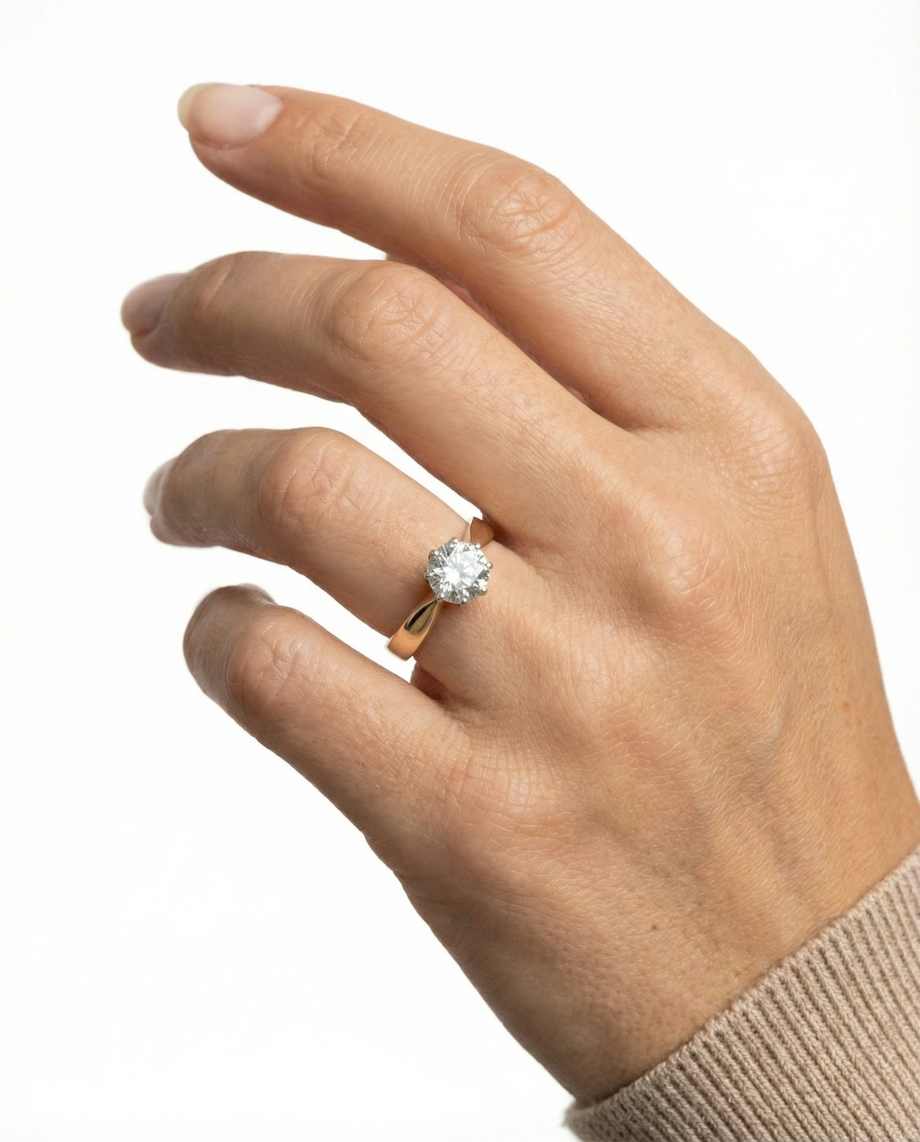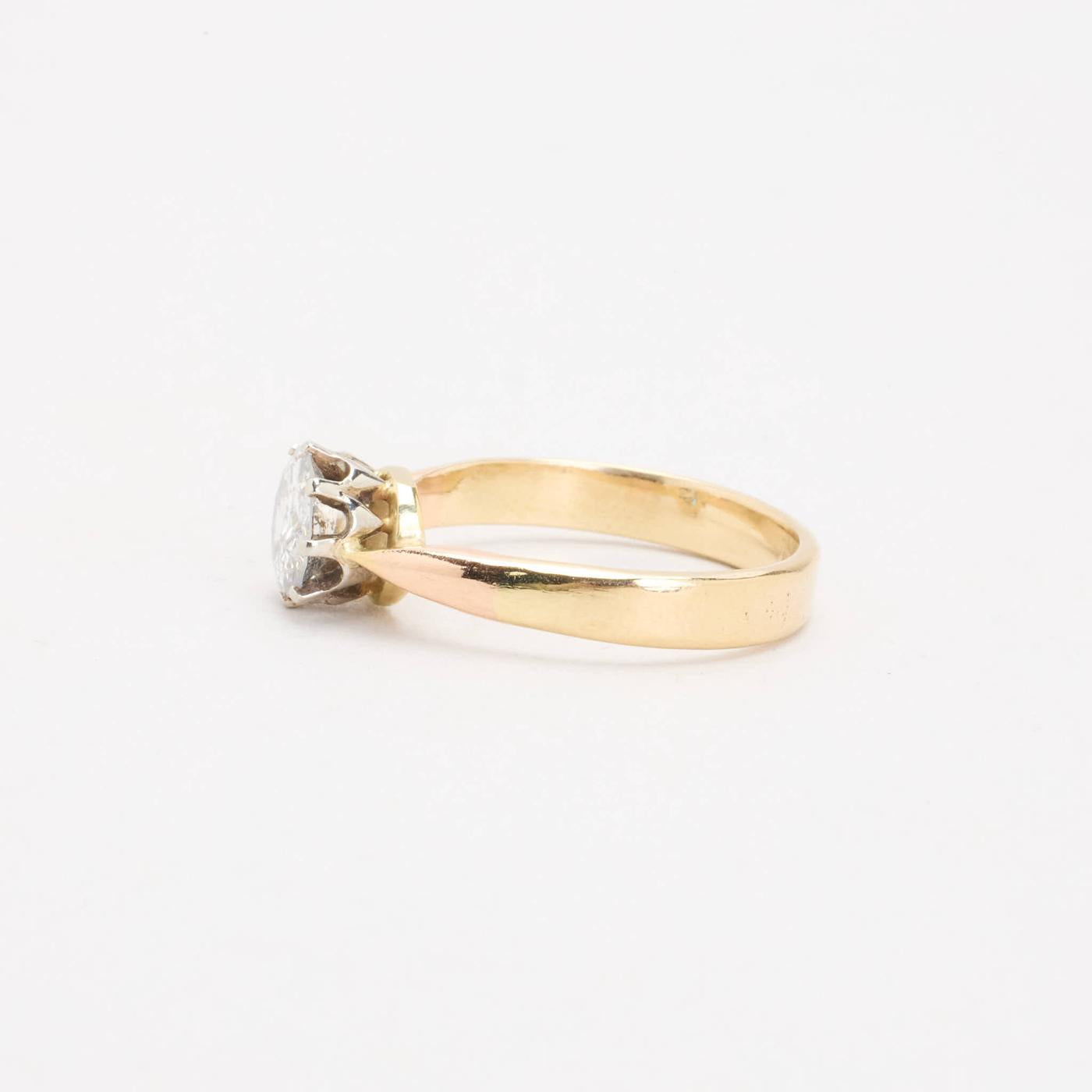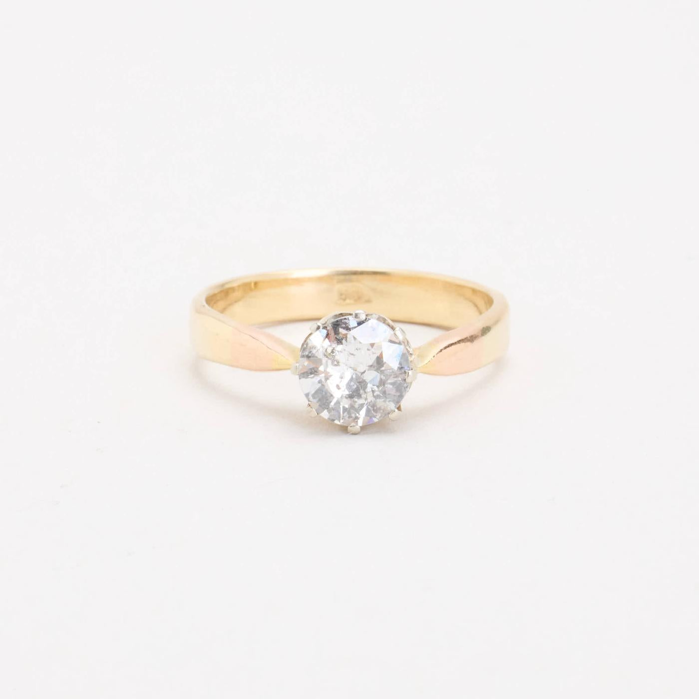 Solitairering med diamant (1.34 ct) i 14K guld og hvidguld str. 57, 3.84 g