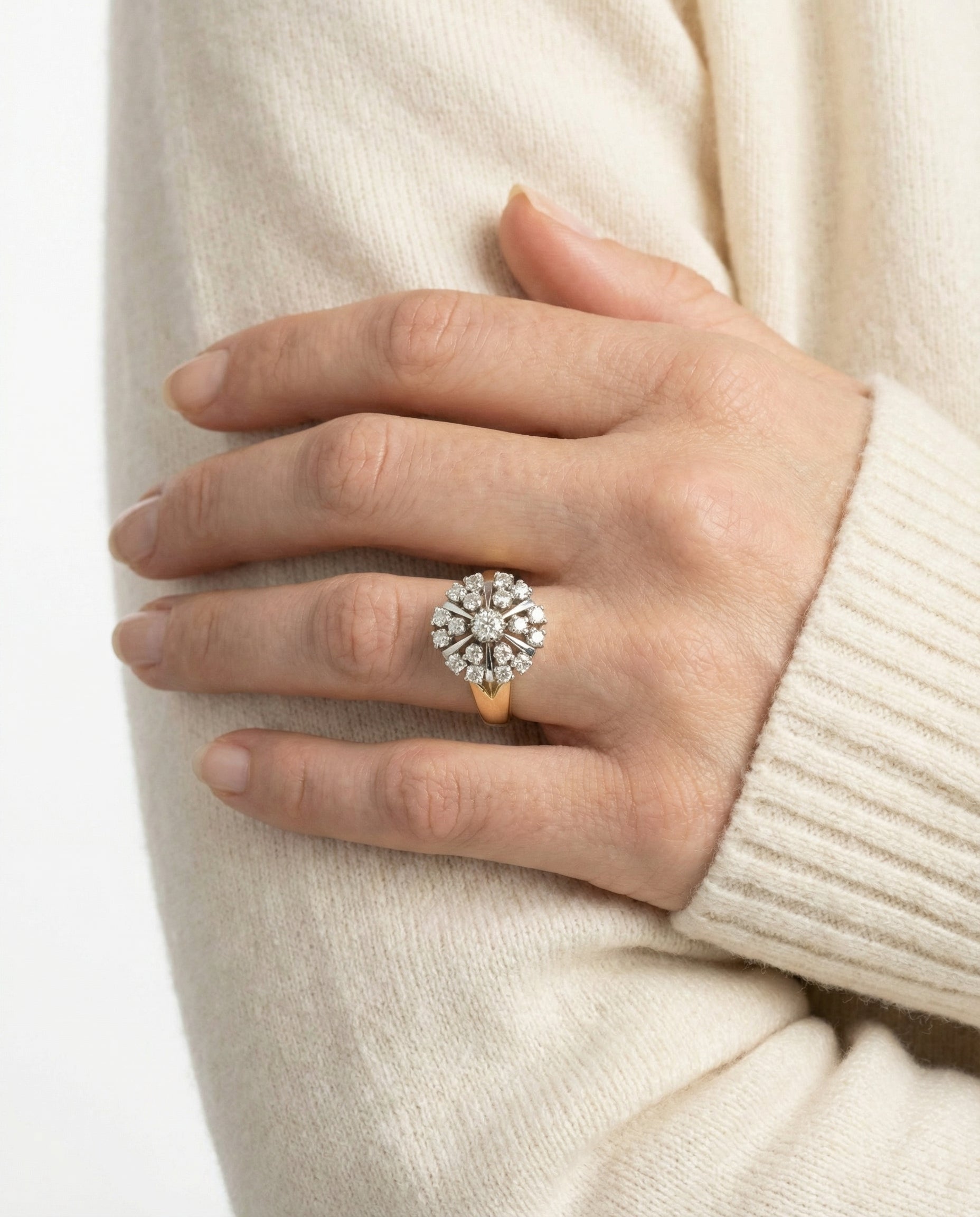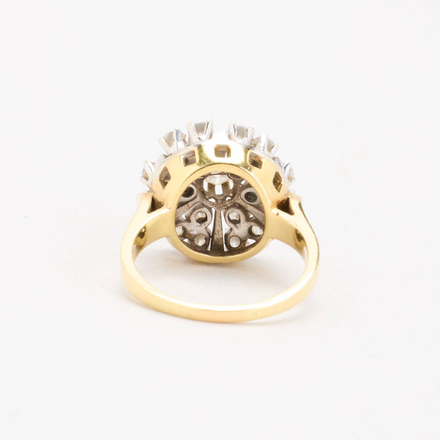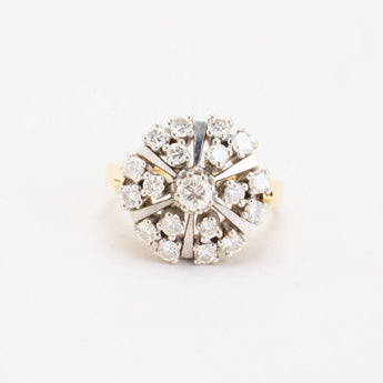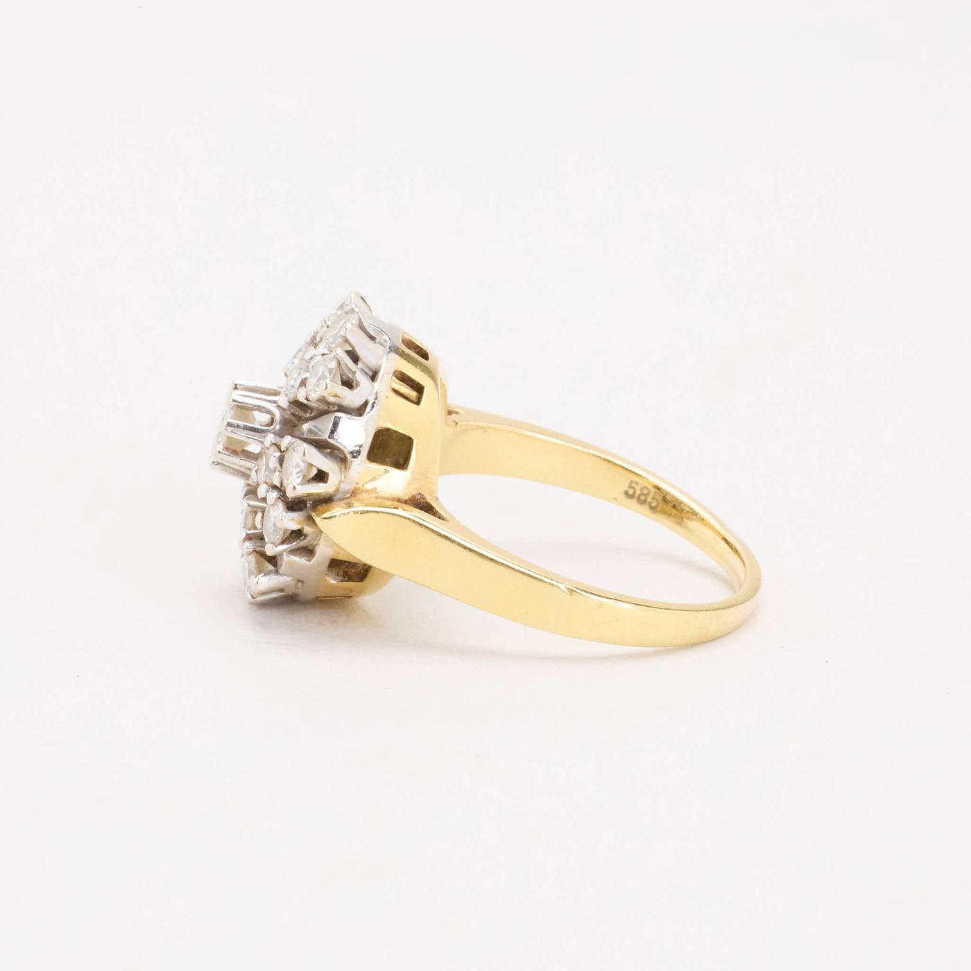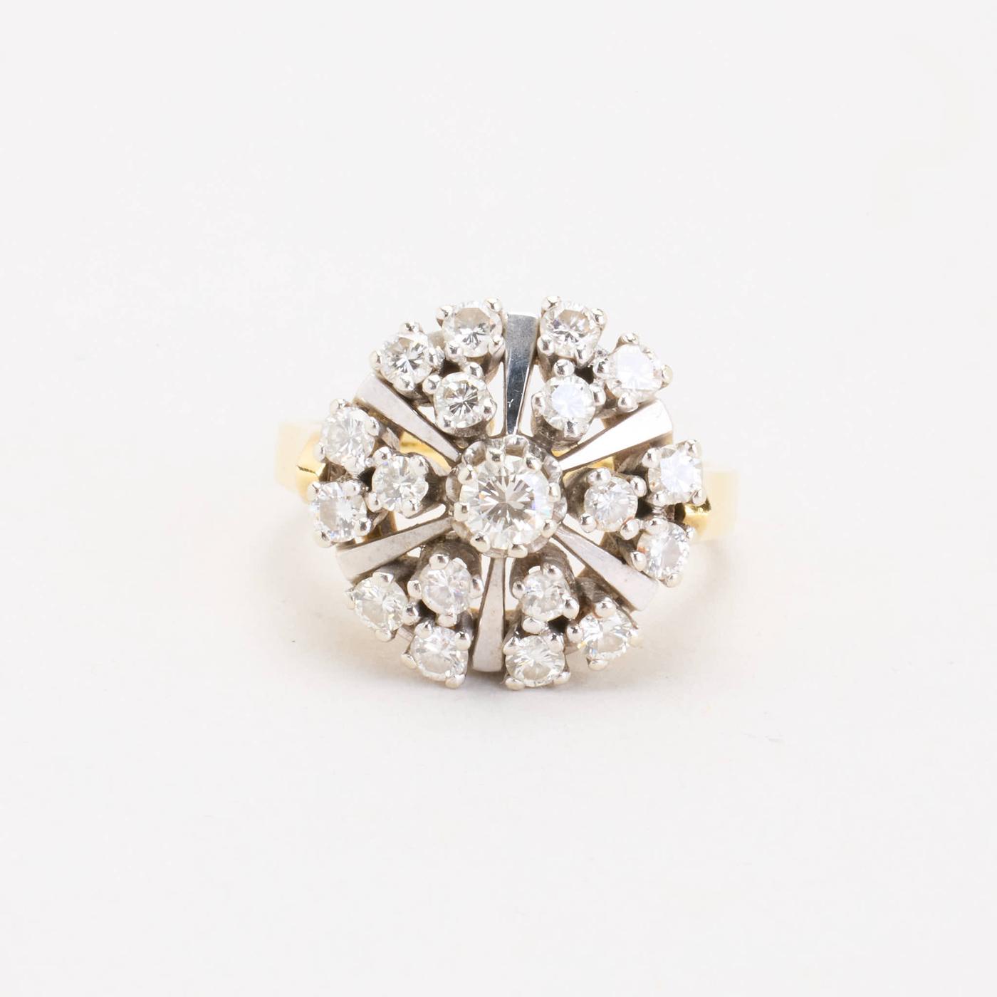 Clusterring i 14K guld og hvidguld med diamanter (1.77 ct), Str. 58, 8.51 g