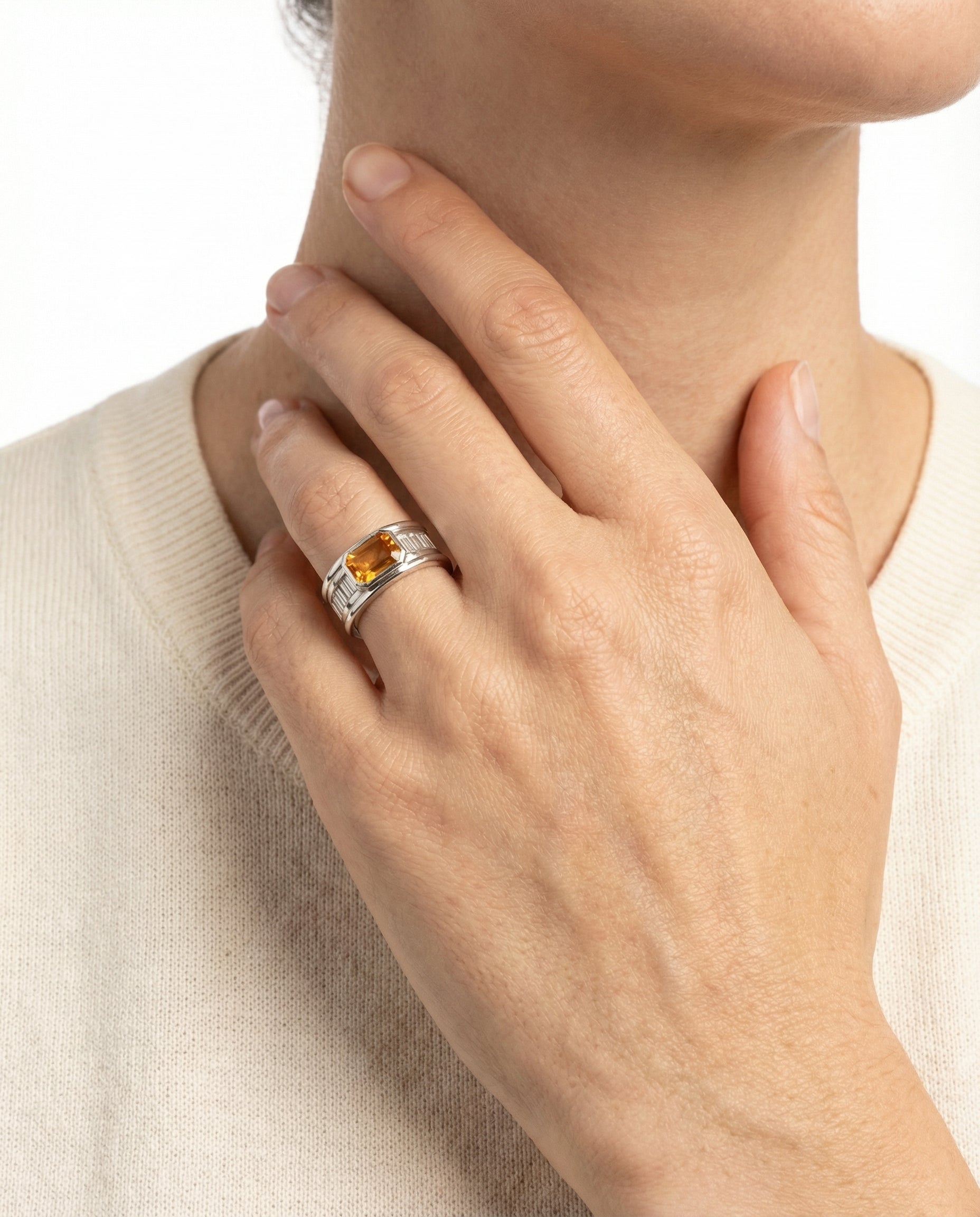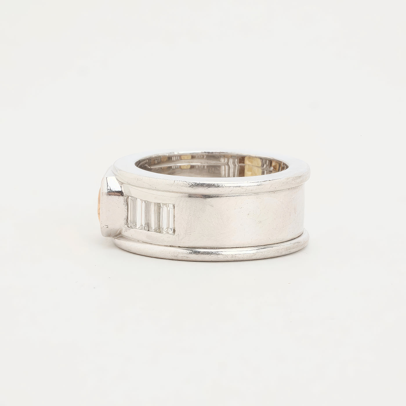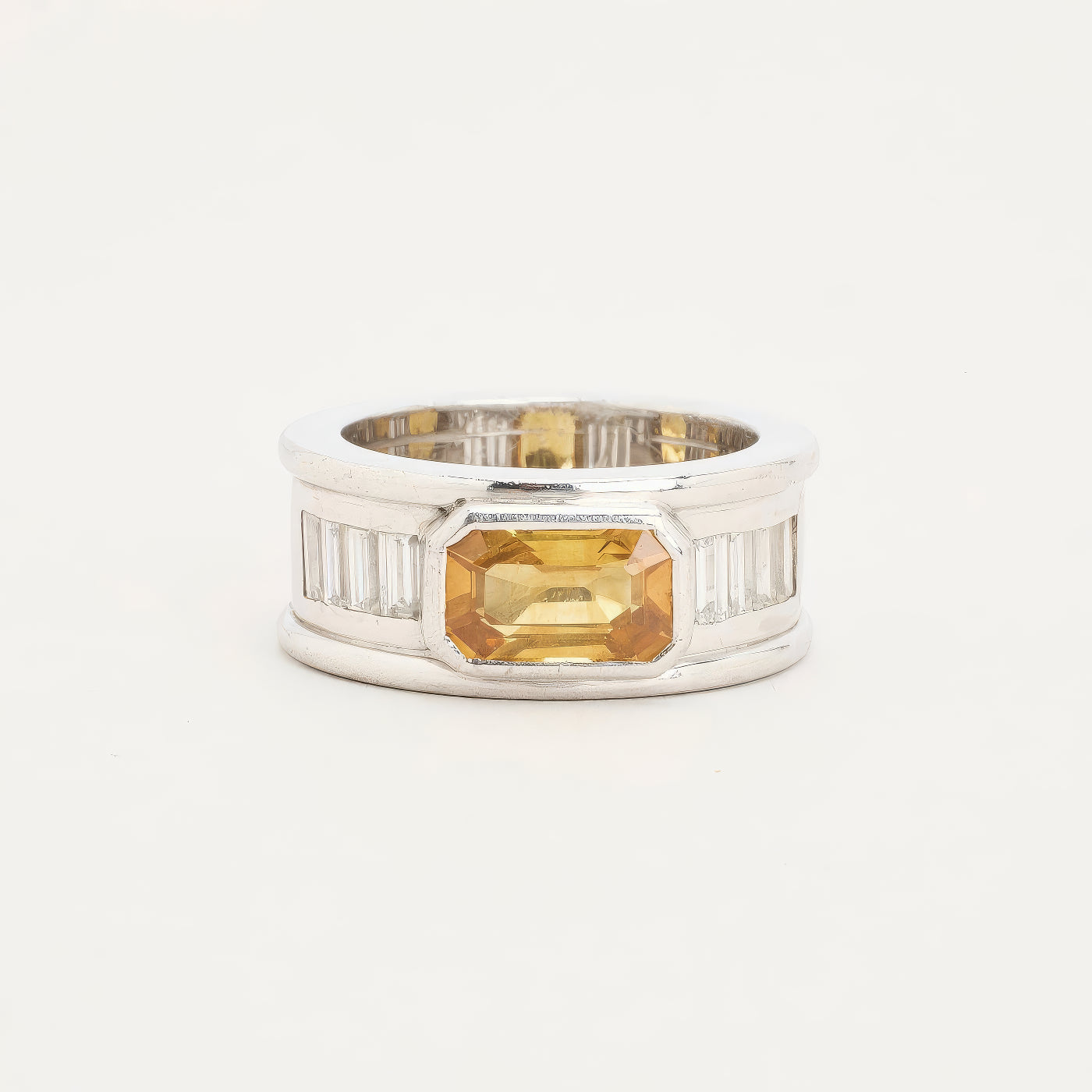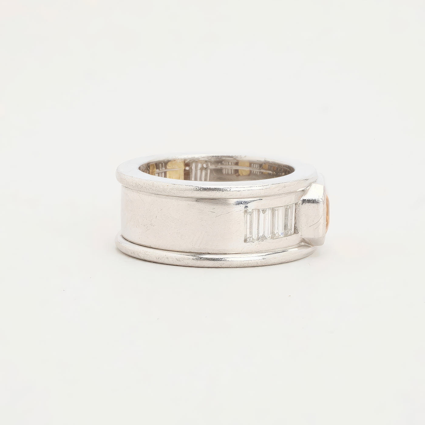 Bånd i 18K hvidguld med en orange safir og diamanter (0.95 ct), Str. 53, 18.5 g