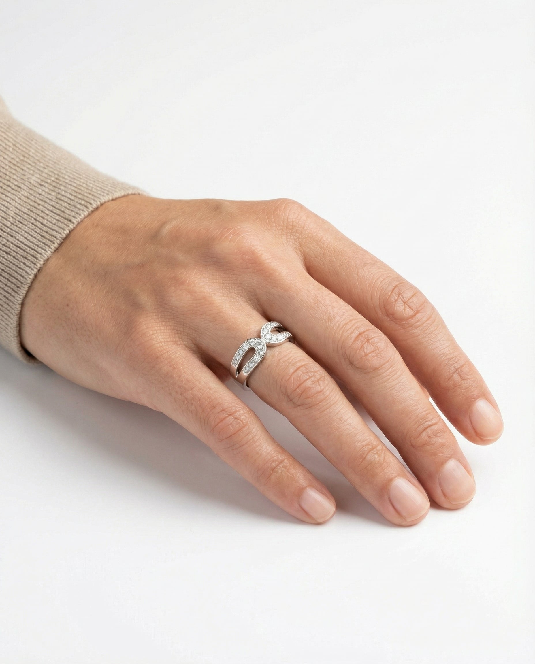 Pavéring med diamant (0.22 ct) i 18K hvidguld str. 53, 5.22 g