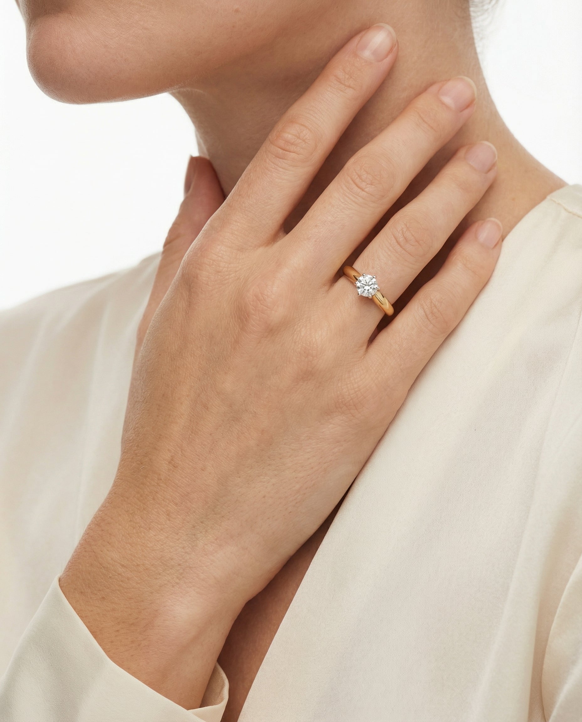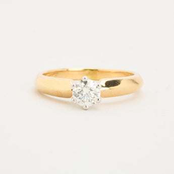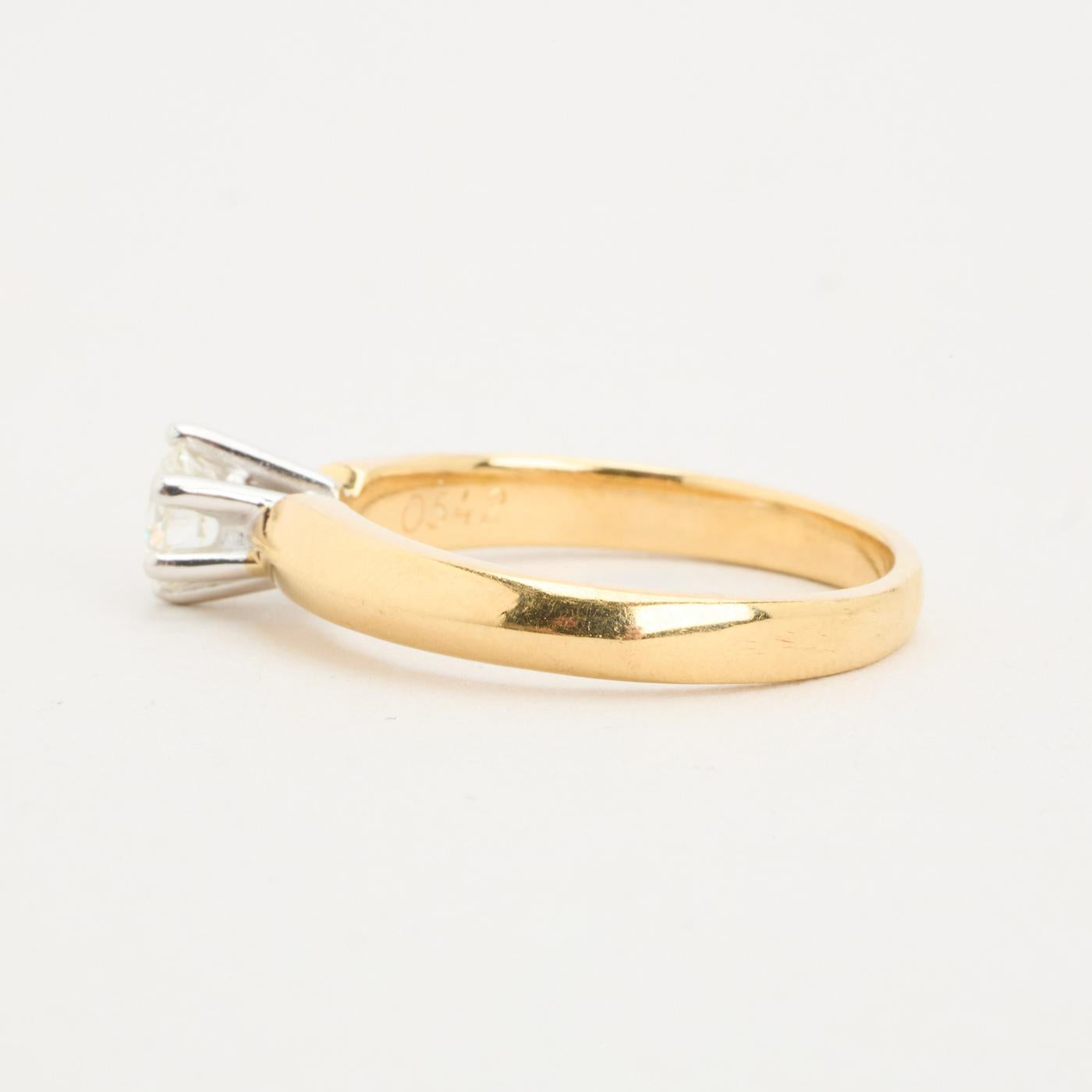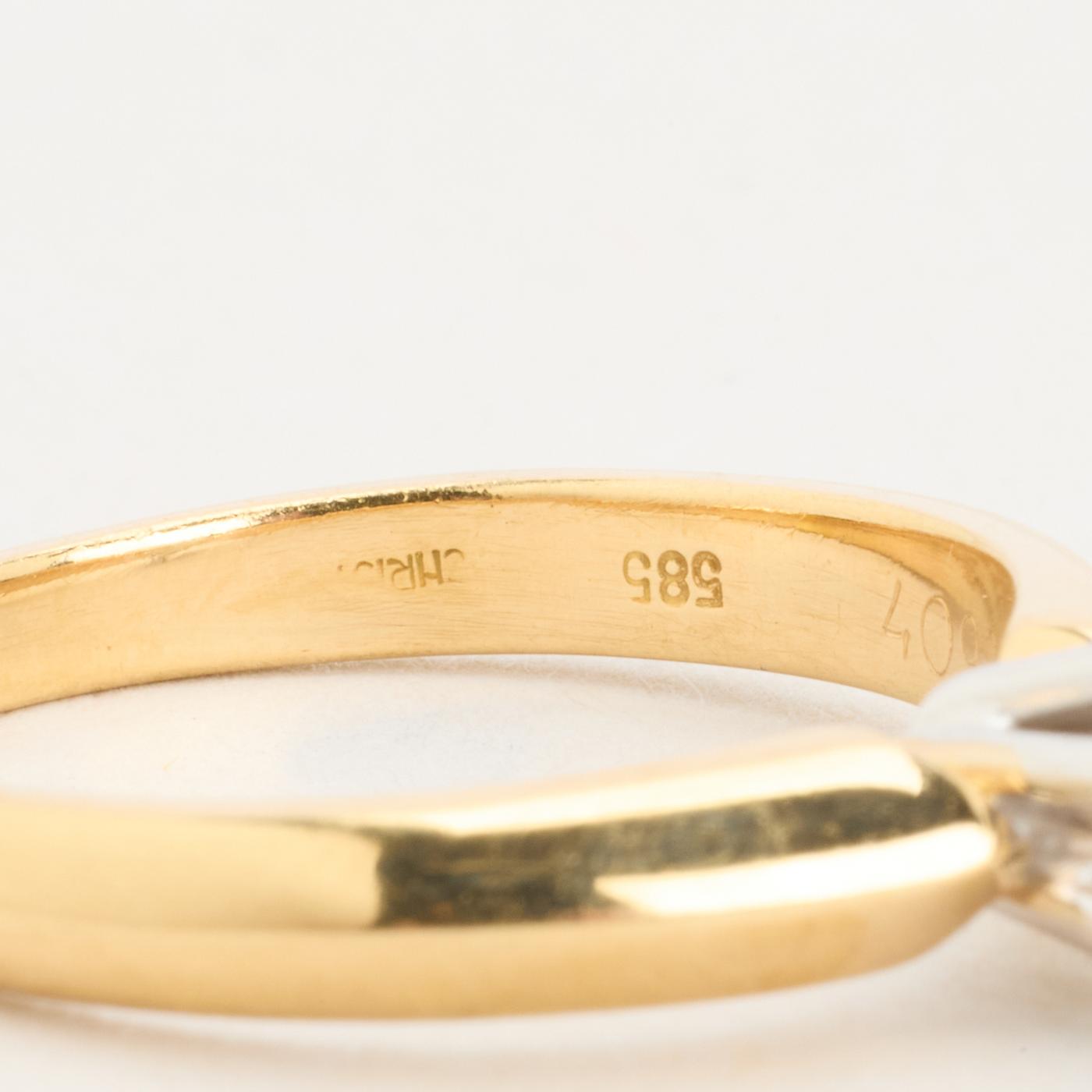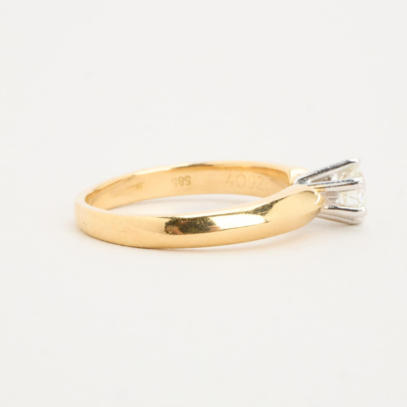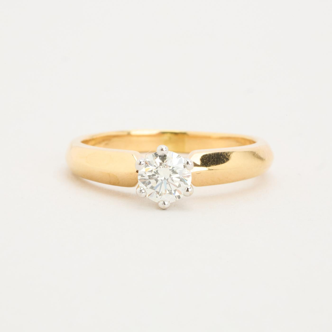 Solitairering med diamant (0.59 ct) i 14K guld og hvidguld str. 58, 4.55 g