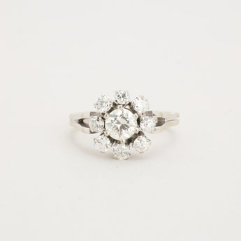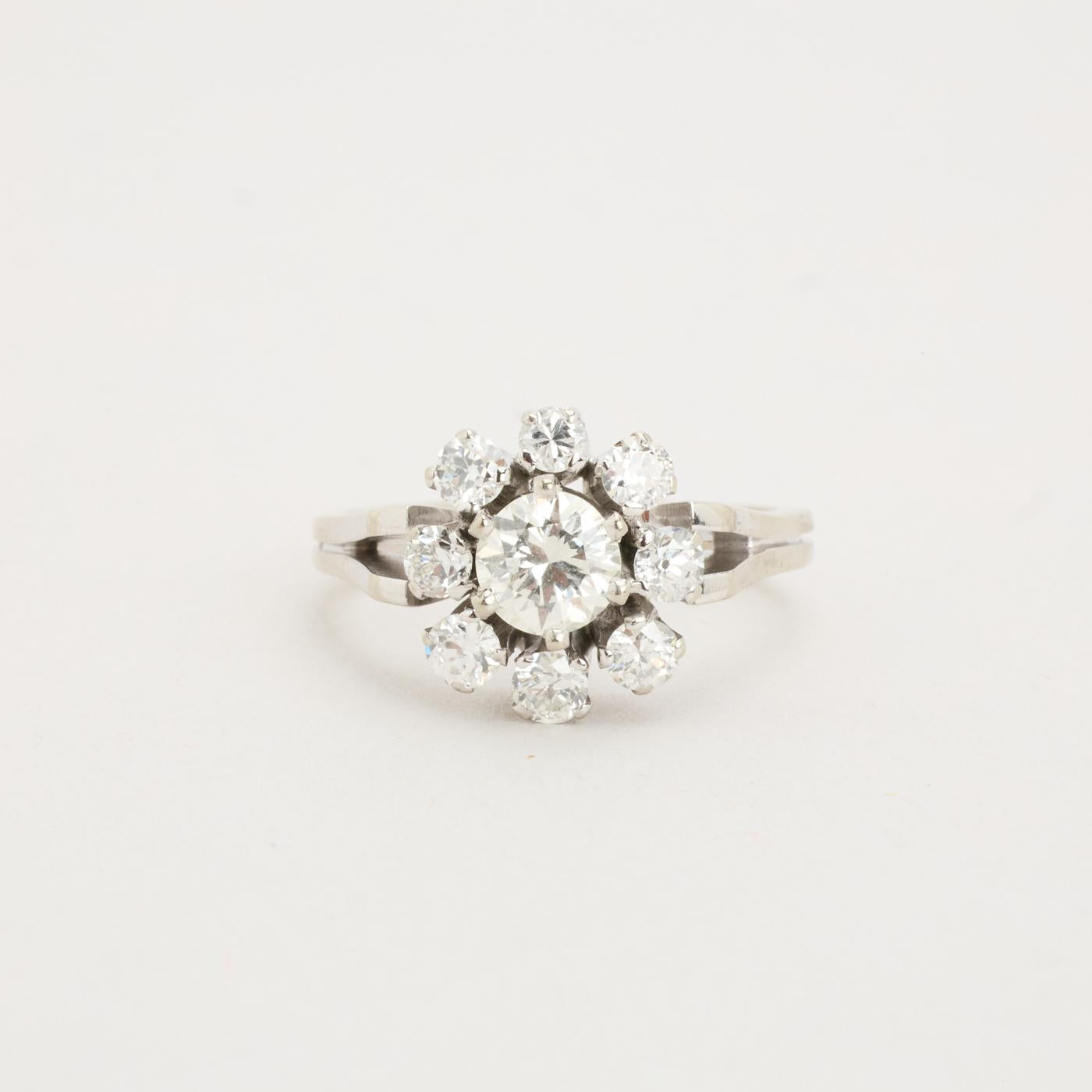 Rosetring med diamant (1.17 ct) i 14K hvidguld str. 50, 3.39 g