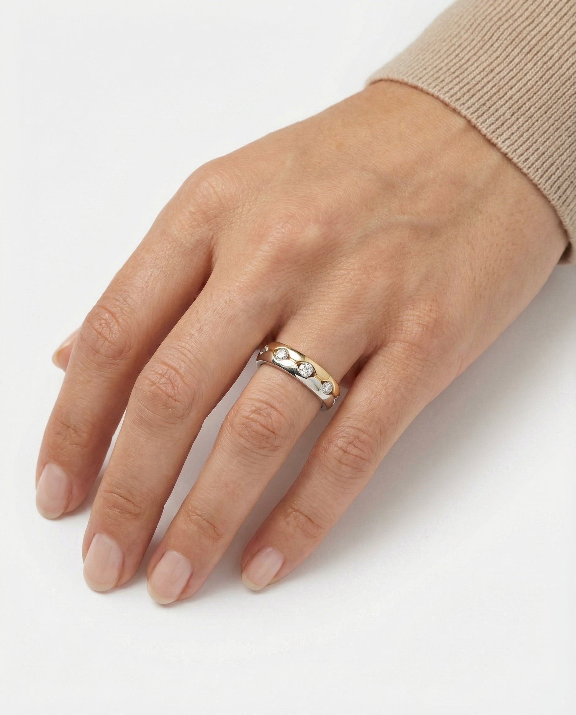 Ring med diamant (0.63 ct) i 18K guld og hvidguld str. 54, 4.93 g