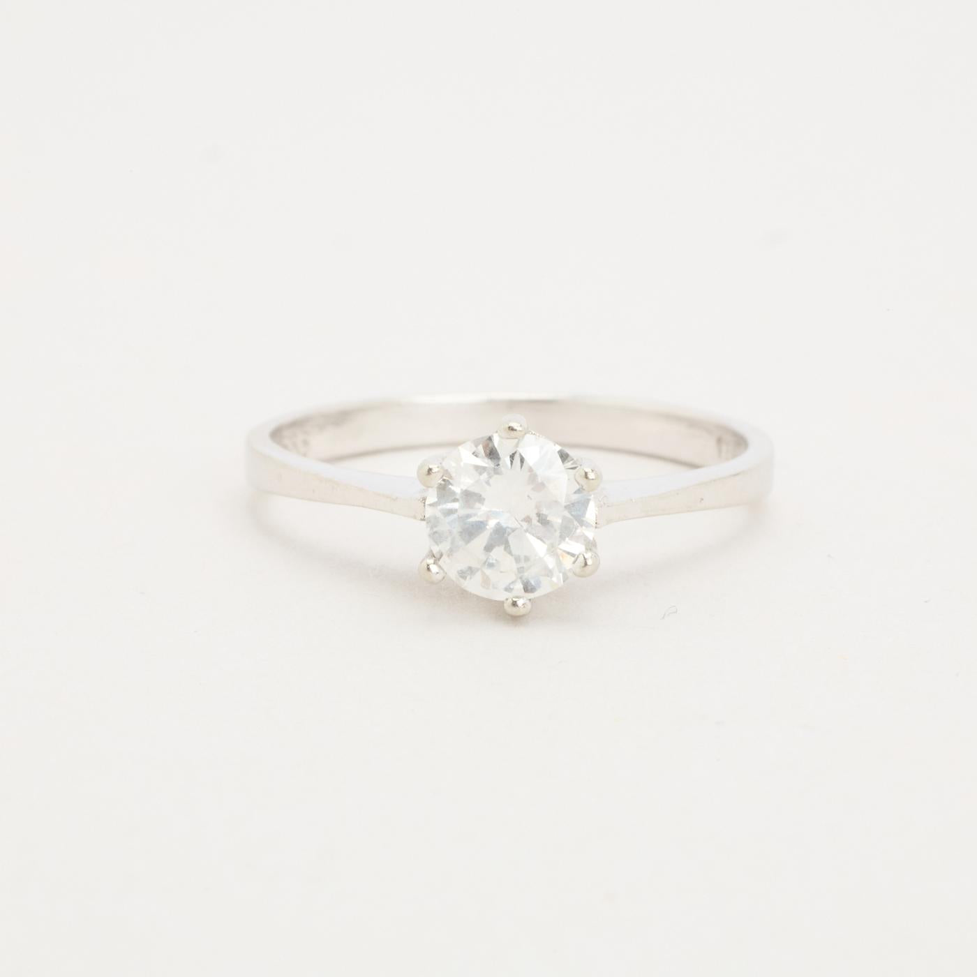 Solitairering med diamant (0.75 ct) i 14K hvidguld str. 52, 1.79 g