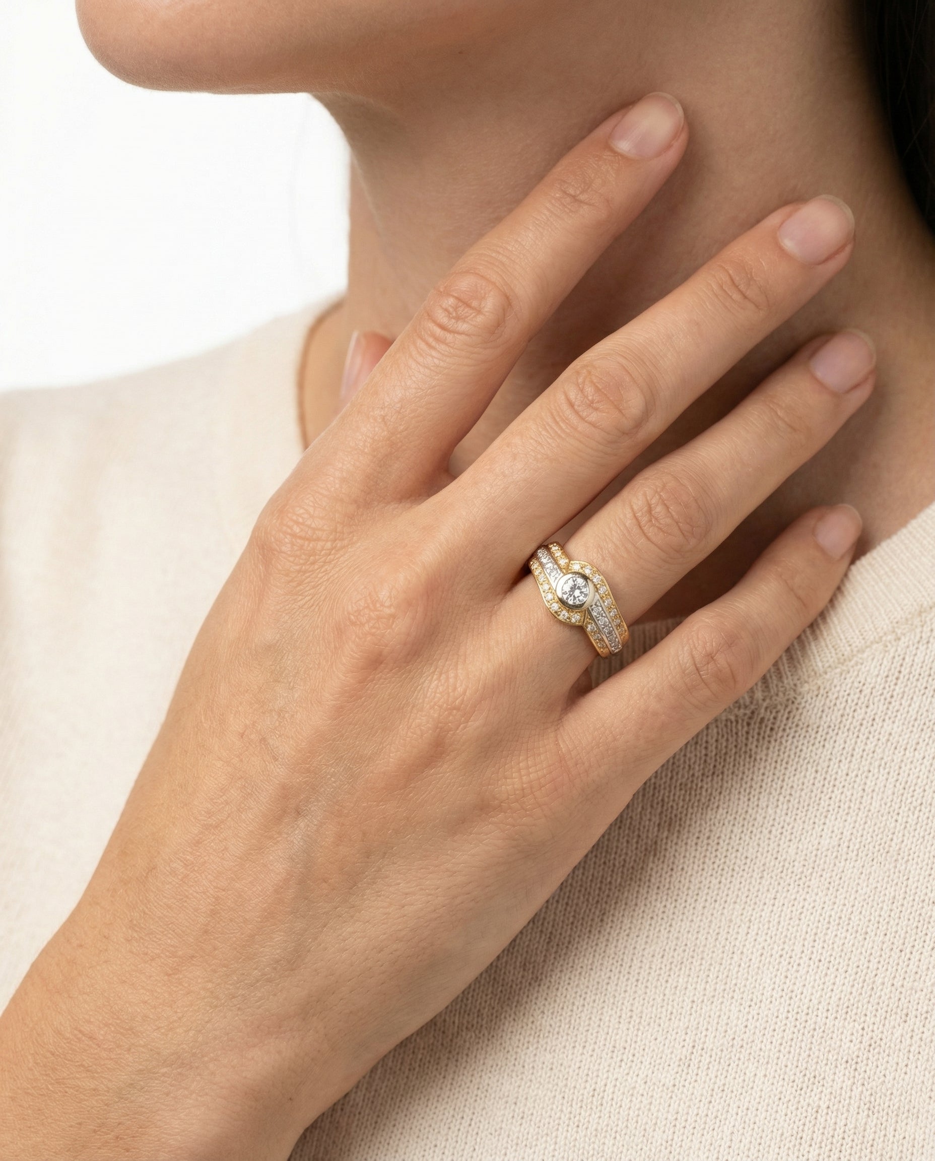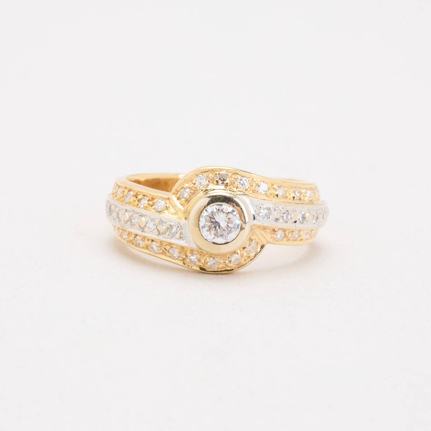 Pavéring med diamant (0.4 ct) i 14K guld og hvidguld str. 56, 4.9 g