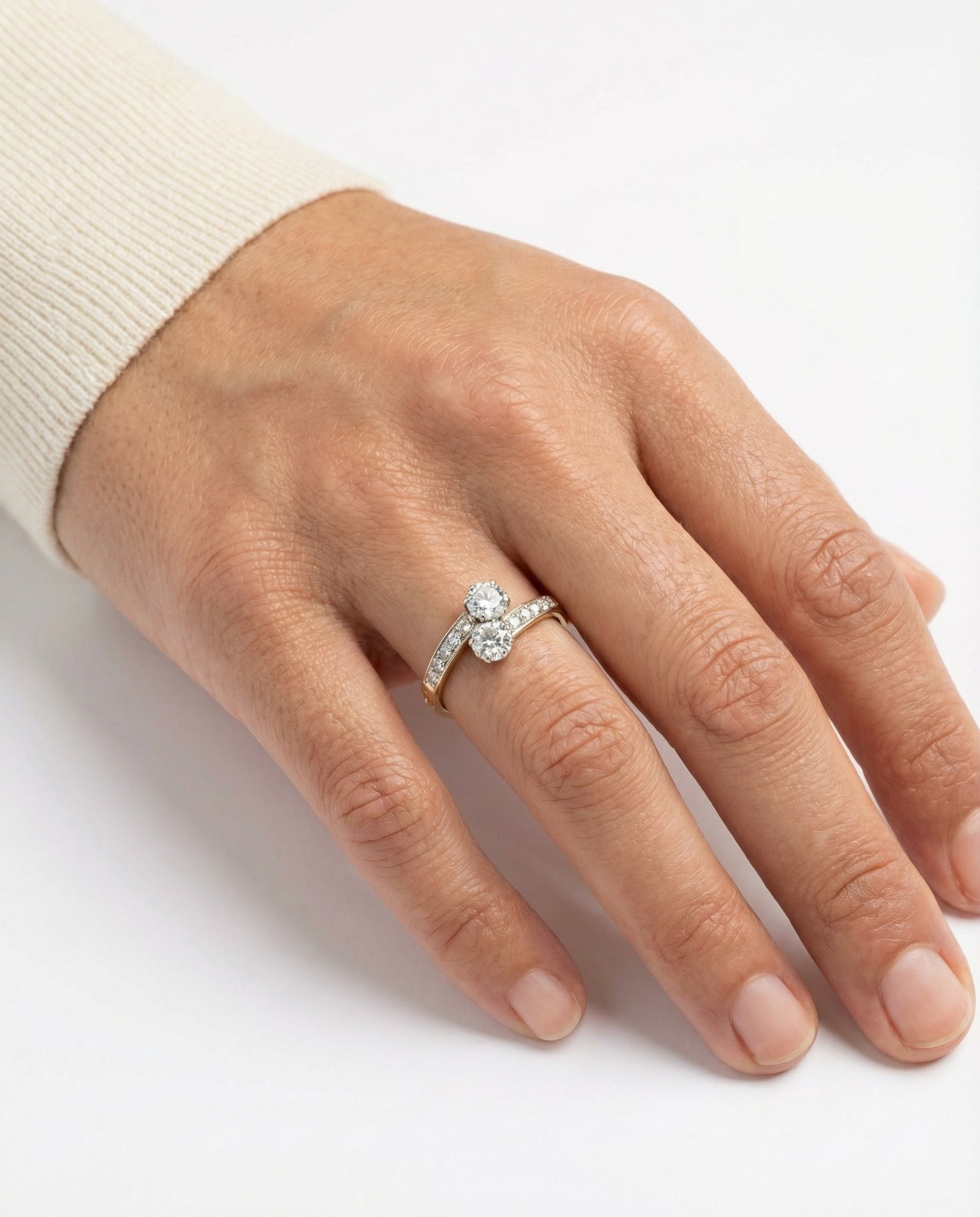 Toi et Moi ring i 14K guld med diamanter (0.64 ct), Str. 55, 2.5 g