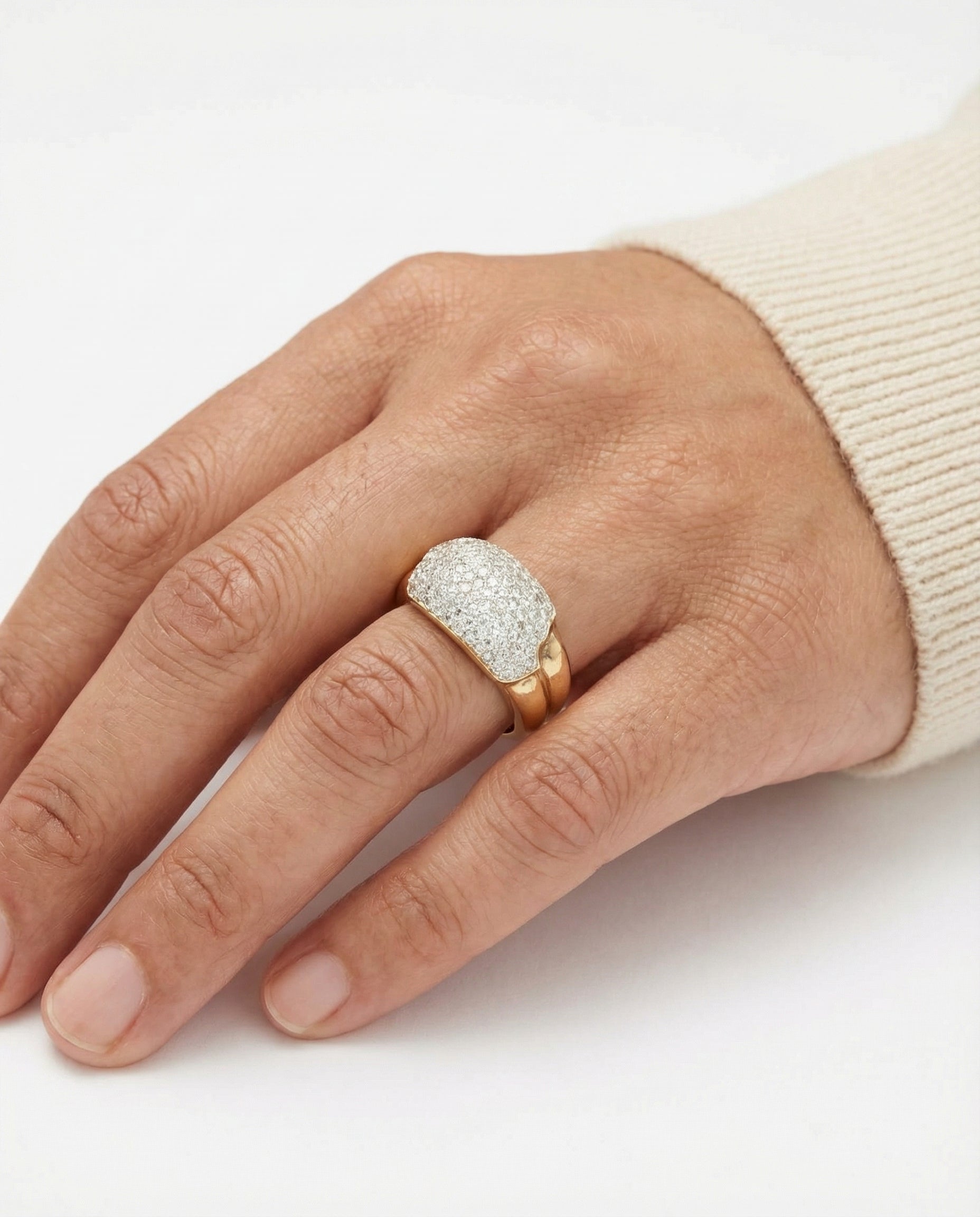 Pavéring med diamant (0.52 ct) i 18K guld og hvidguld str. 54, 8.71 g