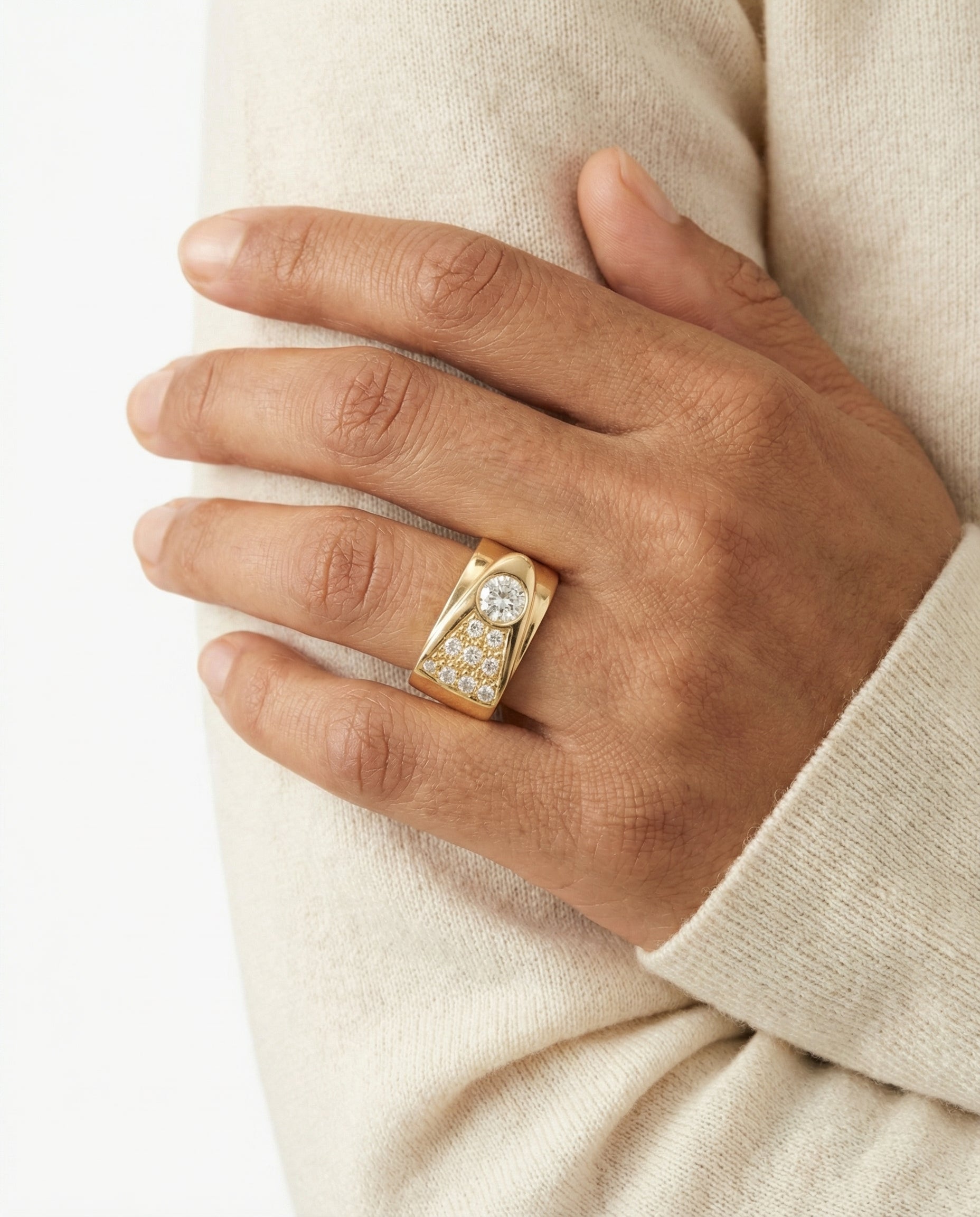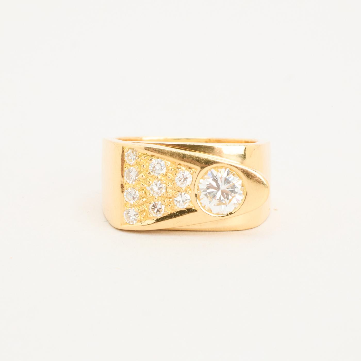 Signetring med diamant (0.76 ct) i 18K guld str. 54, 16.07 g