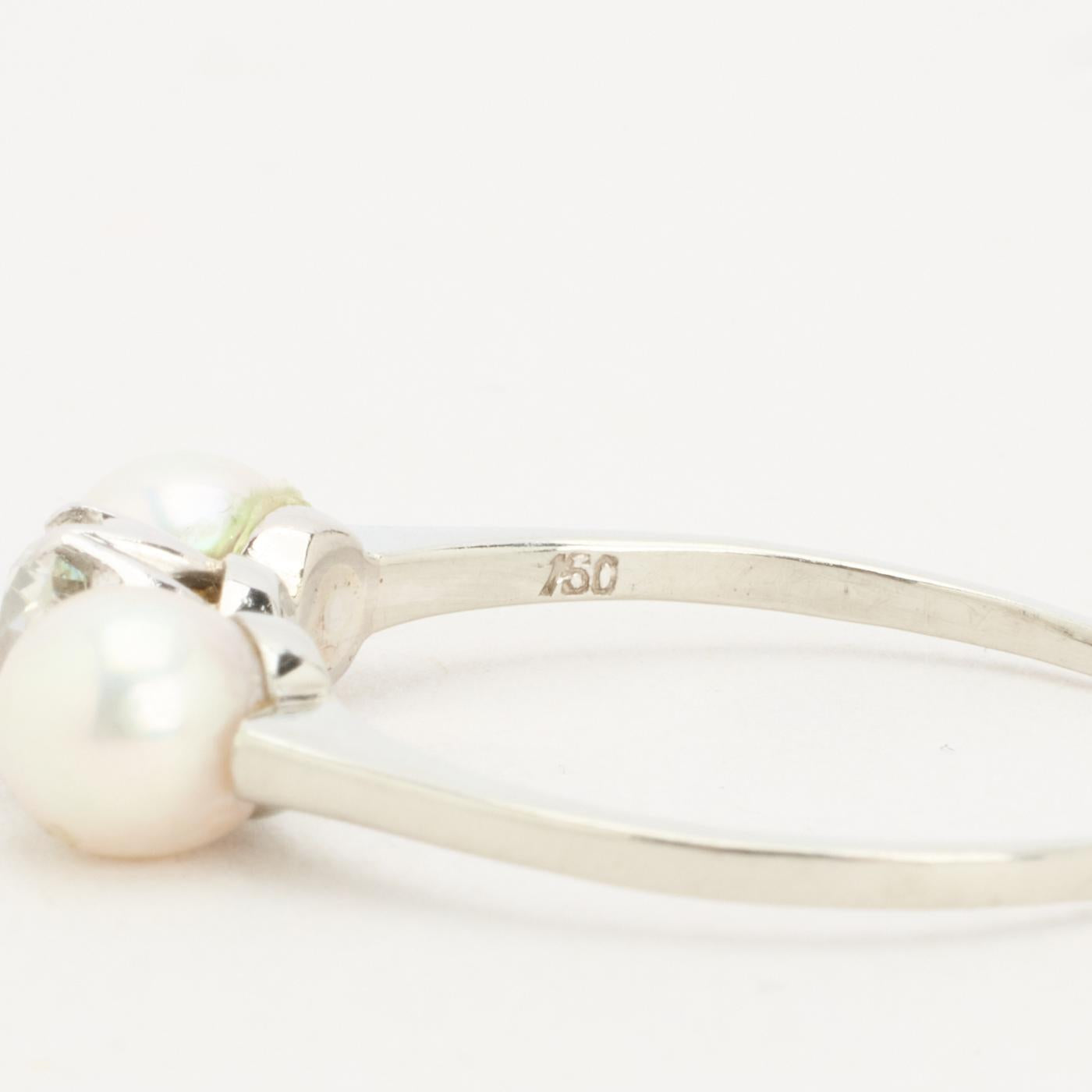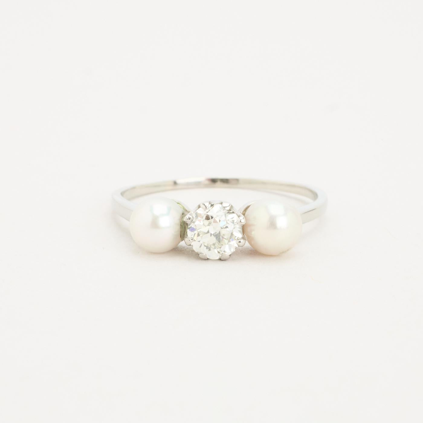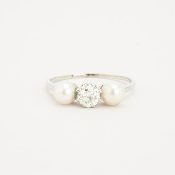 Perlering med diamant (0.46 ct) i 18K hvidguld med en perle, str. 57, 2.18 g