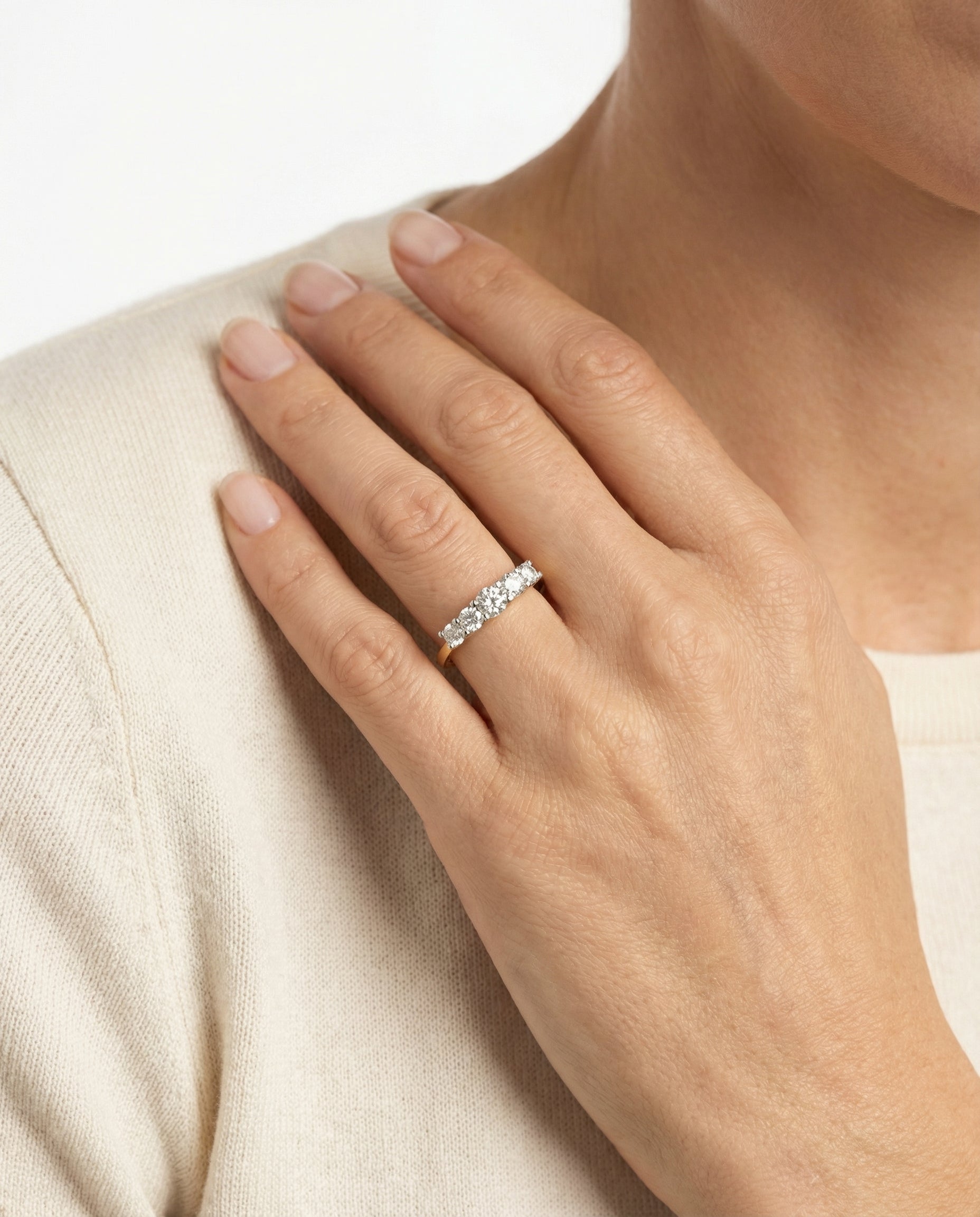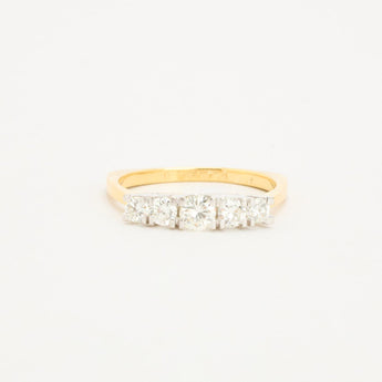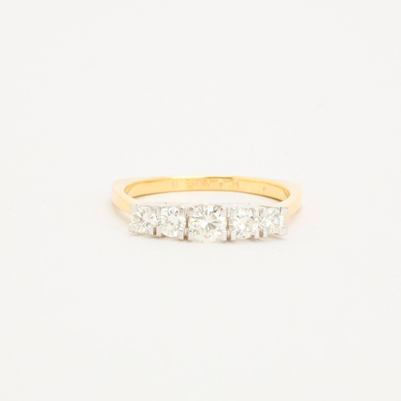 Femstensring i 18K guld og hvidguld med diamanter (0.81 ct), Str. 57, 3.6 g