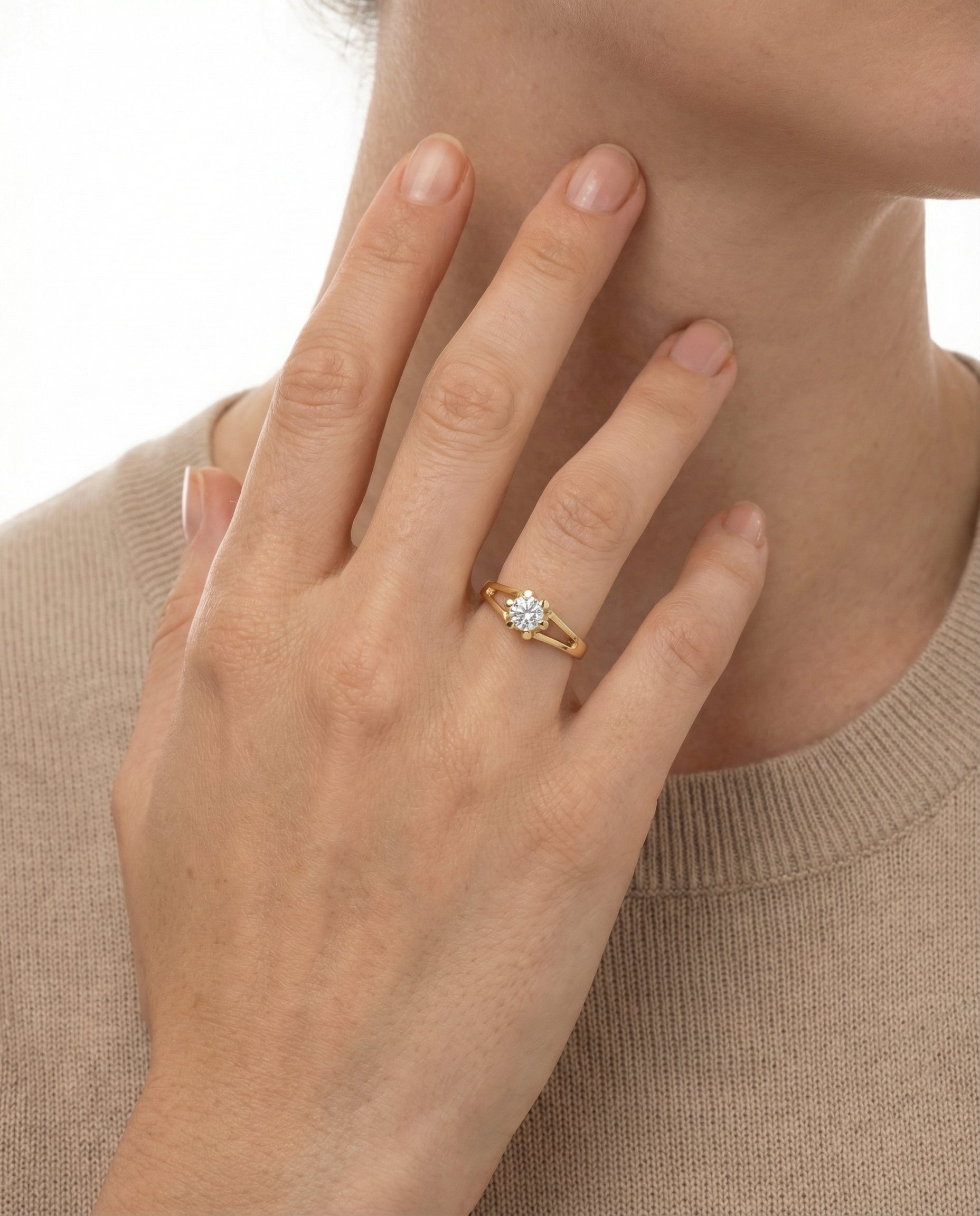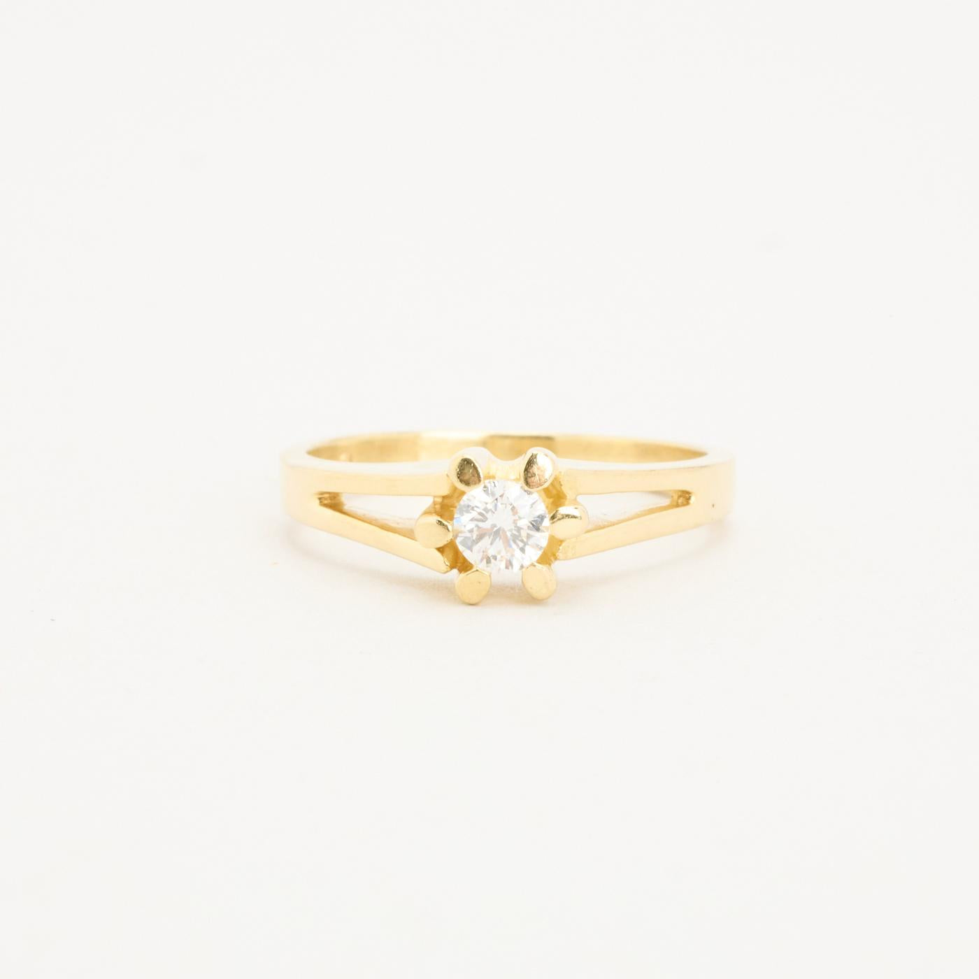 Solitairering med diamant (0.24 ct) i 14K guld str. 55, 3.26 g