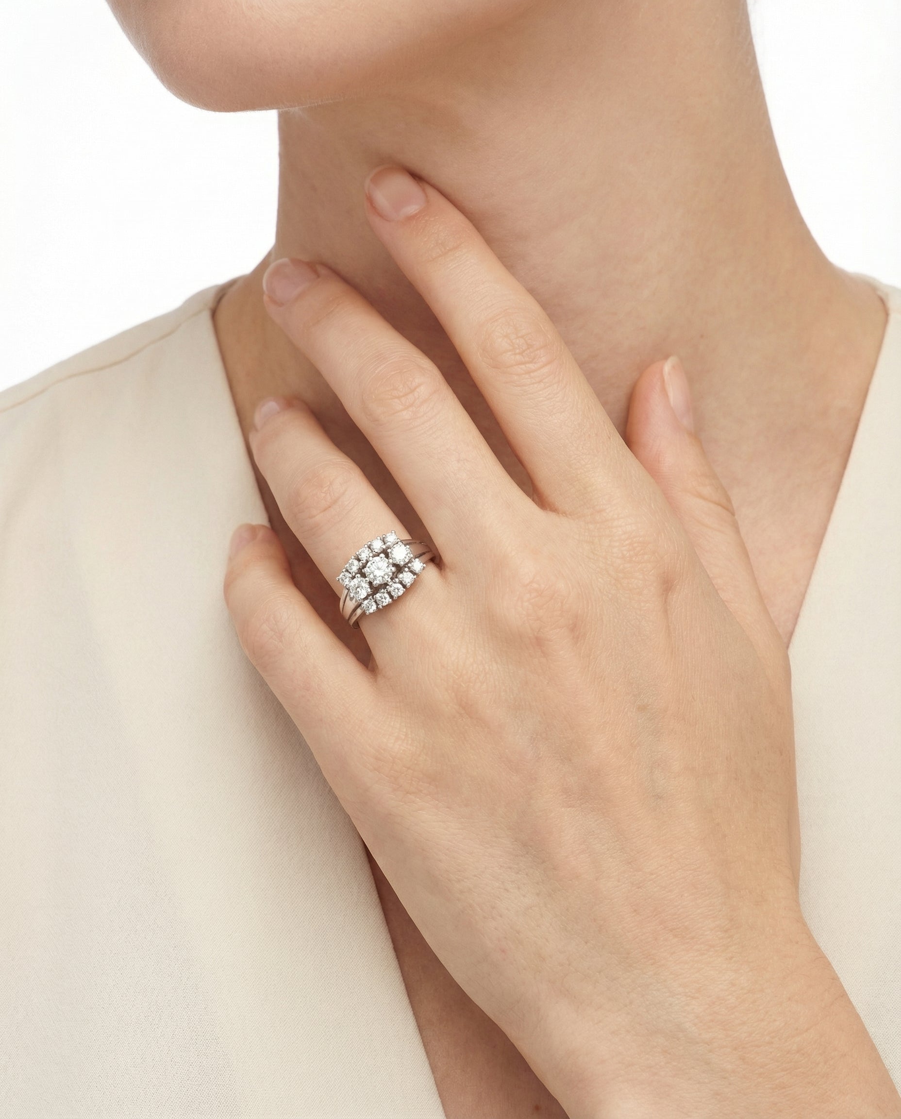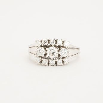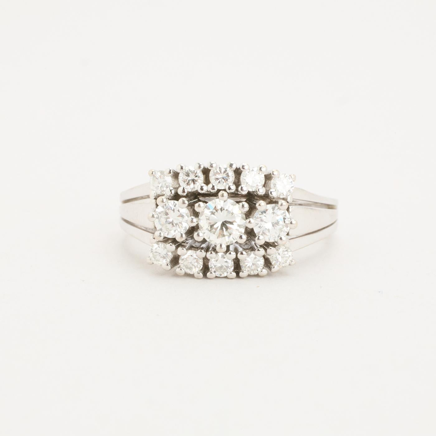 Clusterring med diamant (1.06 ct) i 14K hvidguld str. 56, 7.3 g