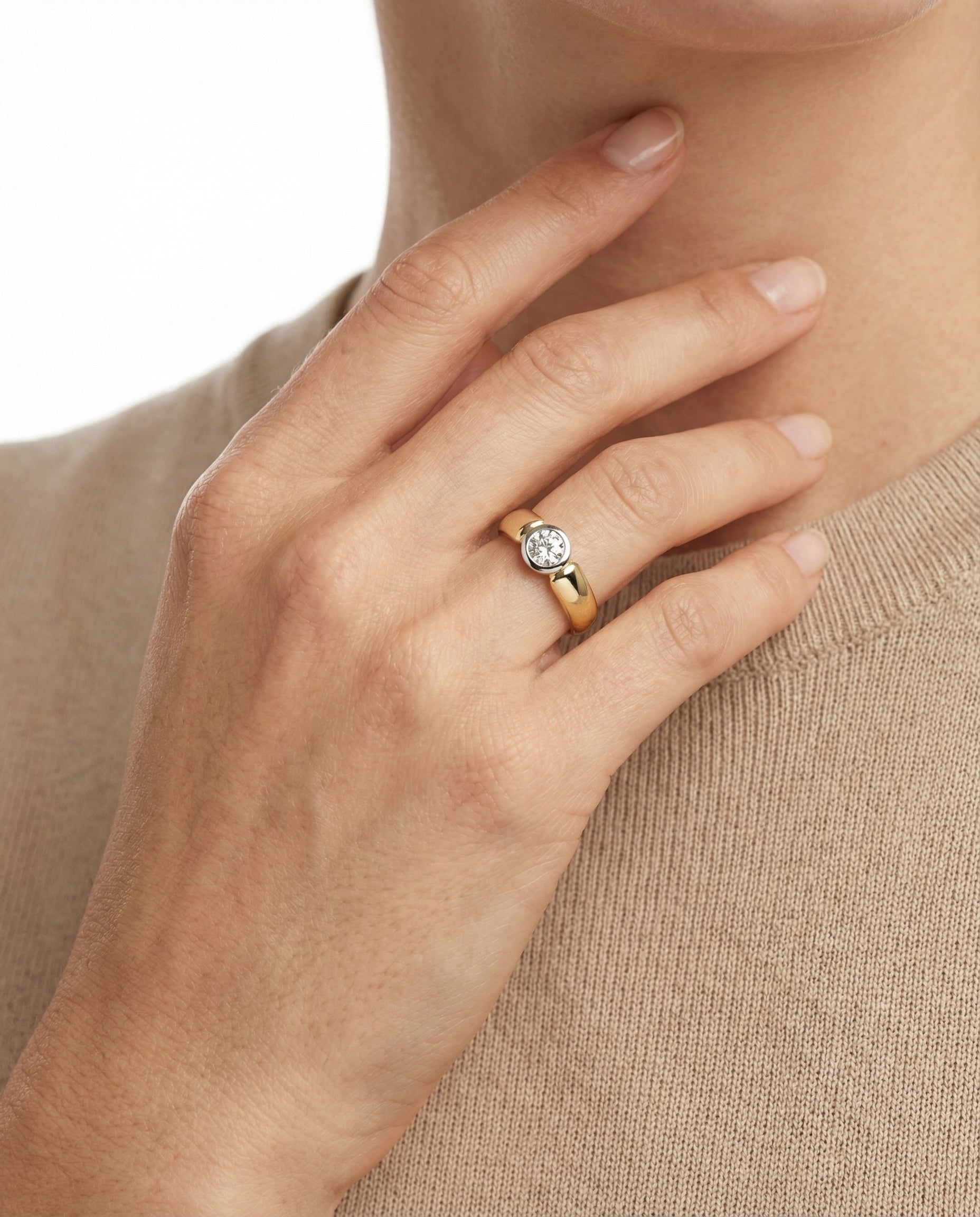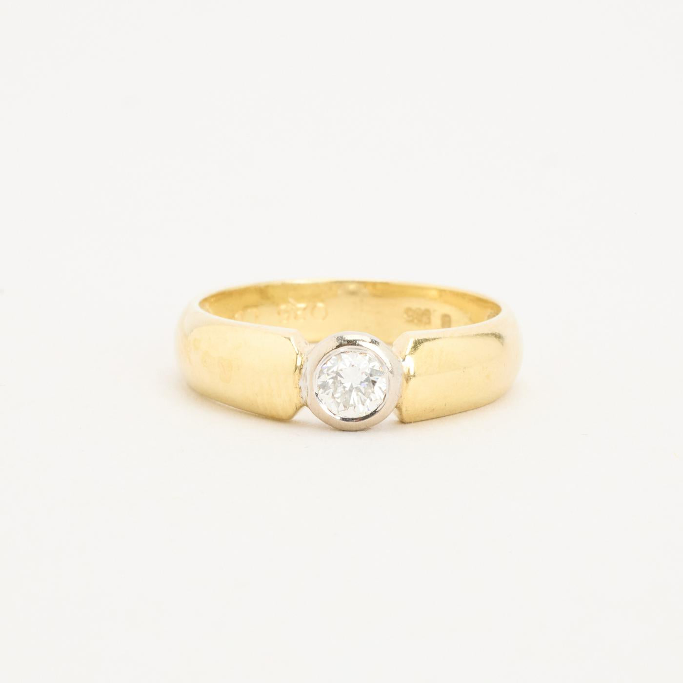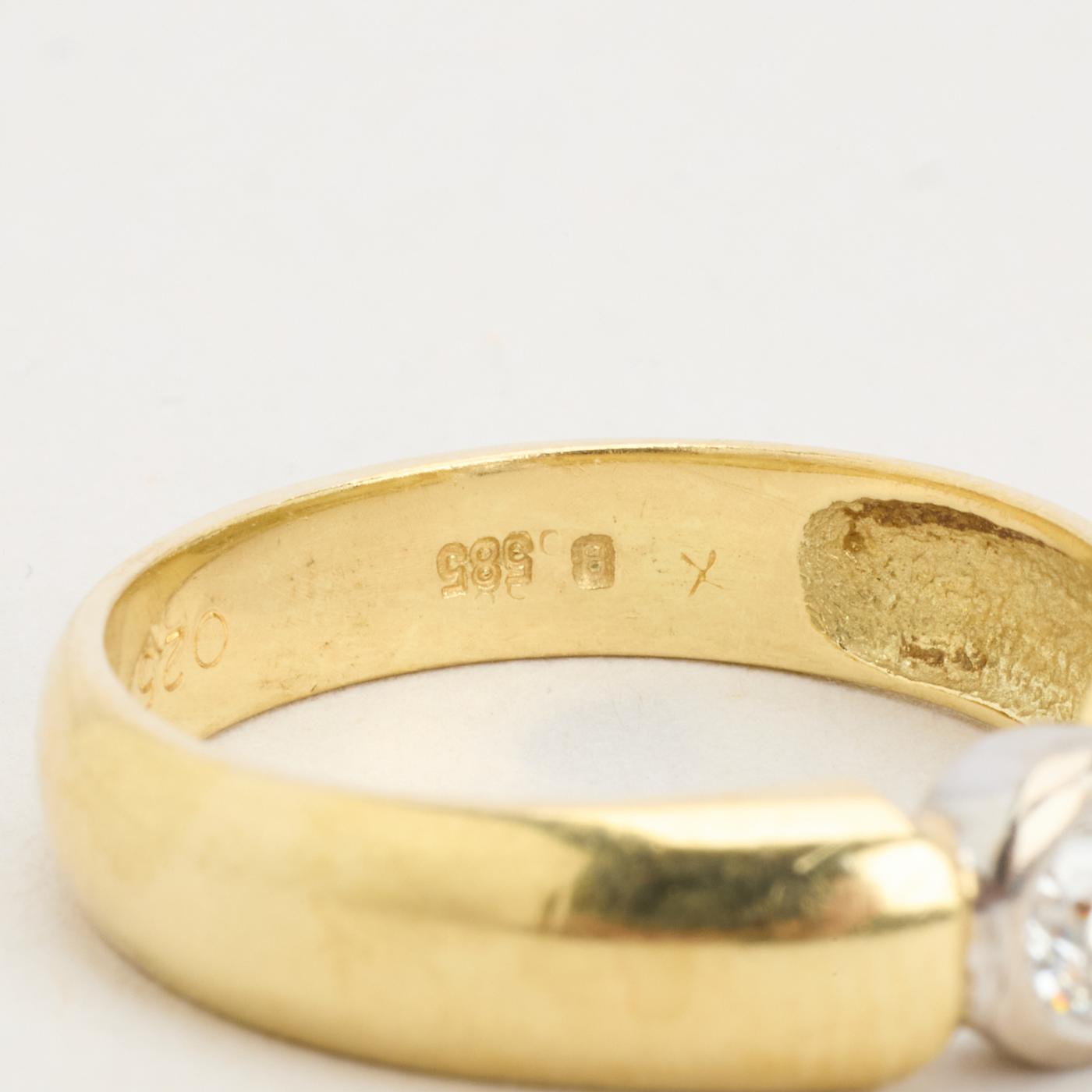 Solitairering med diamant (0.21 ct) i 14K guld og hvidguld str. 55, 3.77 g