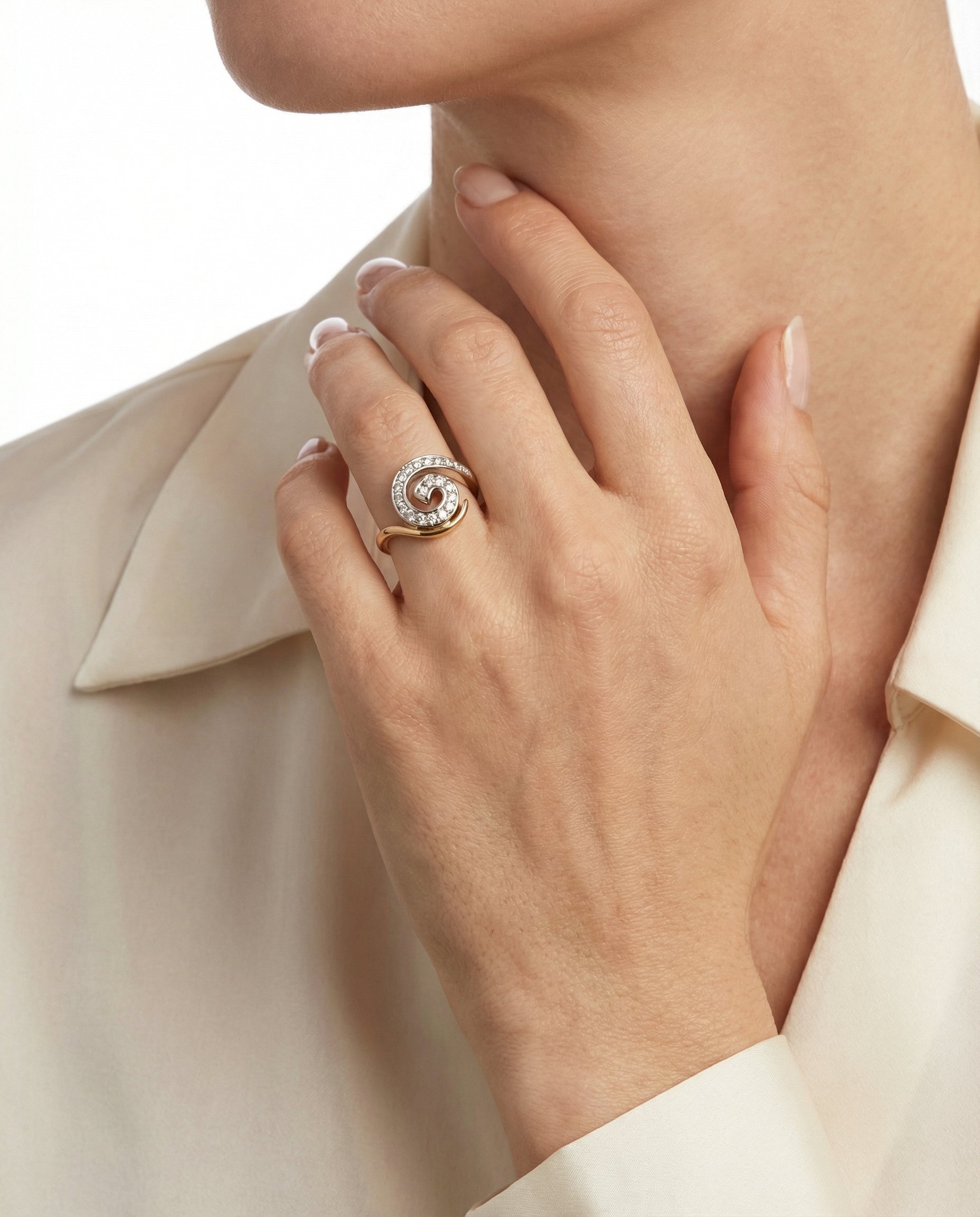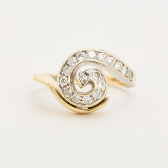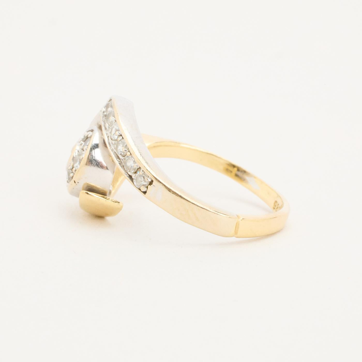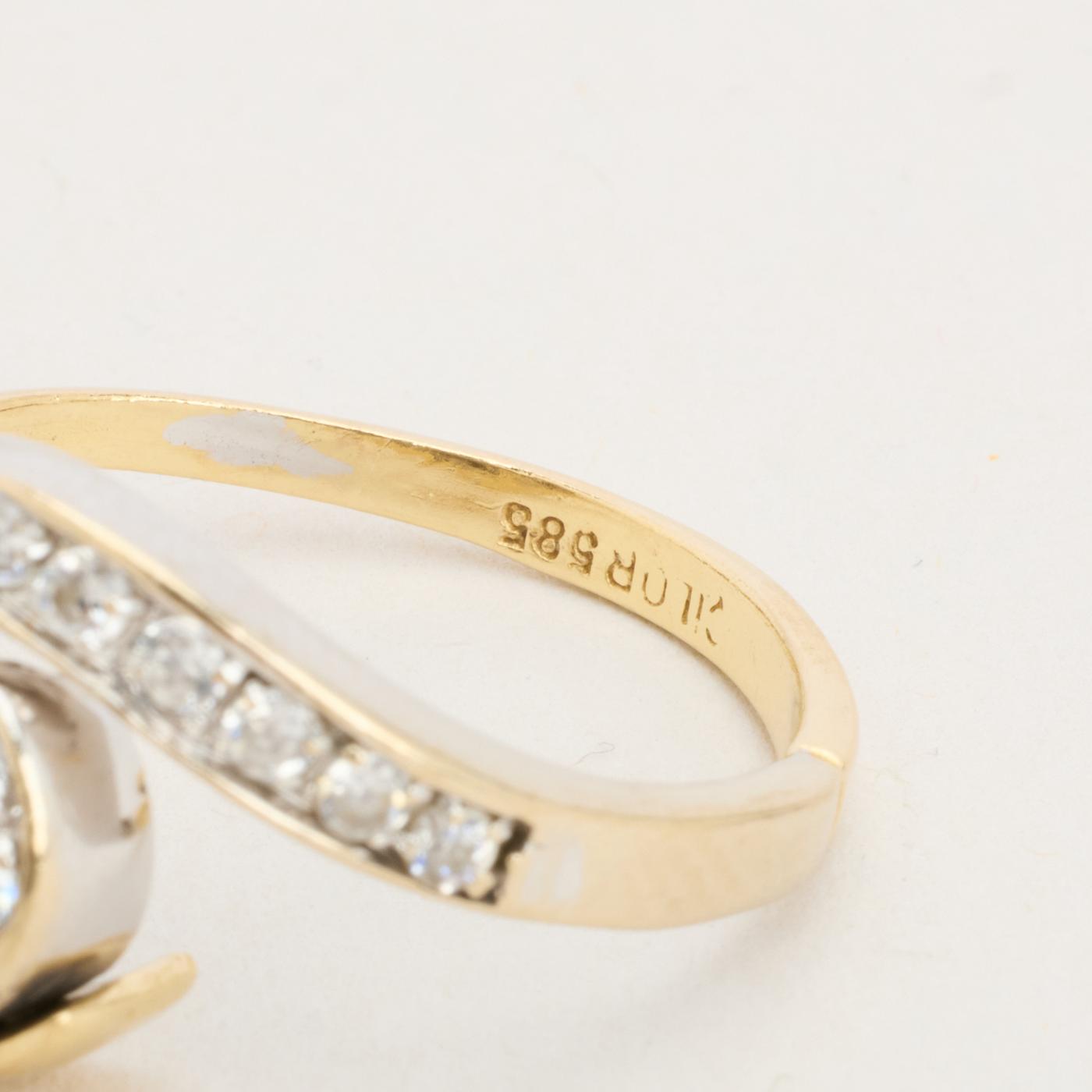 Clusterring i 14K guld og hvidguld med en zirkonia, str. 55, 4.57 g