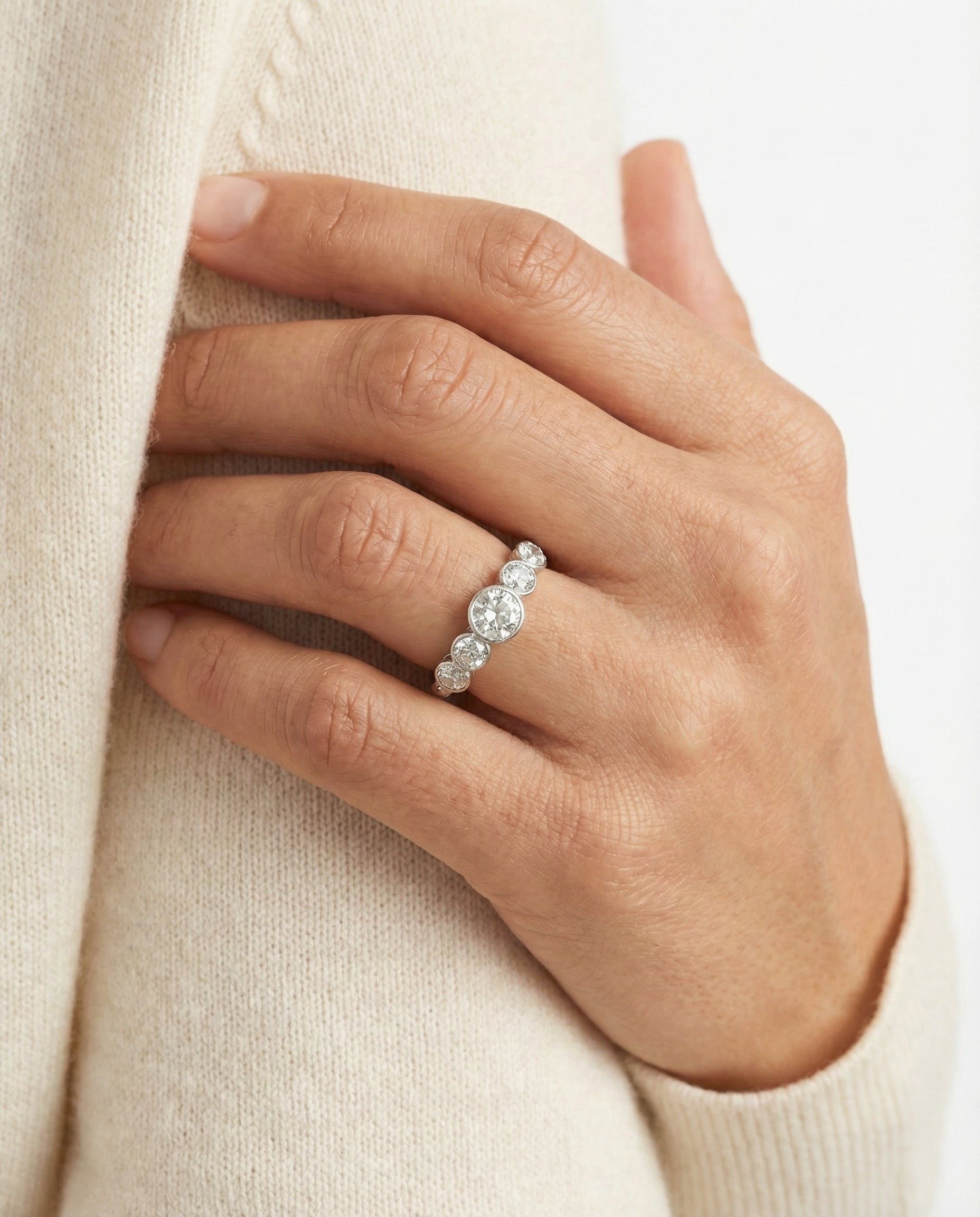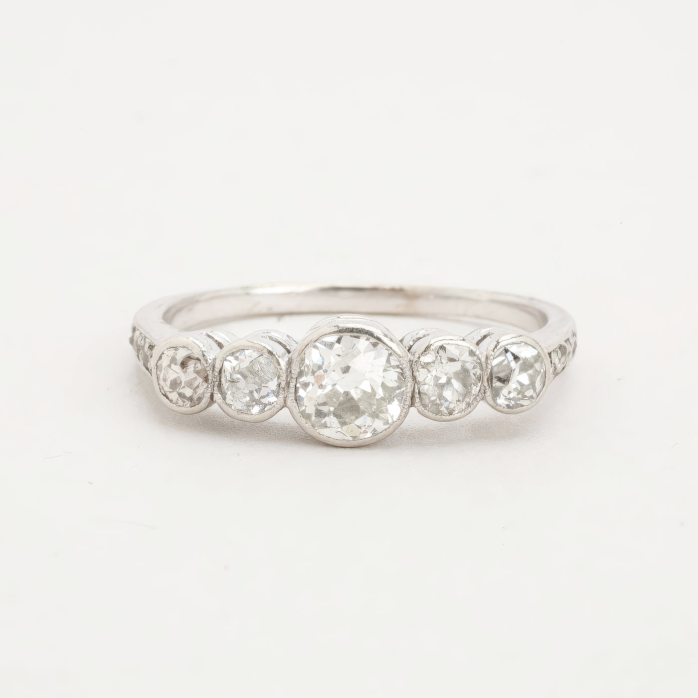 Femstensring i 14K hvidguld med diamanter (0.74 ct), Str. 52, 2.6 g