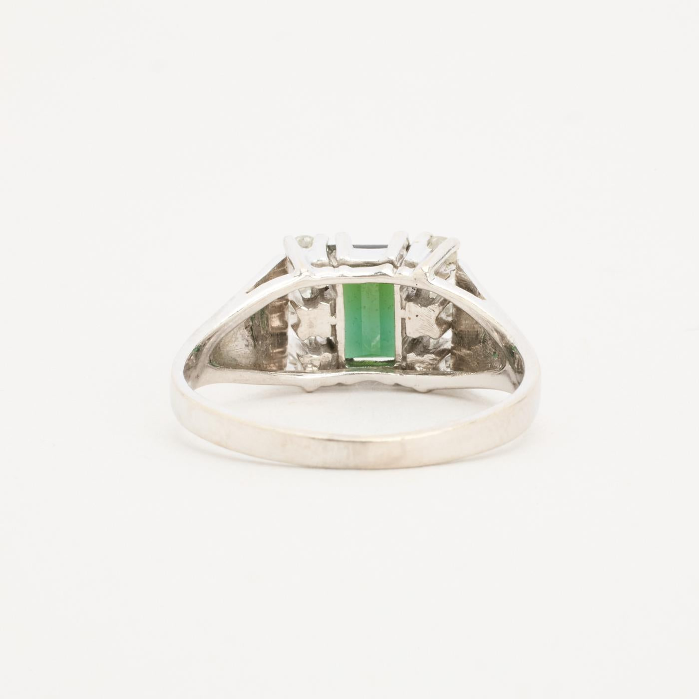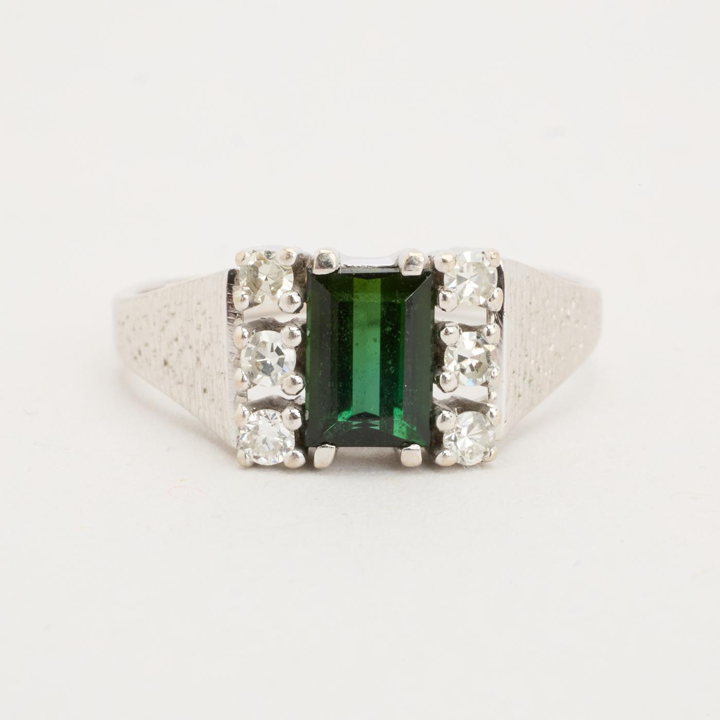 Signetring med diamant (0.06 ct) i 14K hvidguld med blå sten, str. 58, 3.95 g