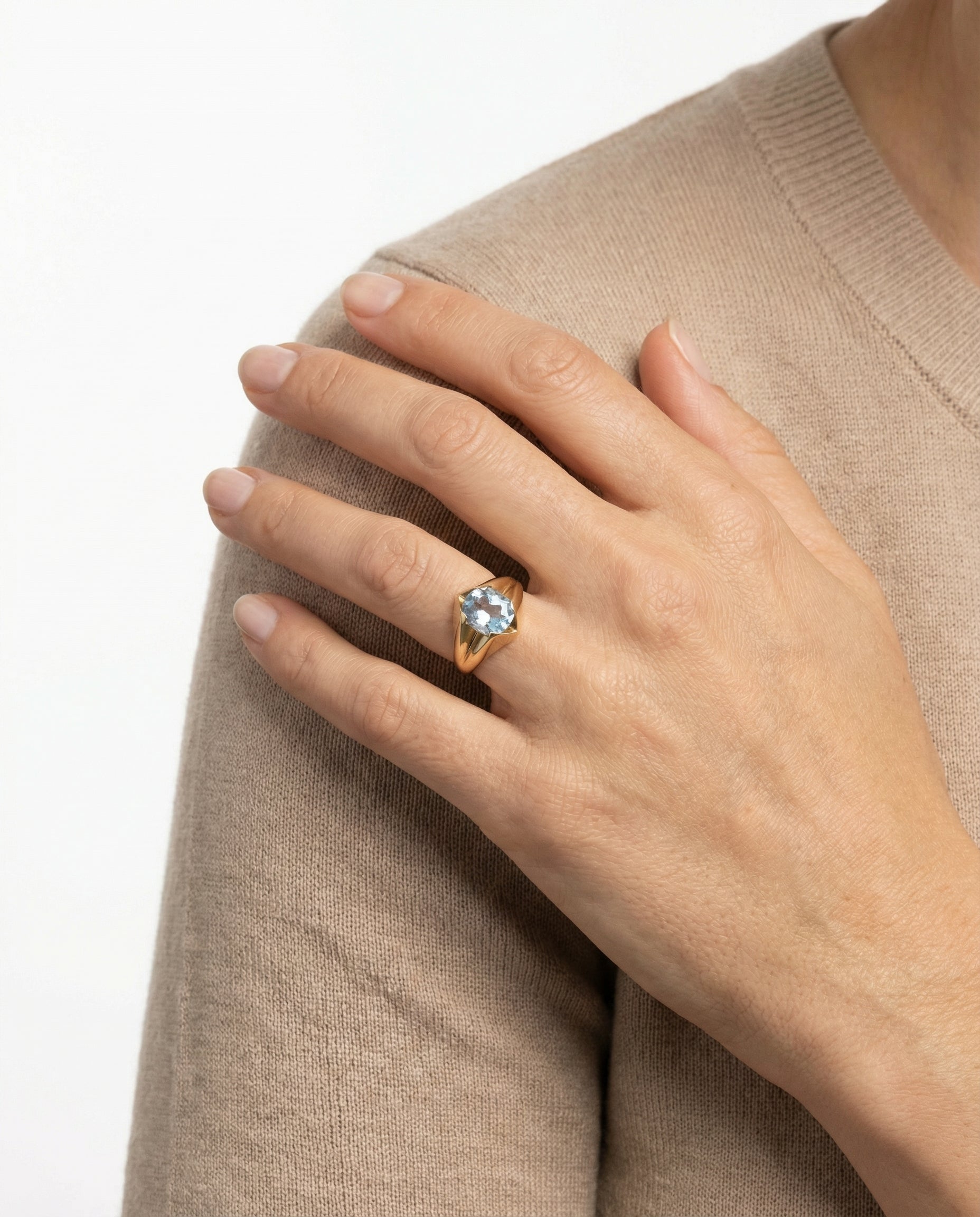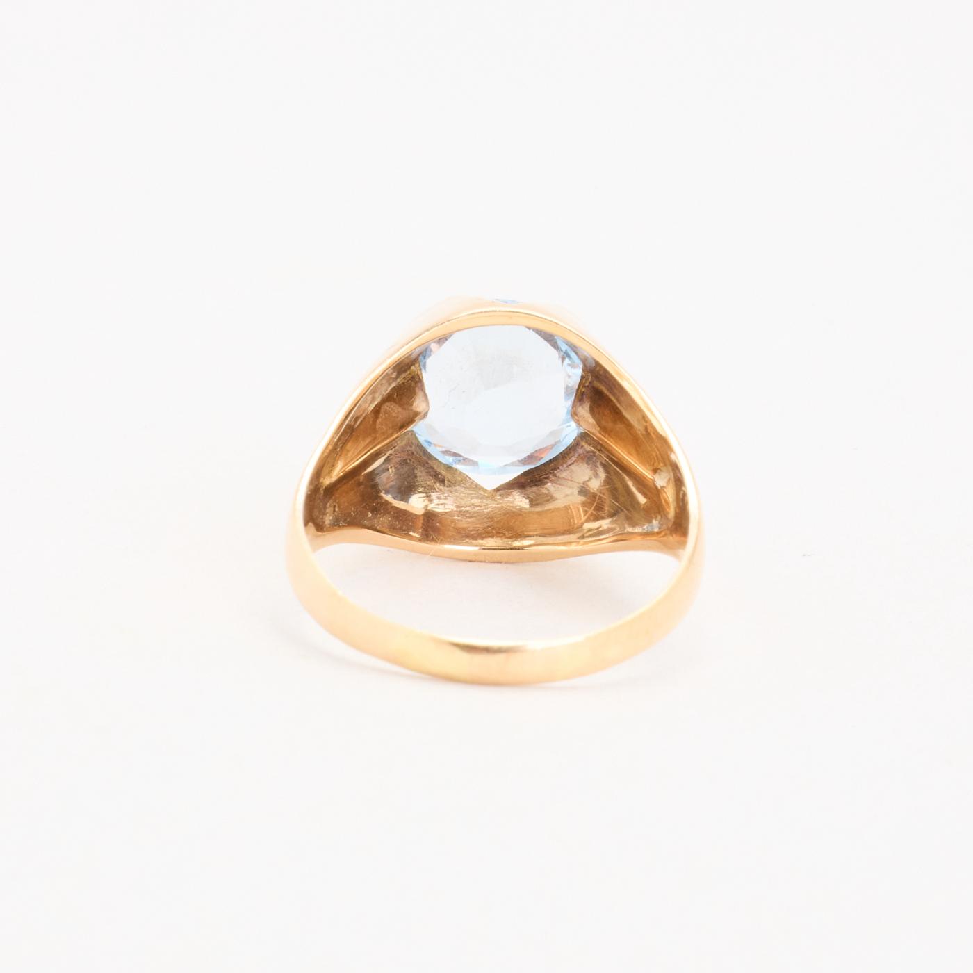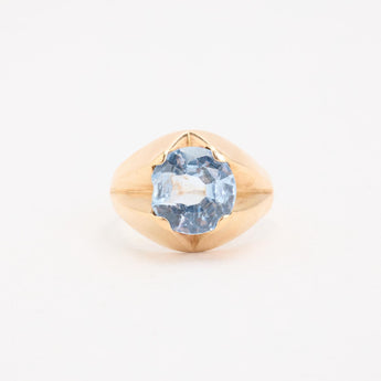 Signetring i 14K guld med en lyseblå sten, Str. 59