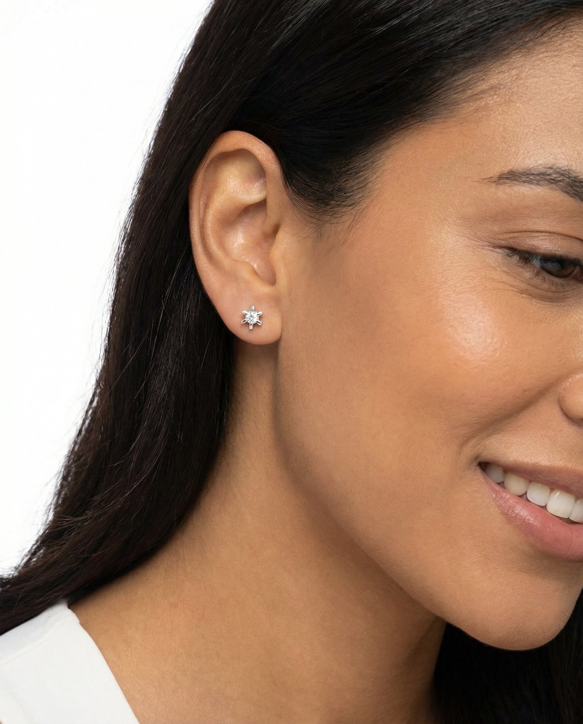 Solitair ørering i 14K hvidguld med diamanter (0.05 ct), 0.4 cm