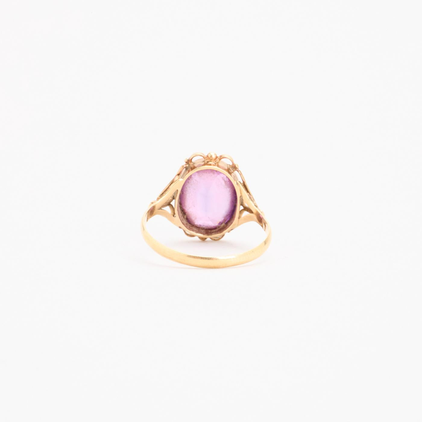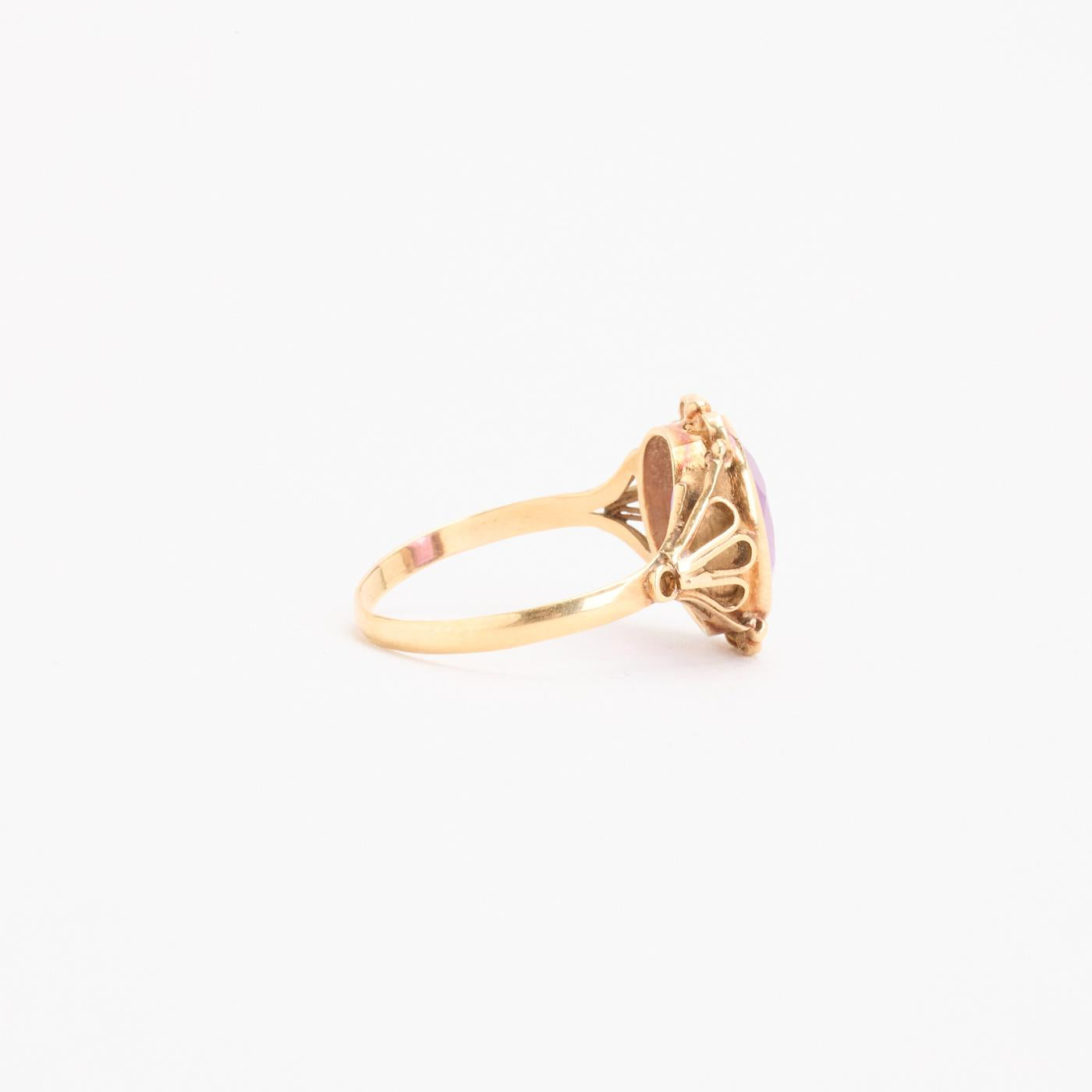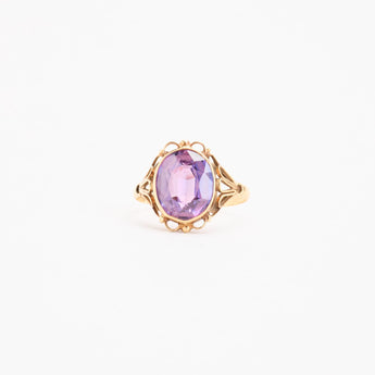 Cocktailring i 14K guld med en syntetisk safir, Str. 61