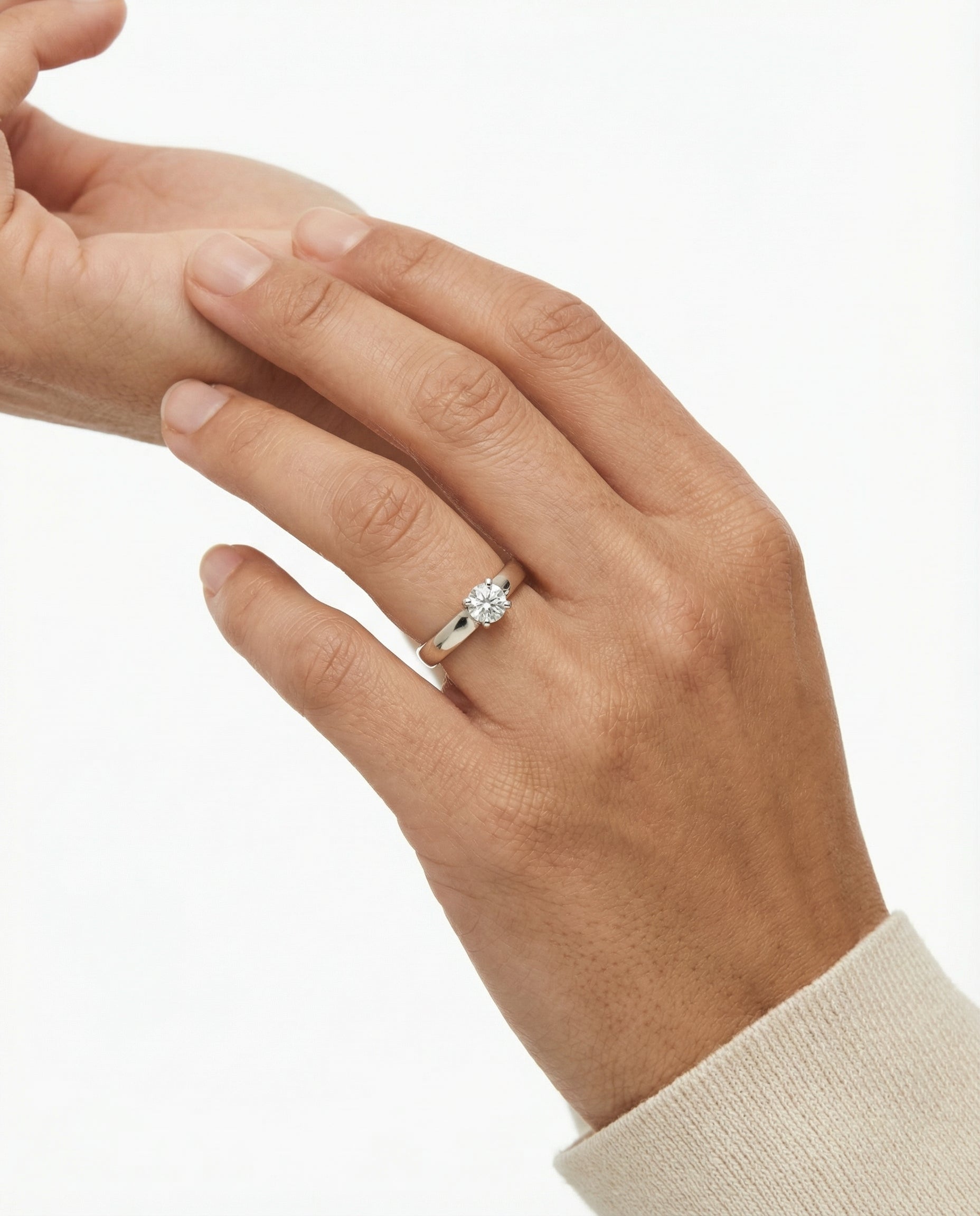 Solitairering i 18K hvidguld med en diamant (0.38 ct), Str. 56