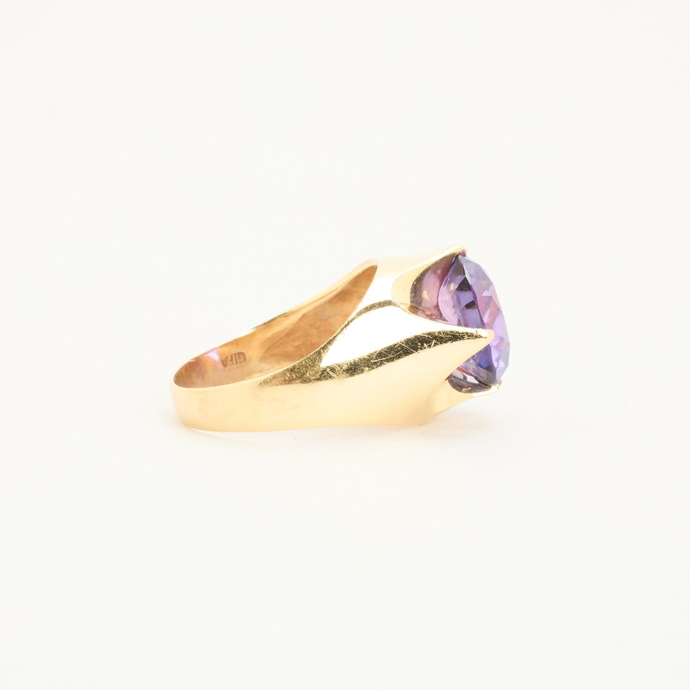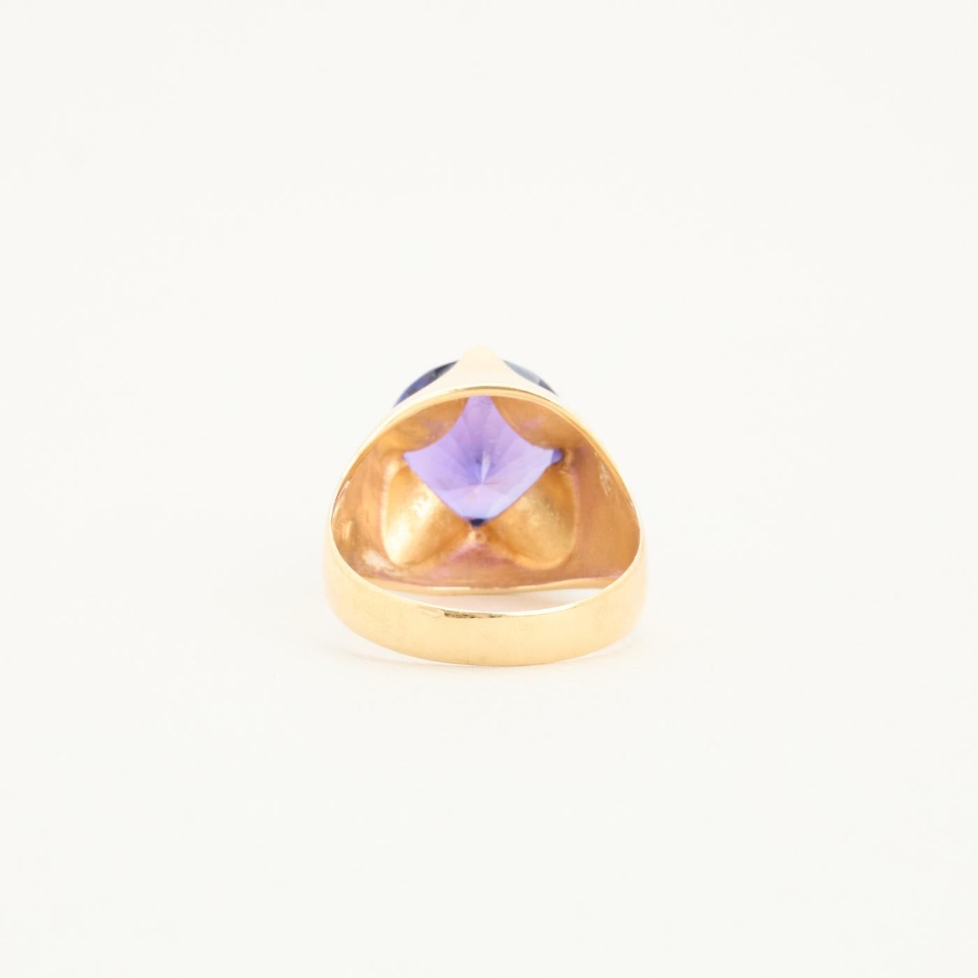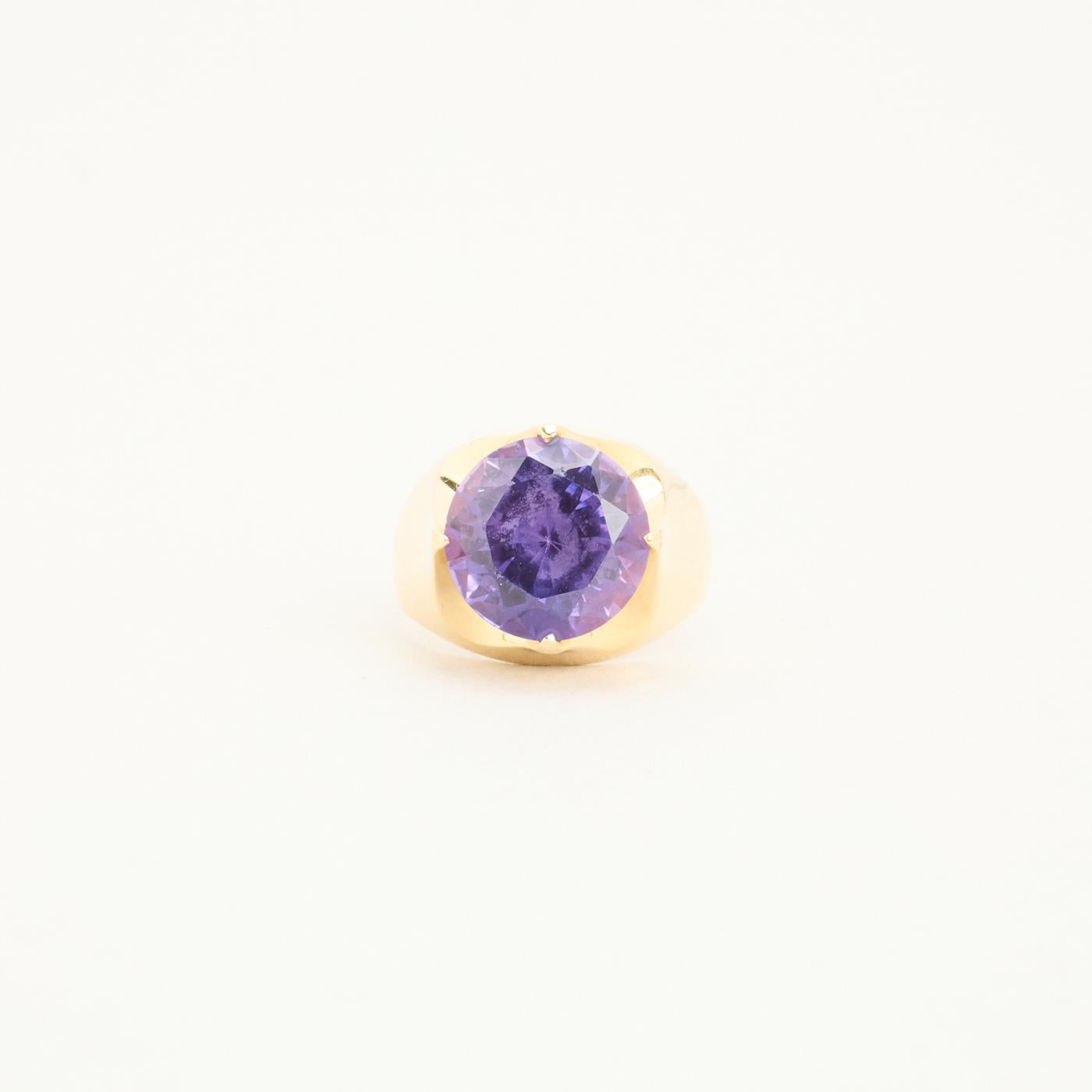 Cocktailring i 14K guld med en lilla sten, Str. 58