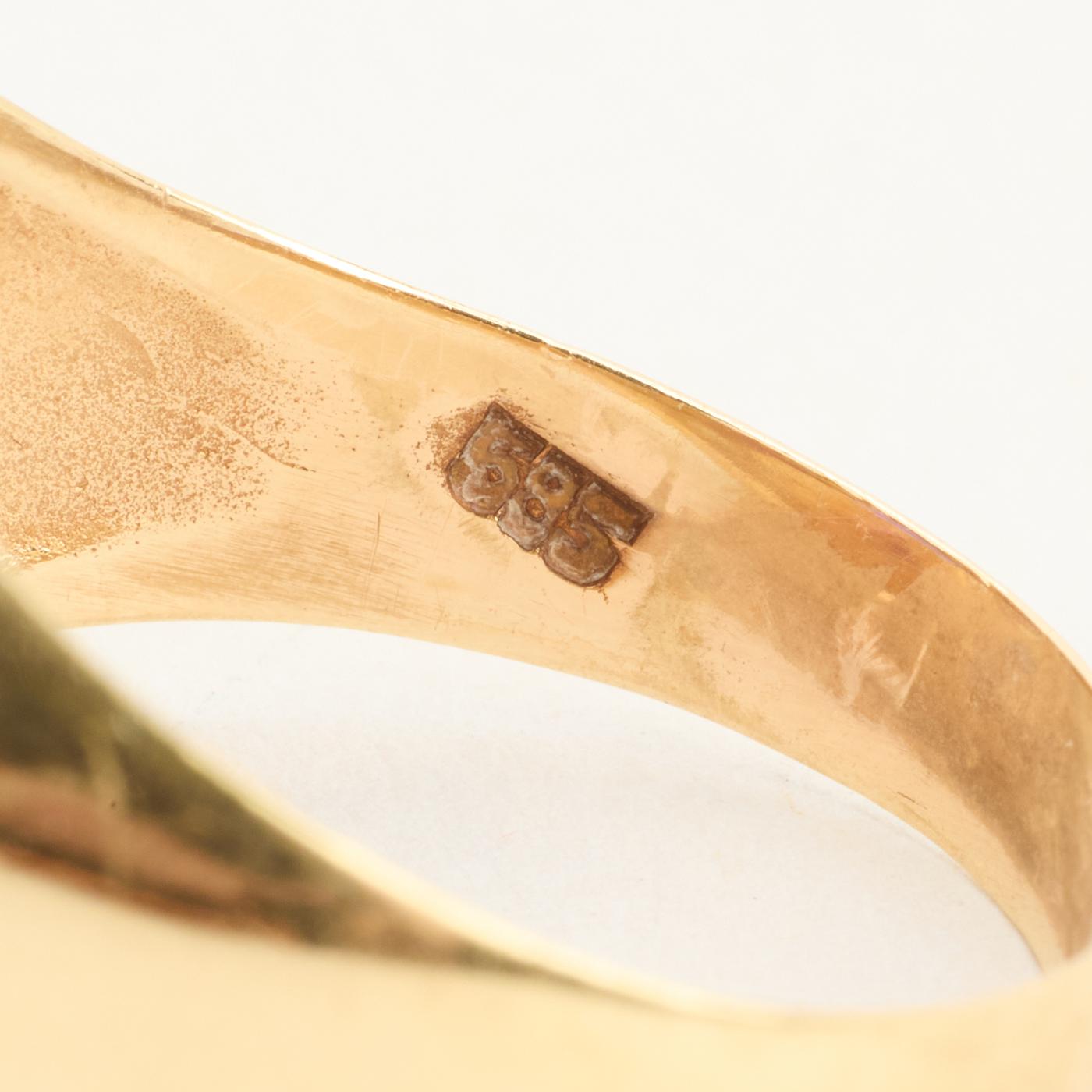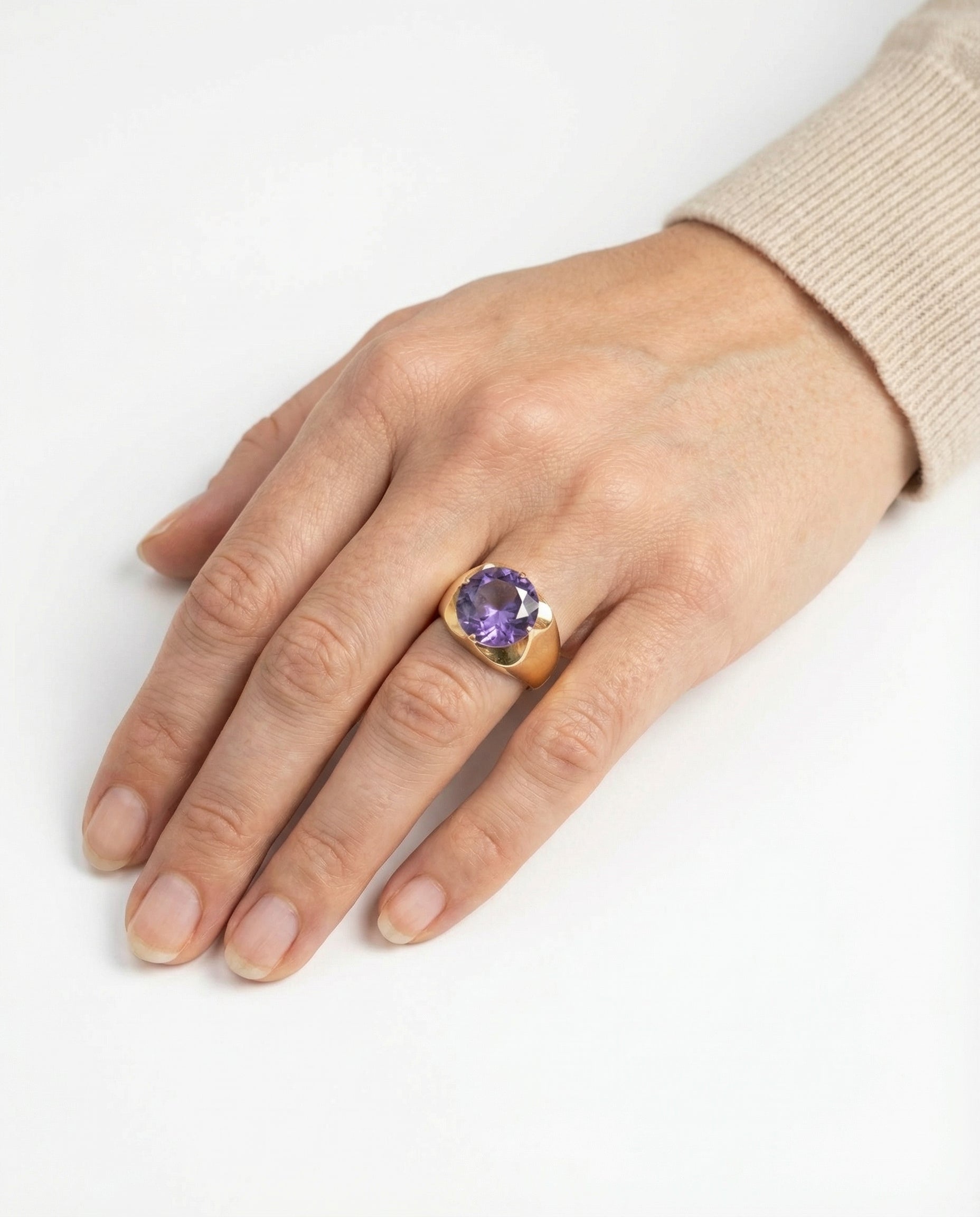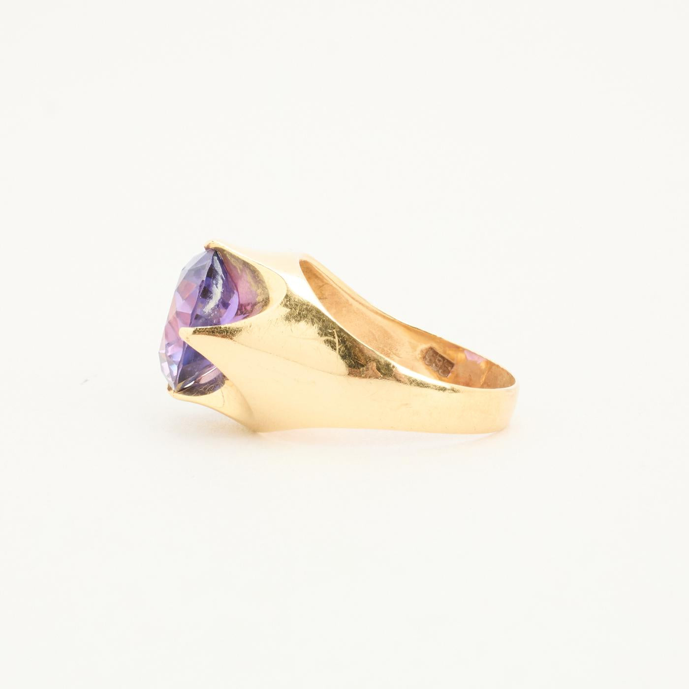 Cocktailring i 14K guld med en lilla sten, Str. 58