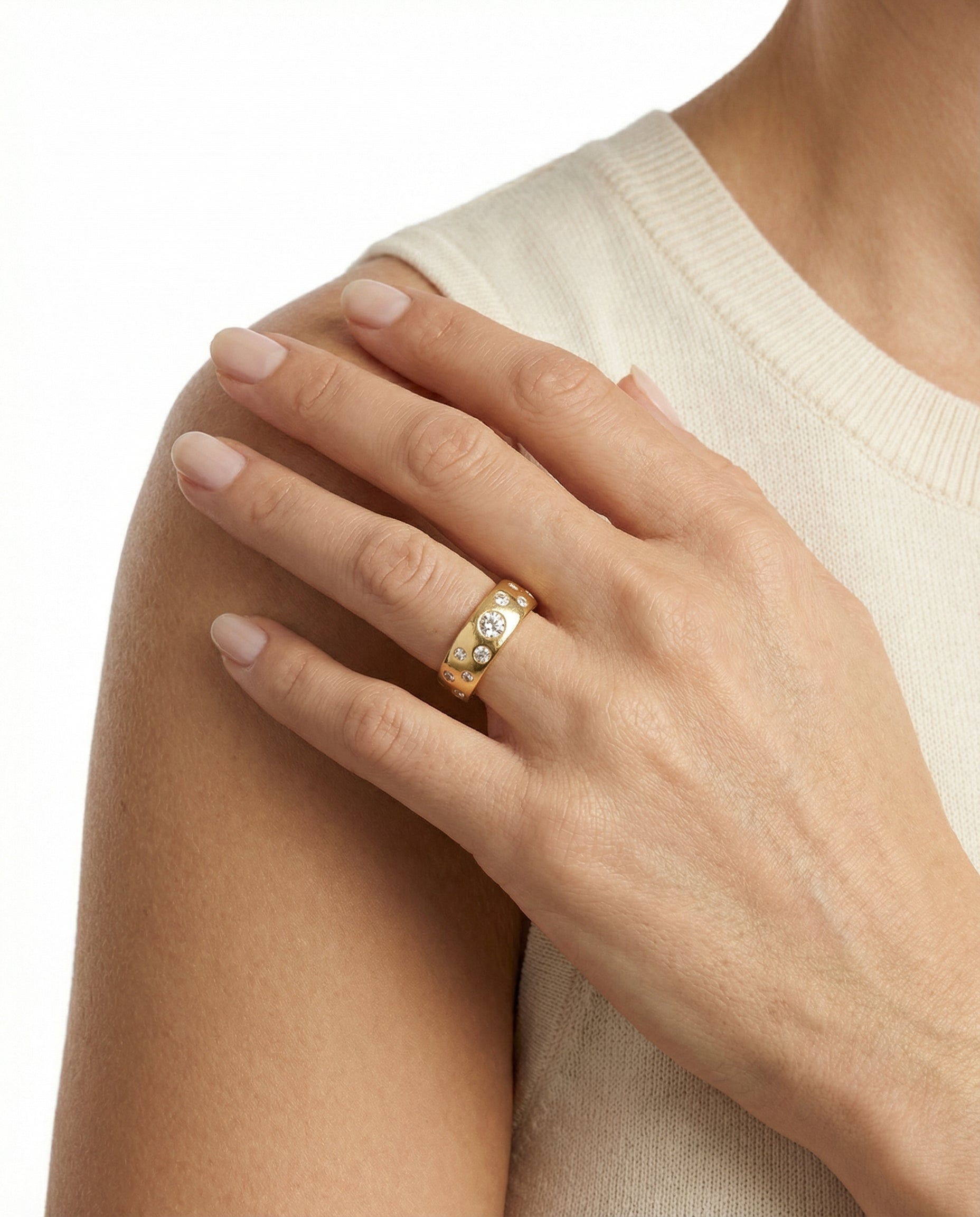 Når du får tilpasset din ring, frasiger du dig fortrydelsesretten, da smykket ændres specifikt til dig. Bemærk: Tilpassede smykker har længere leveringstid og kan tage op til en måned.