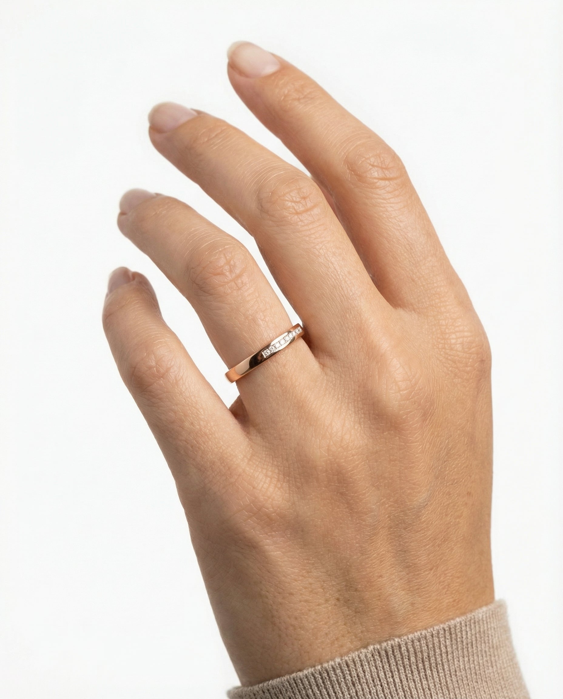 Alliancering i 18K roséguld med diamanter (0.18 ct), Str. 53, 3.38 g