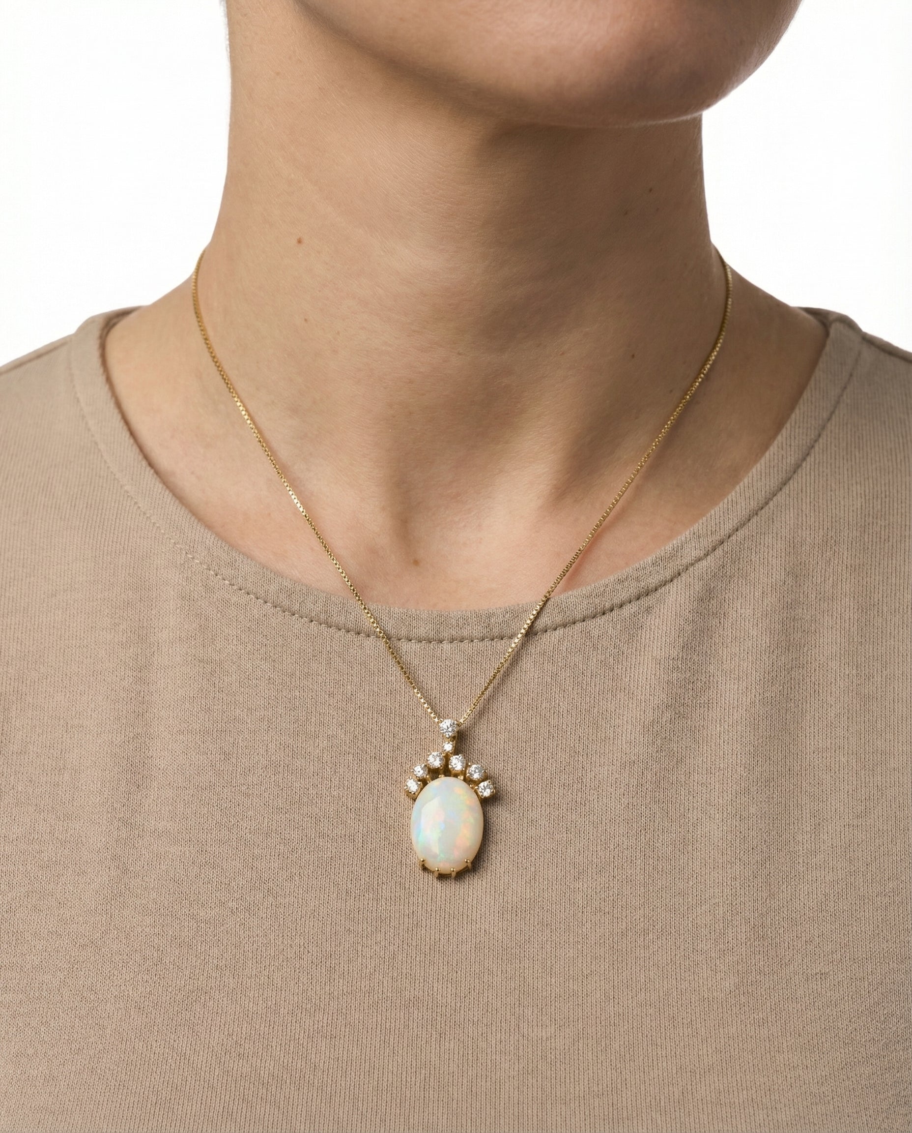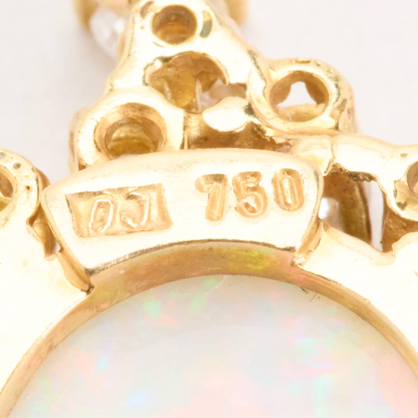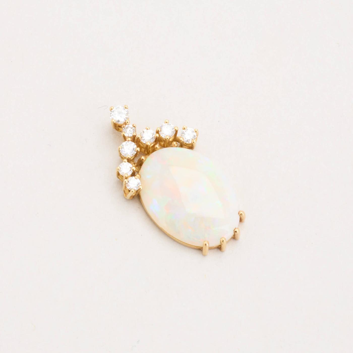 Vedhæng i 18K guld med en diamant (0.52 ct) og en opal, 2.7 cm, 3.3 g