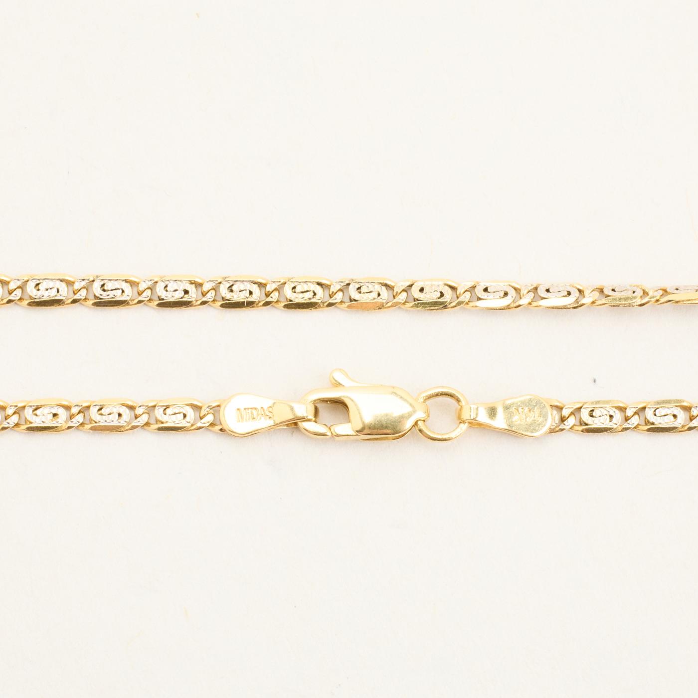 Halskæde i 14K guld og hvidguld, 45 cm, 5.7 g