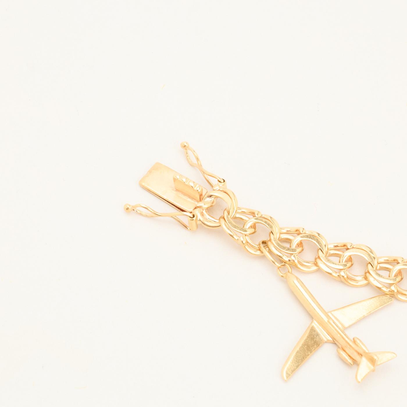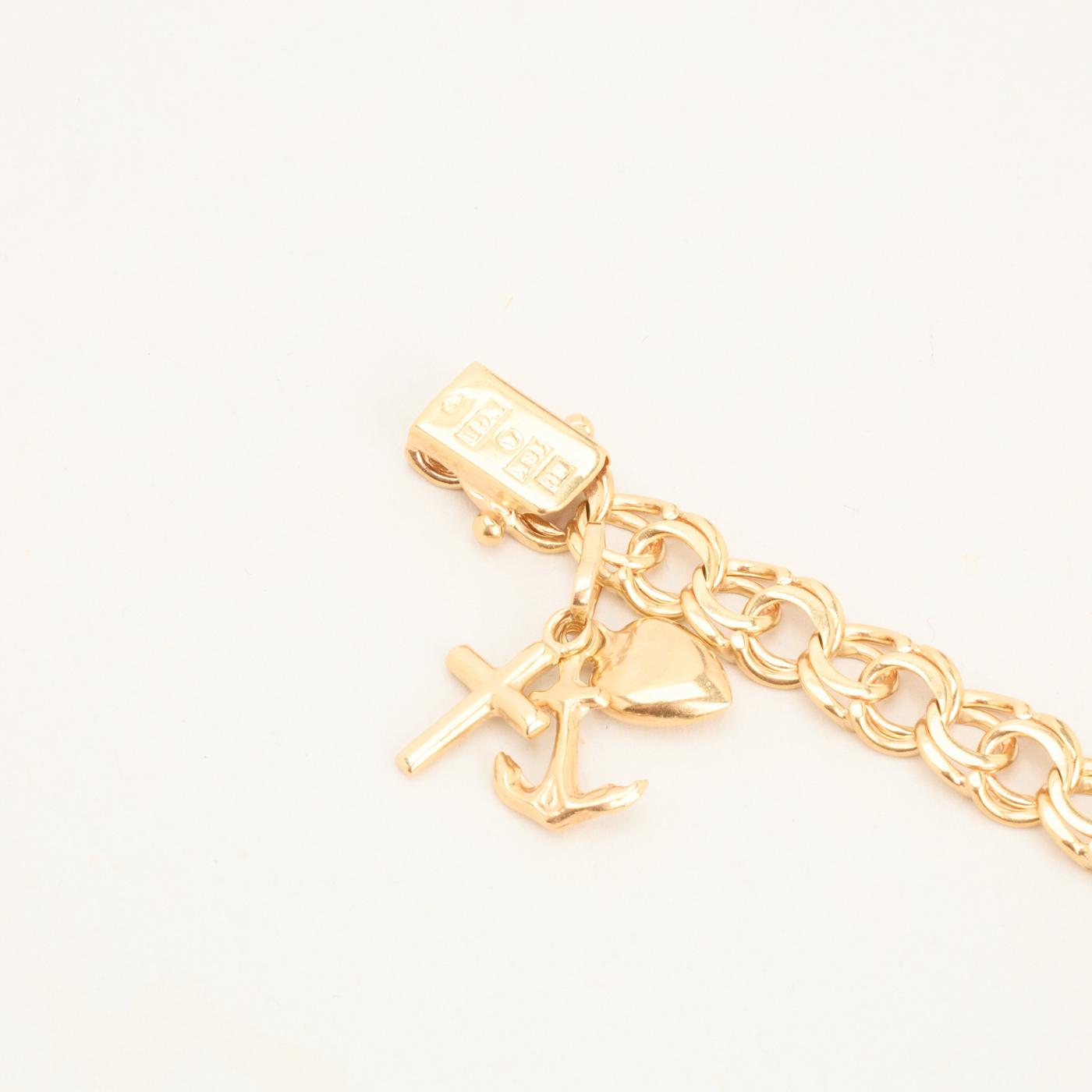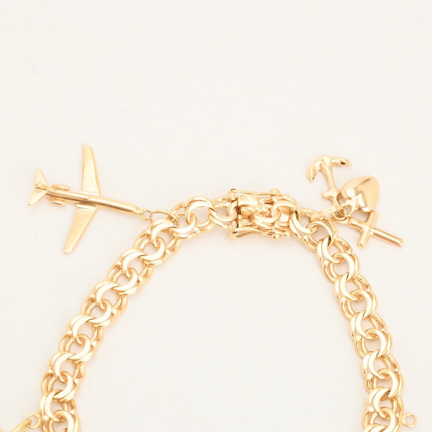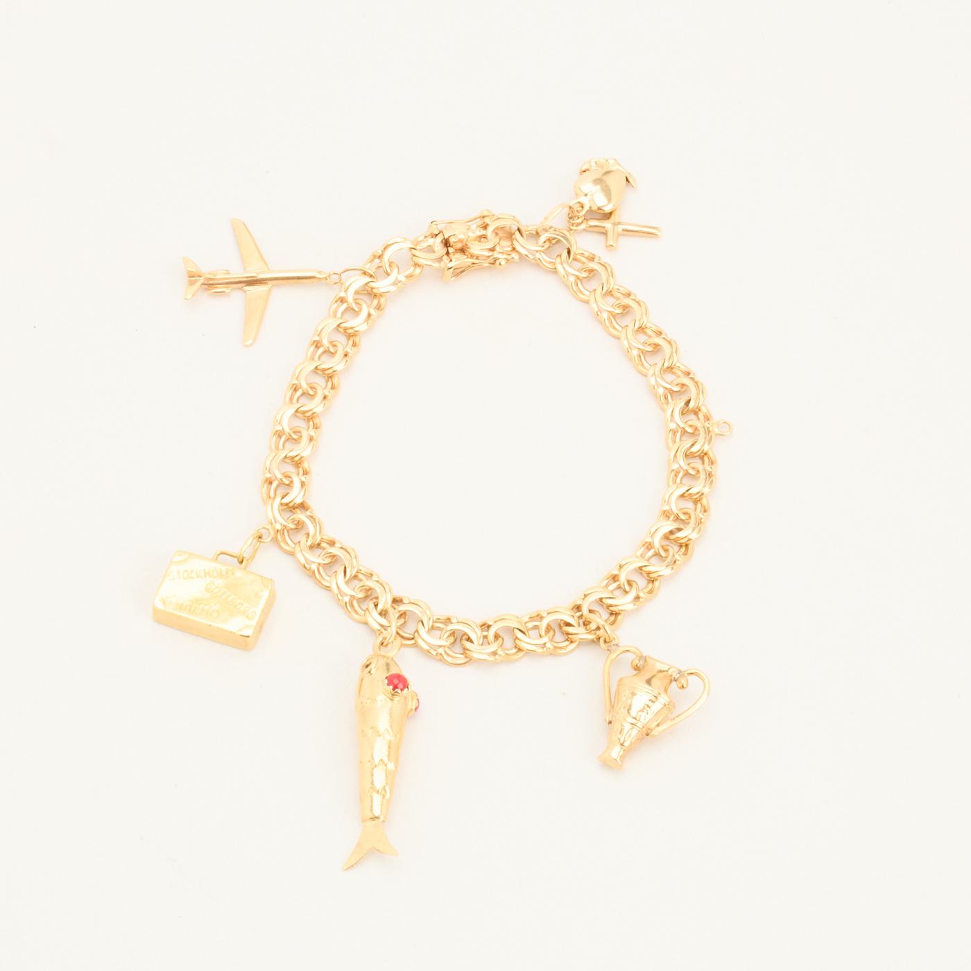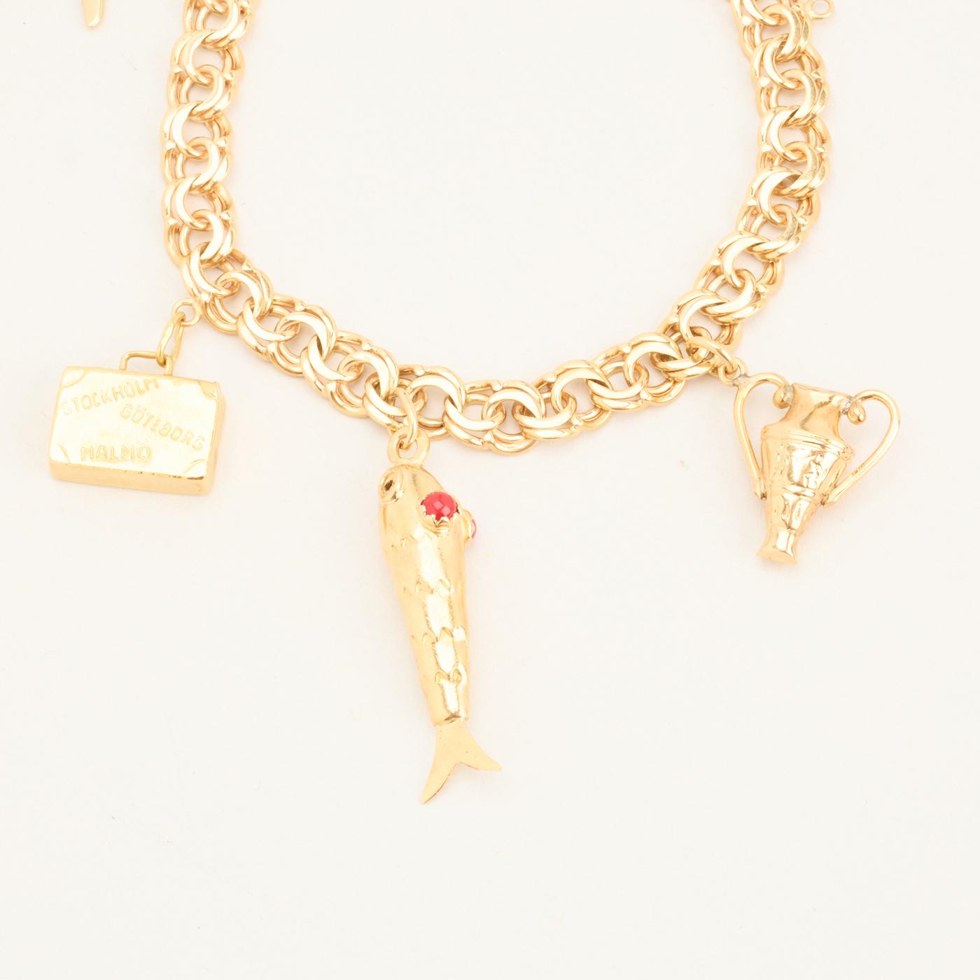 Bismarck charm-armbånd i 18K guld med røde sten, 19.5 cm, 25 g
