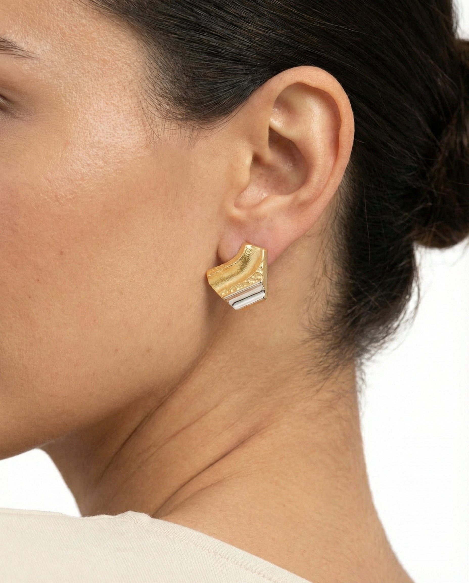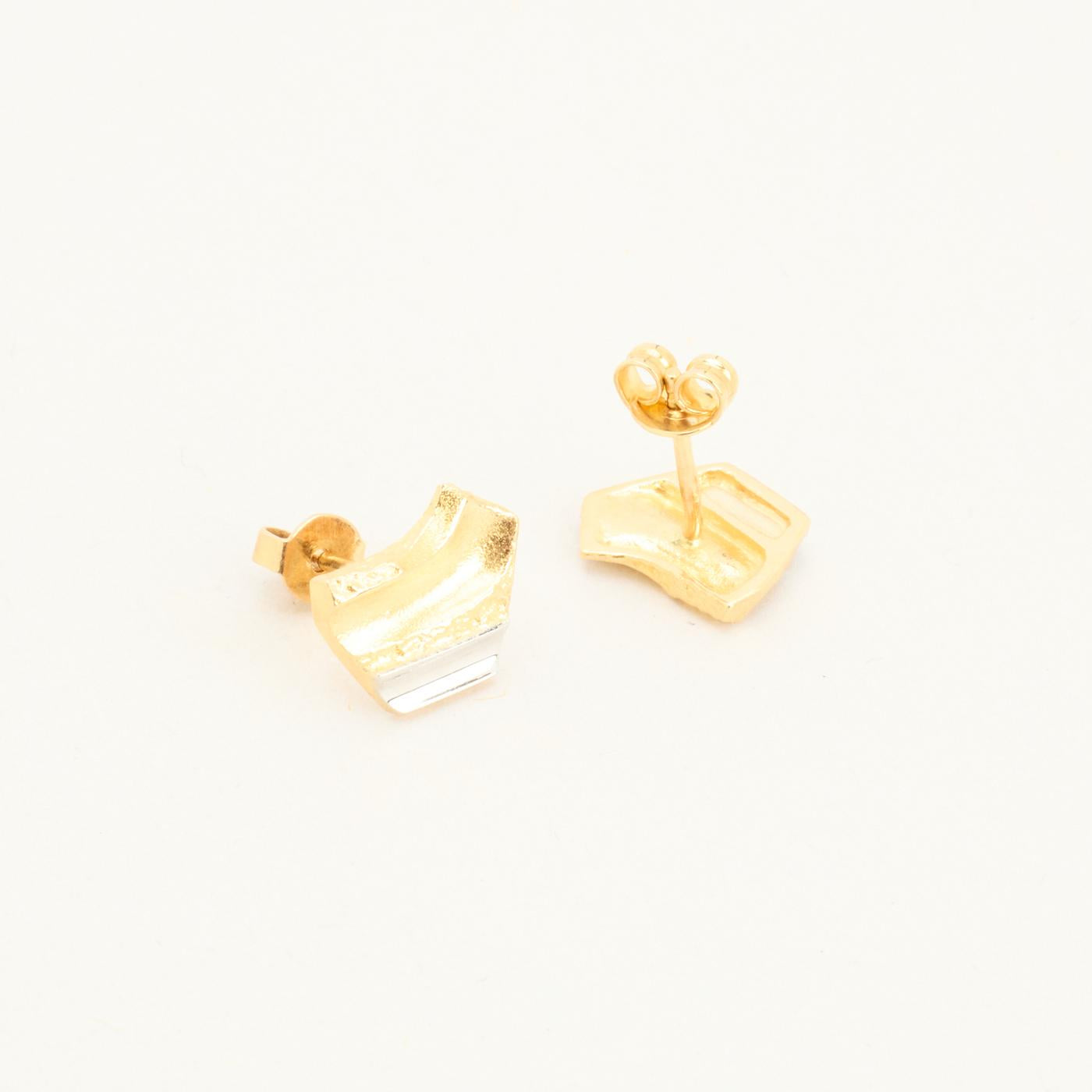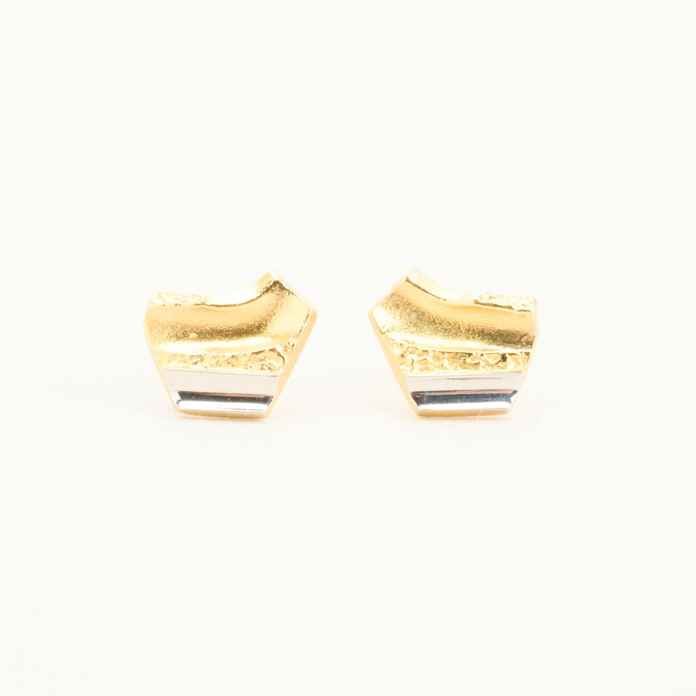 Øreringe med stik i 18K guld og hvidguld, 1.1 cm,