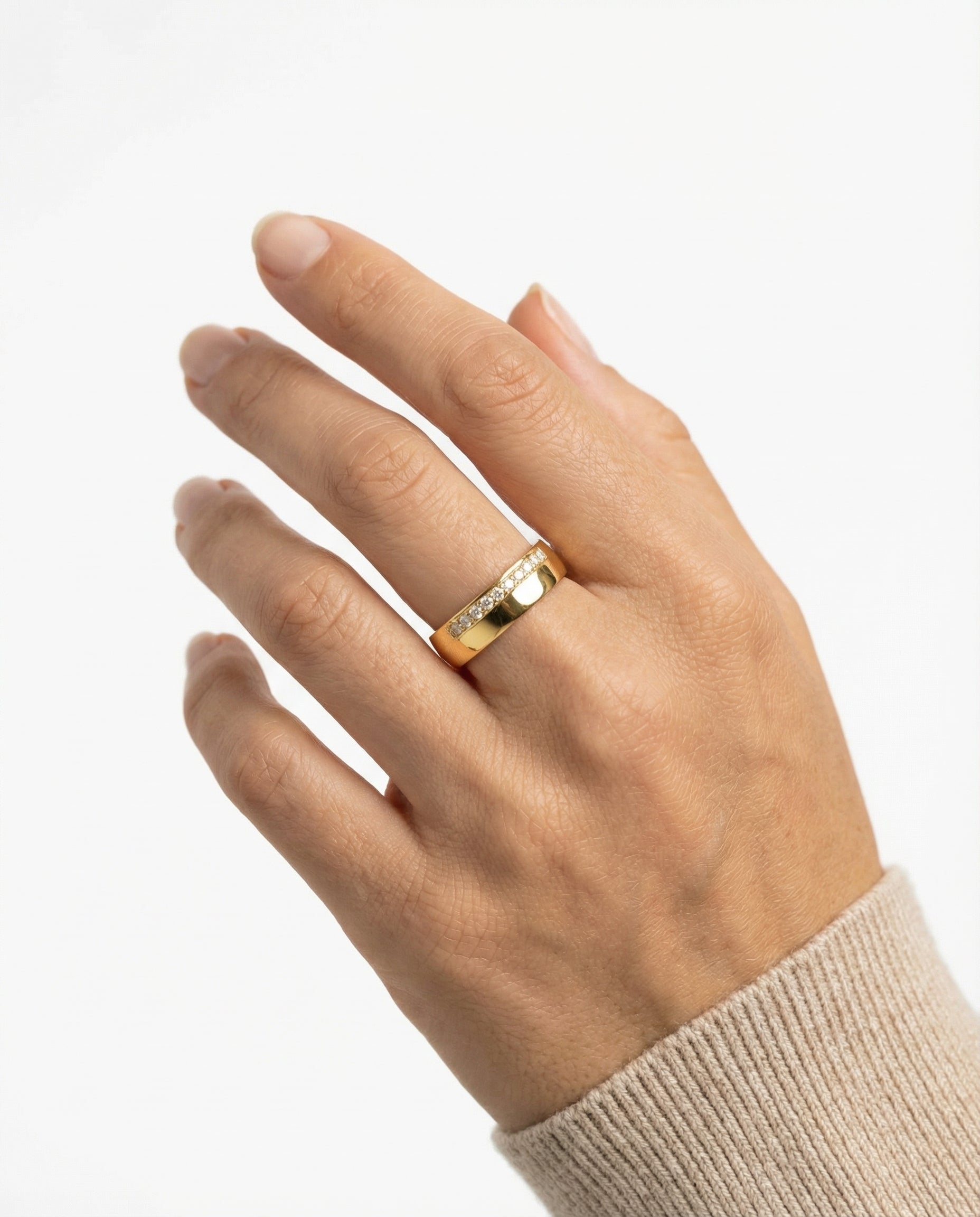 Bånd i 18K guld med diamanter (0.11 ct), Str. 52