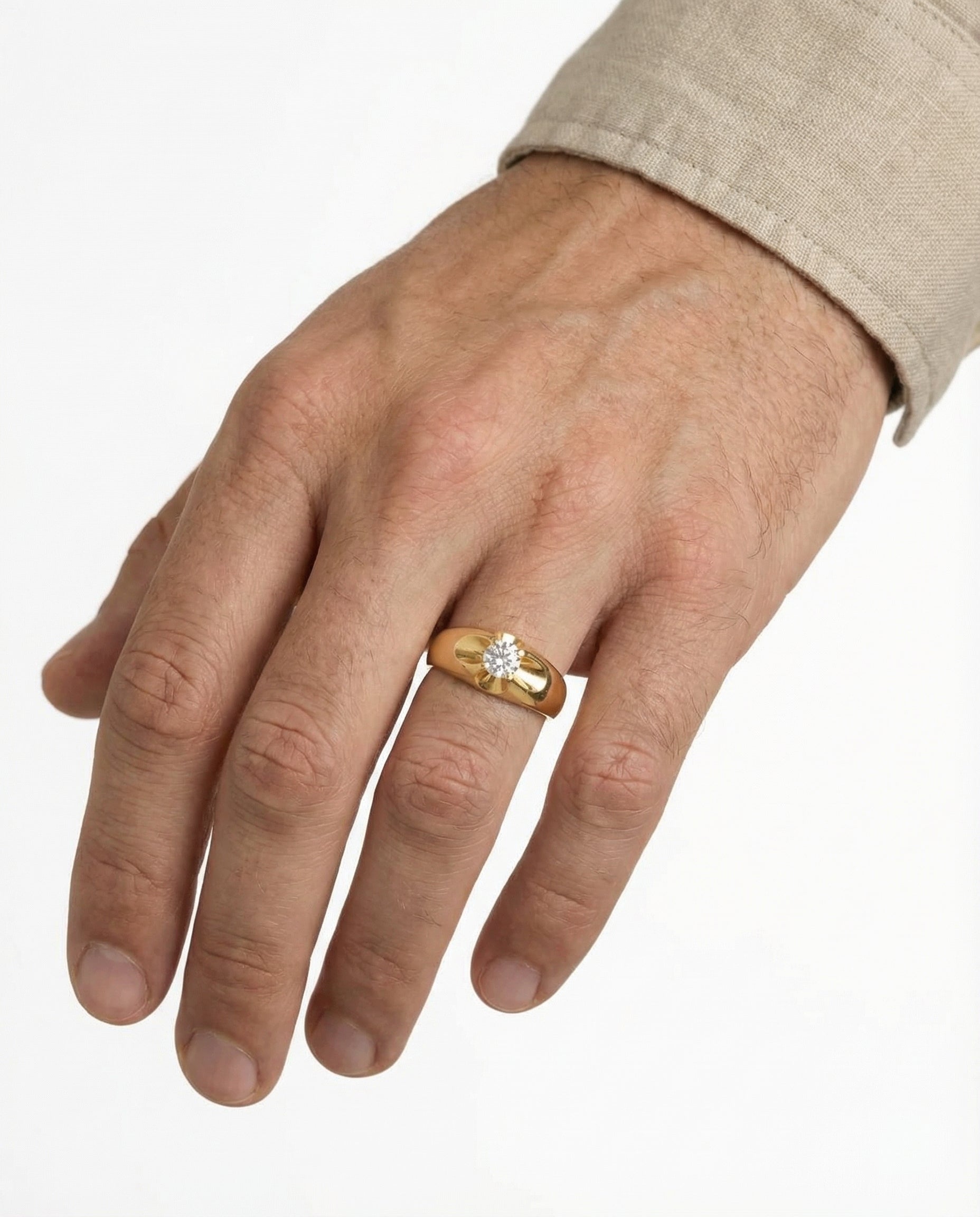 Gypsyring i 18K guld med en zirkonia, str. 65